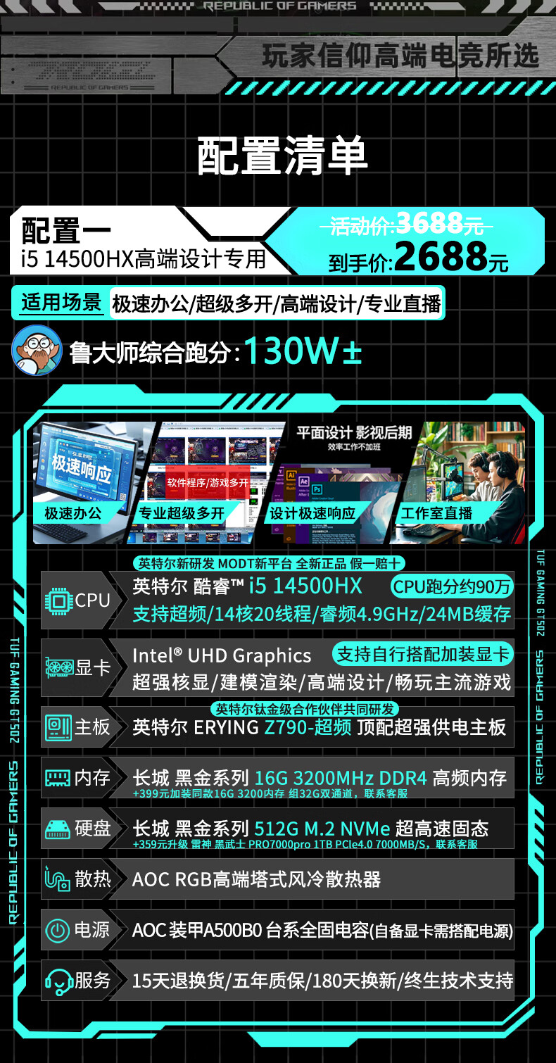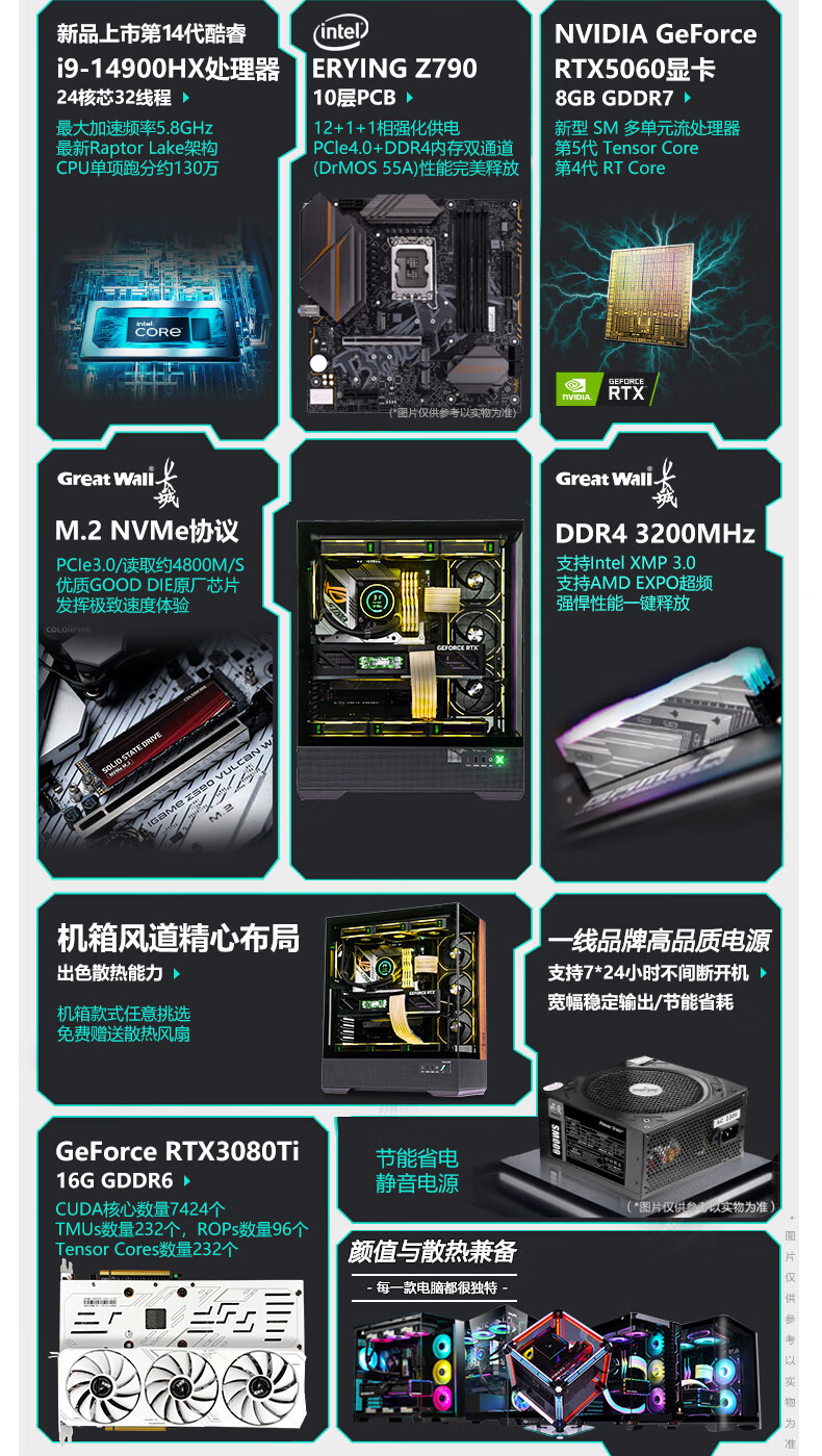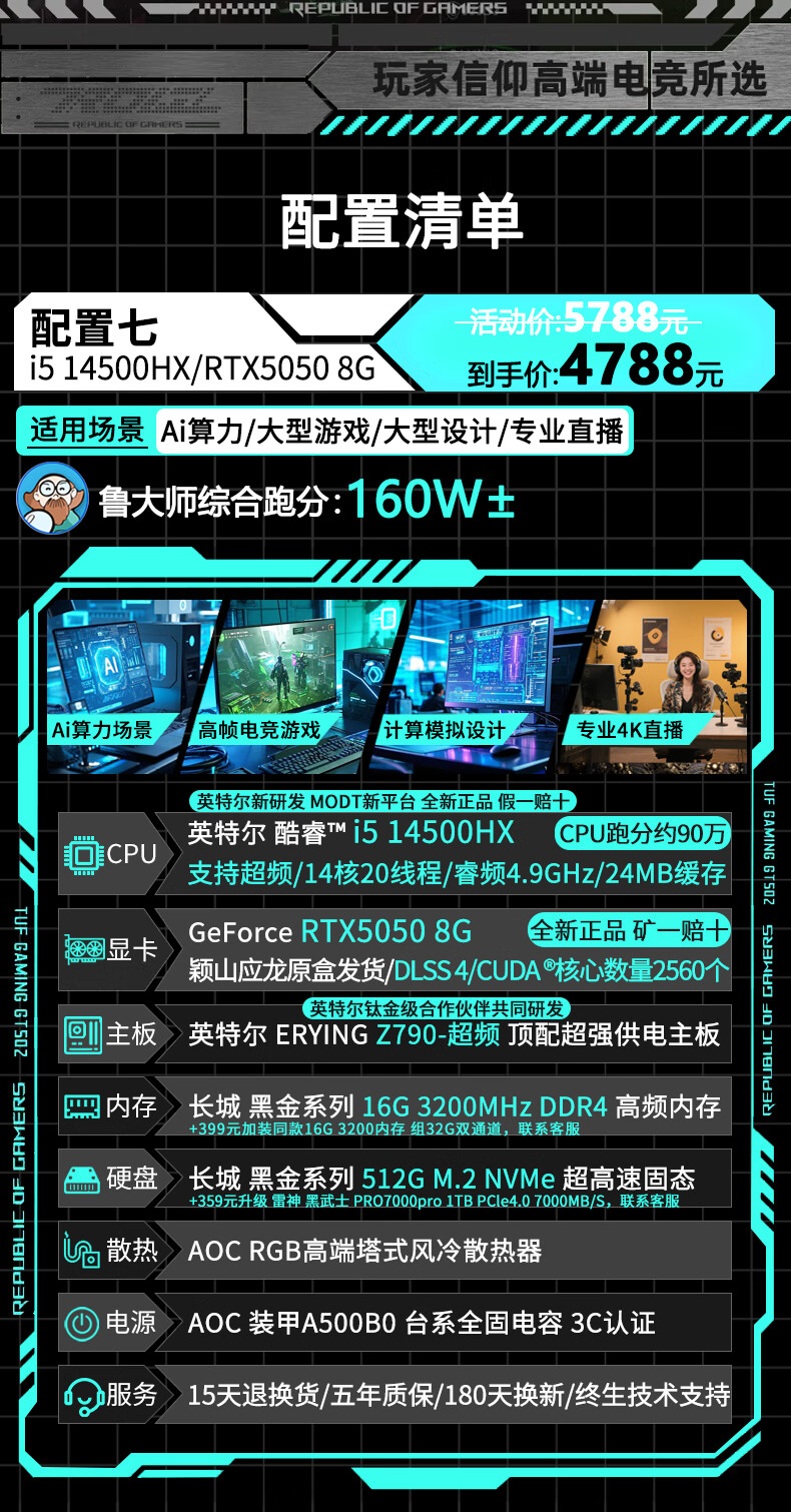 AOC Intel high-end overclocked 14th generation i9 14900/i7 14700+RTX5060/RTX5050 independent display desktop computer e-sports design game live assembly host four丨14 core overclocked i5 14500HX+RTX3060 computer host brand new genuine丨five-year warranty