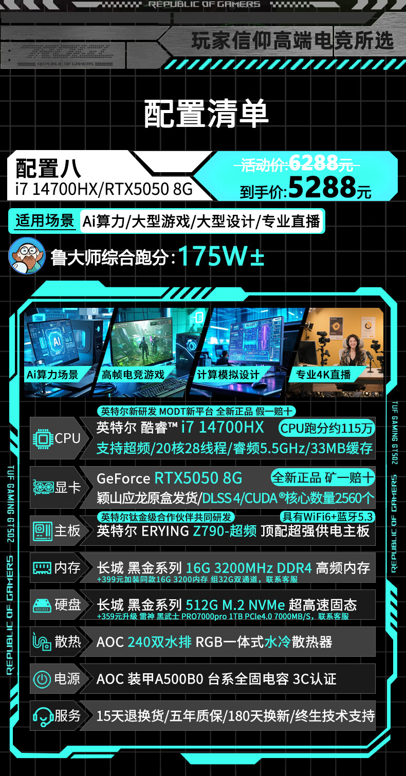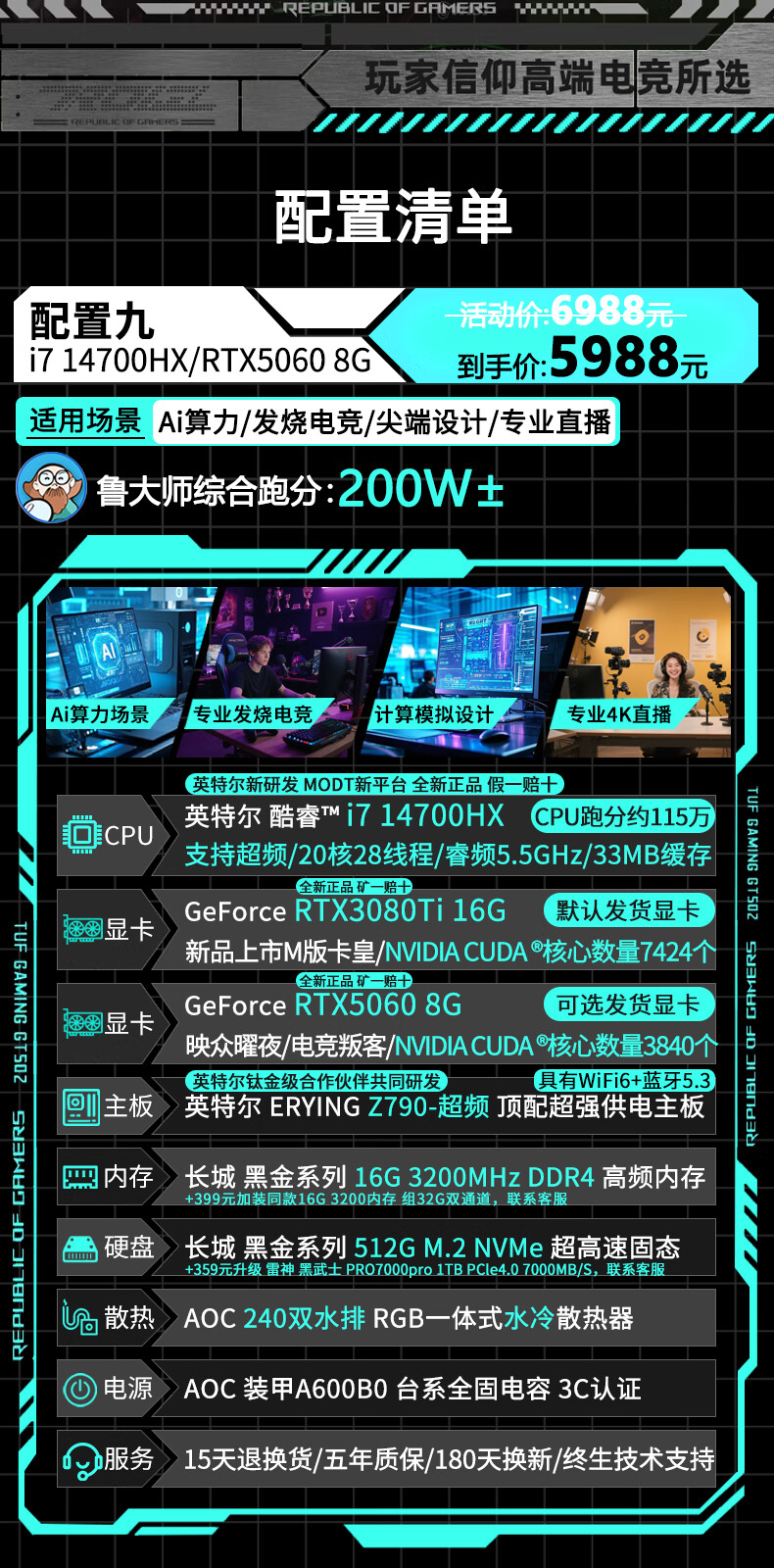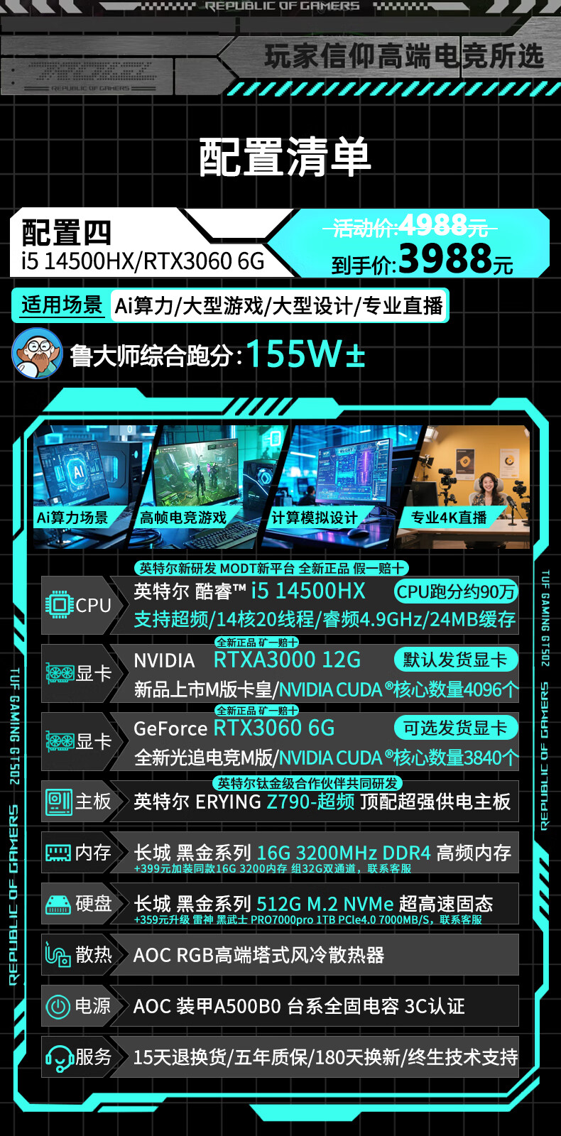 AOC Intel high-end overclocked 14th generation i9 14900/i7 14700+RTX5060/RTX5050 independent display desktop computer e-sports design game live assembly host four丨14 core overclocked i5 14500HX+RTX3060 computer host brand new genuine丨five-year warranty