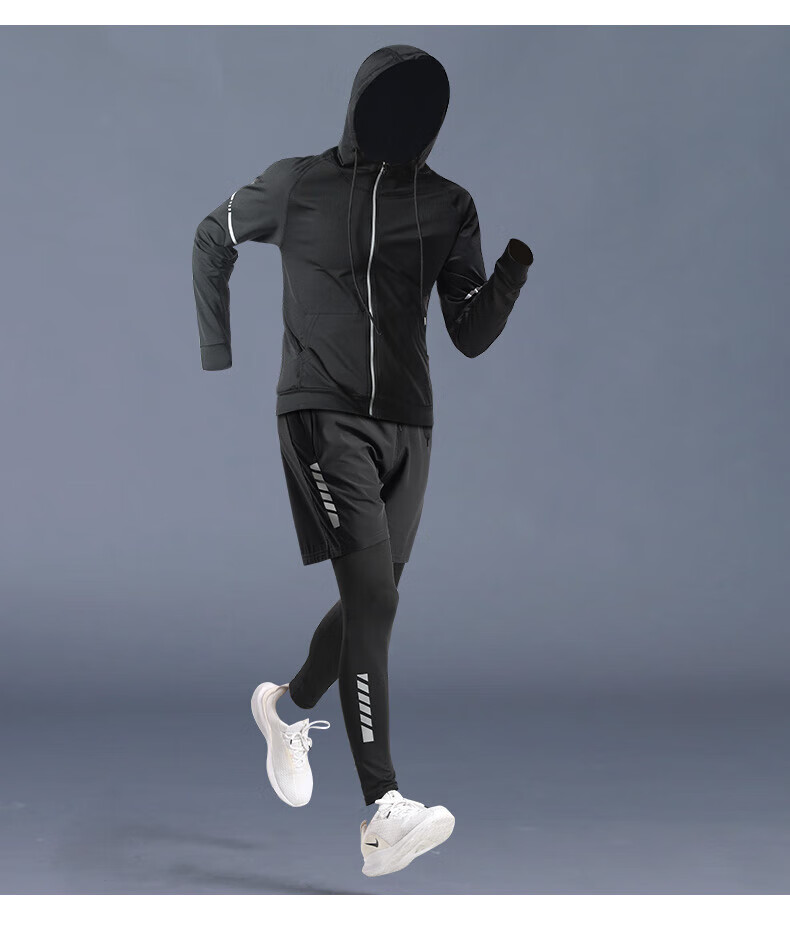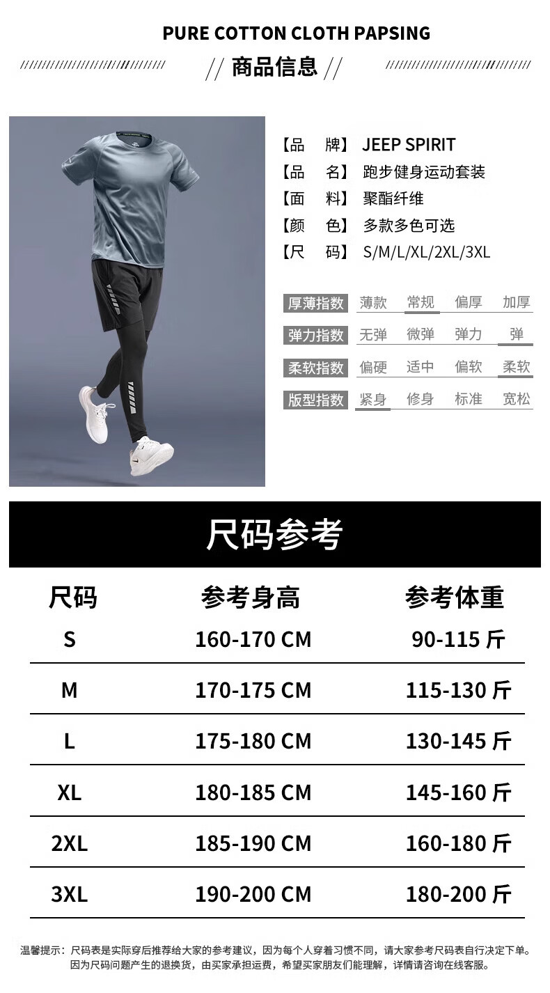 JEEP SPIRIT Jeep casual sports suit men's cycling clothing spring, autumn and winter running quick-drying clothing equipment full set of trousers and clothing five-piece sports set loose style quick-drying breathable XXL
