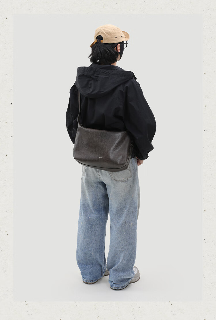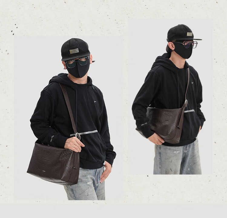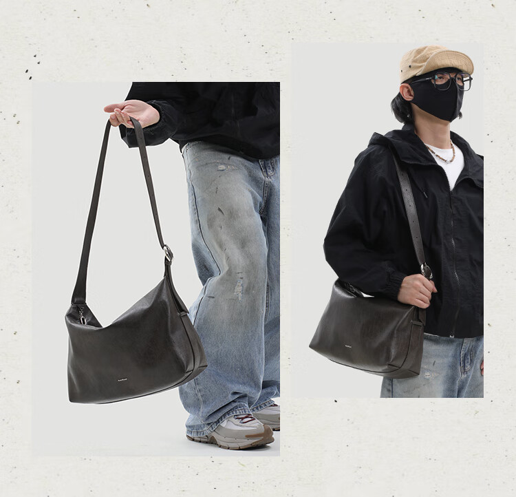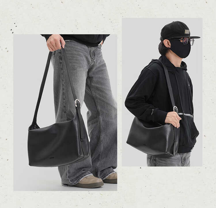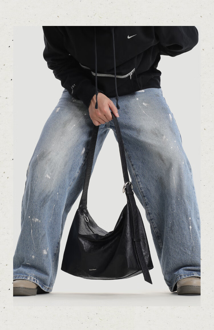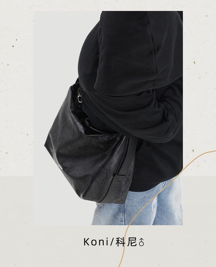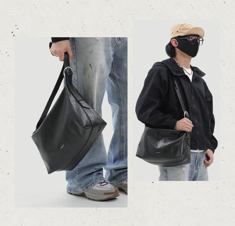 KONIKONI men's crossbody bag genuine leather men's bag shoulder bag large capacity tote bag casual large bag 2026 new commuter men's bag black shoulder strap adjustable