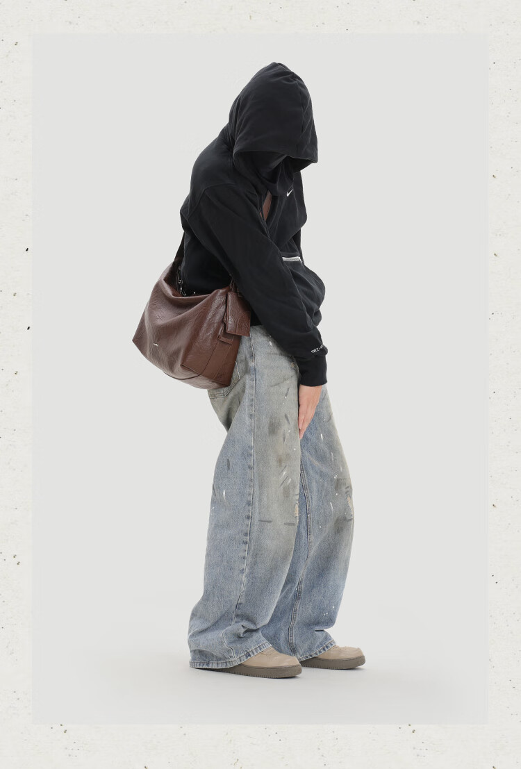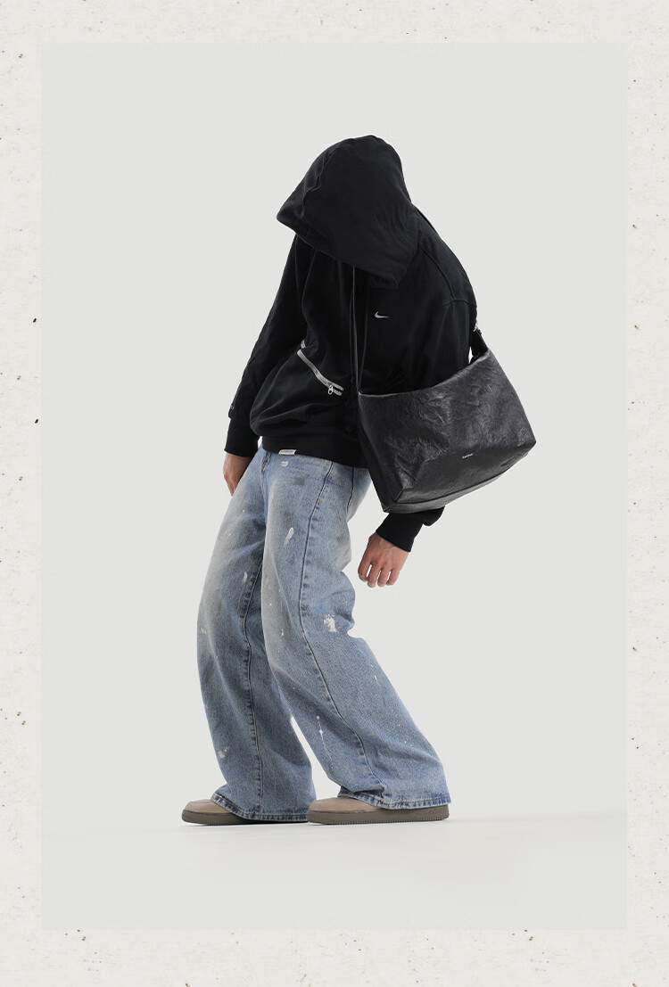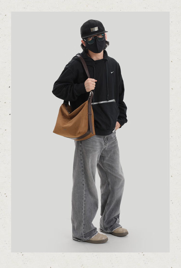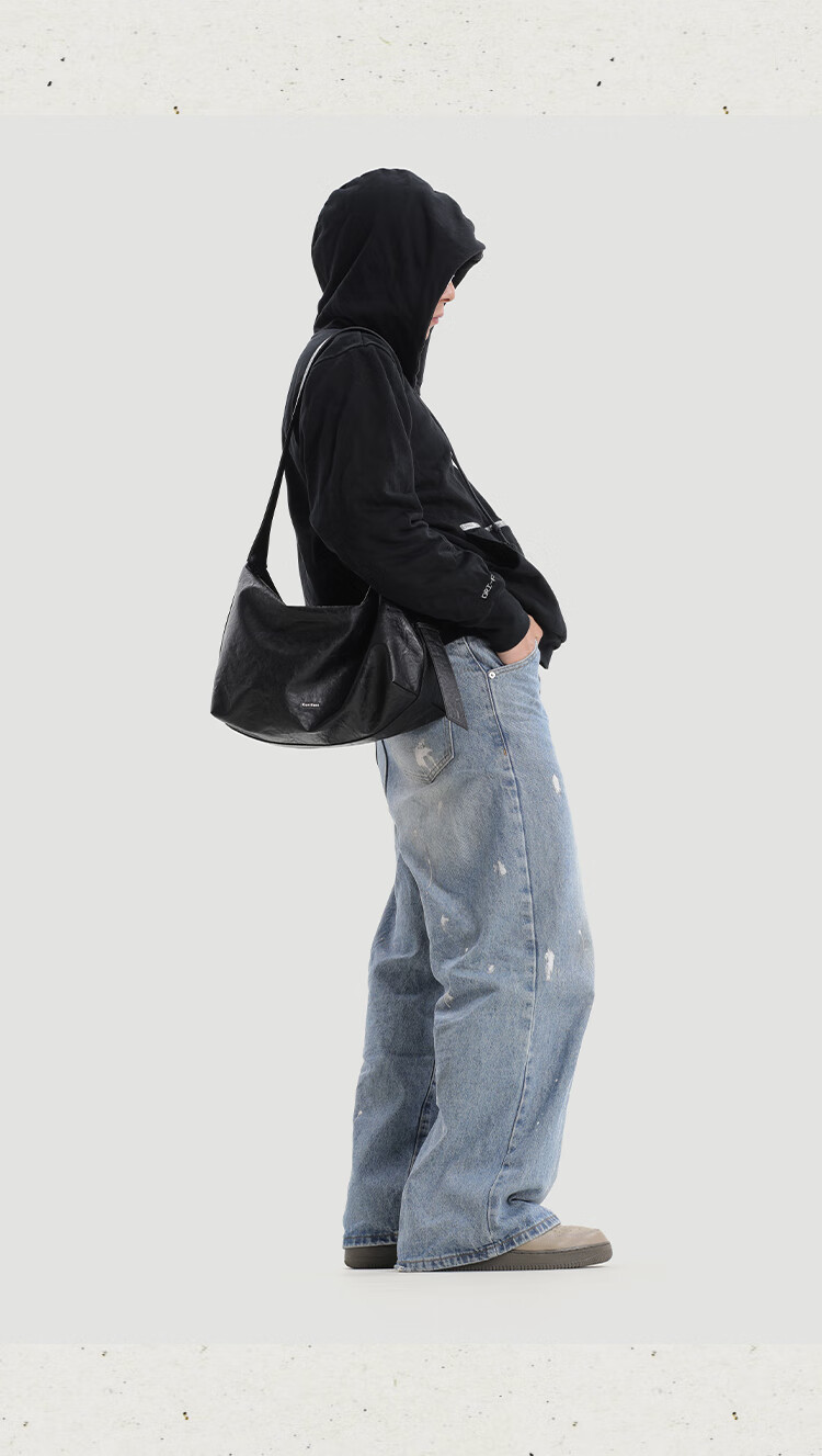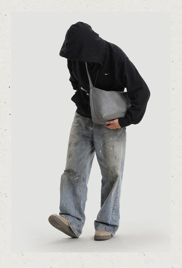 KONIKONI men's crossbody bag genuine leather men's bag shoulder bag large capacity tote bag casual large bag 2026 new commuter men's bag black shoulder strap adjustable