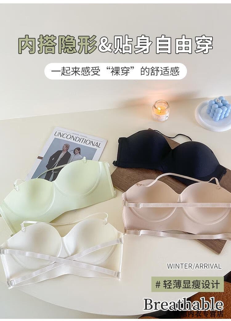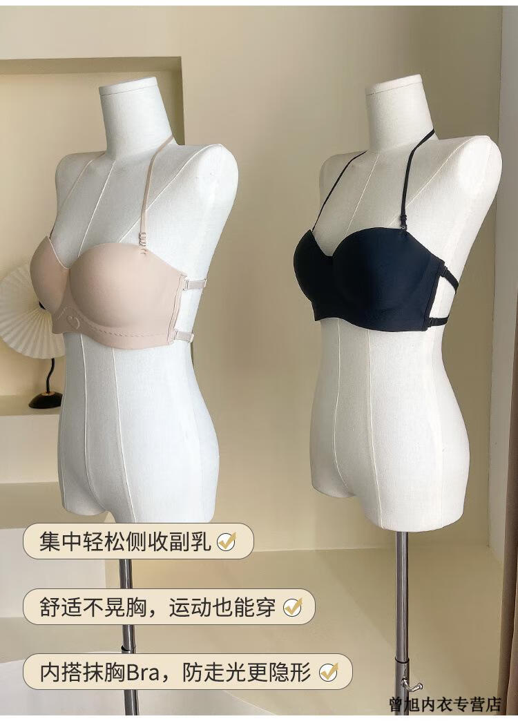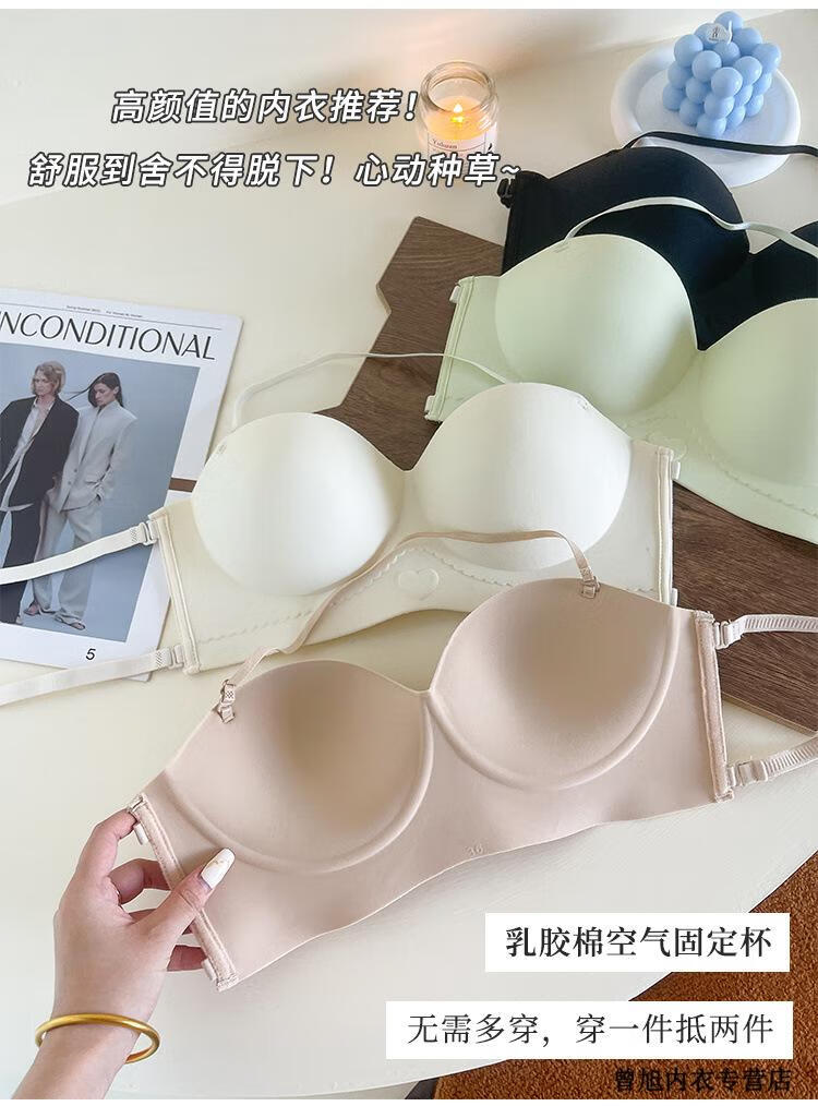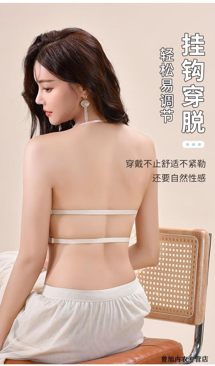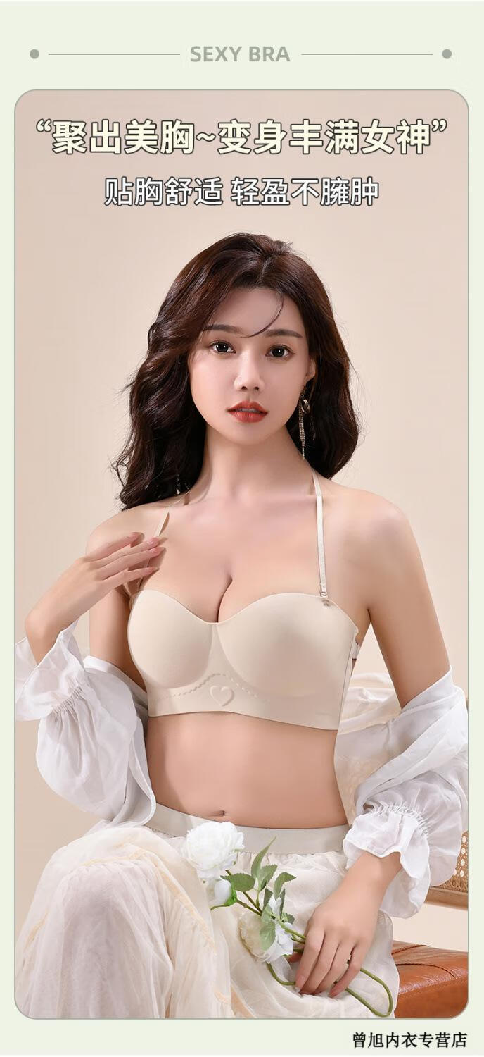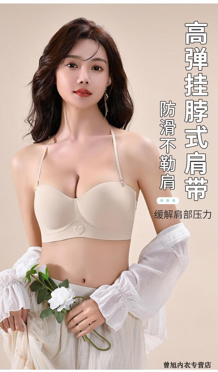 NJSKAKW Seamless Cross Hanging Neck Beautiful Back Bra Push Up Small Breast Showcase Non-Slip Invisible Bra Bandeau Wrap Bra One Piece Light Skin L 36/80ABC
