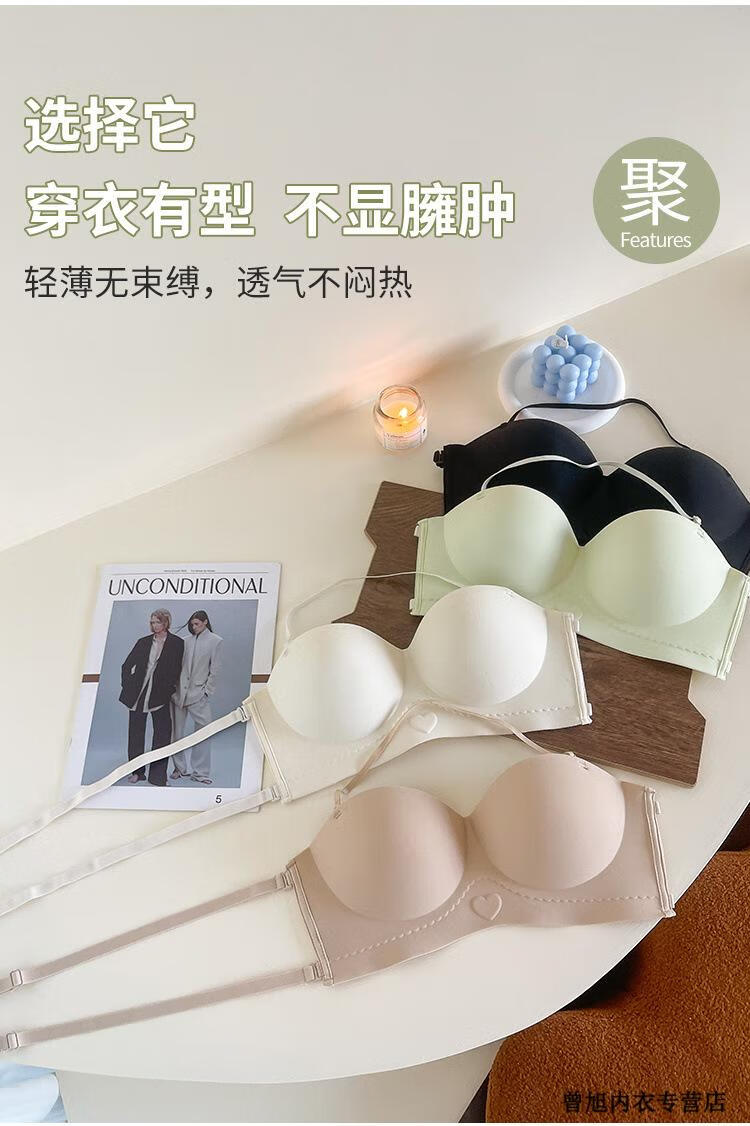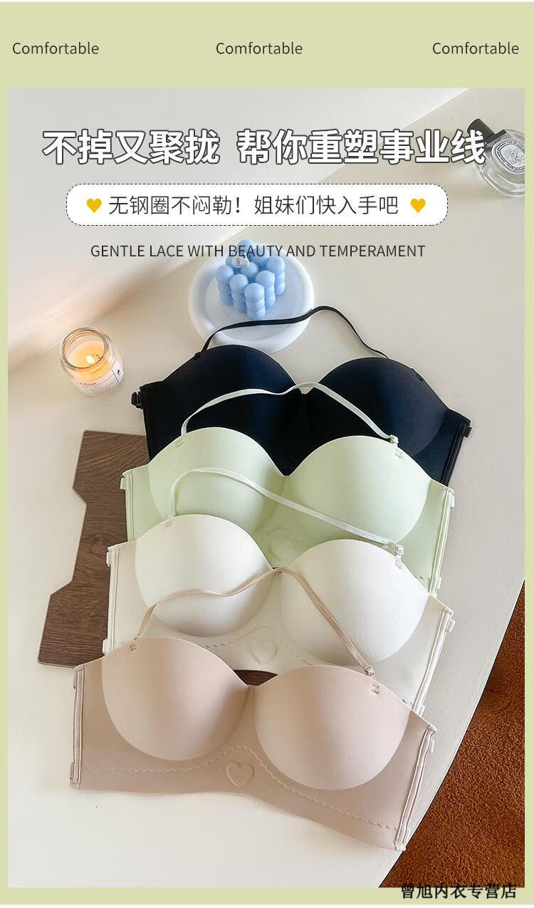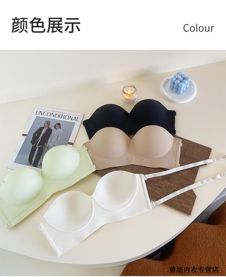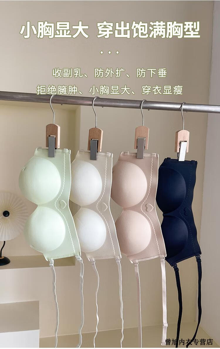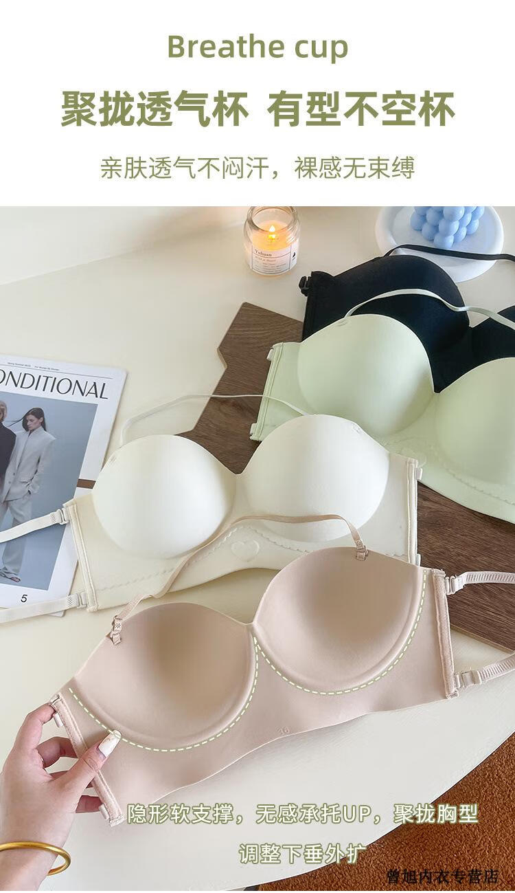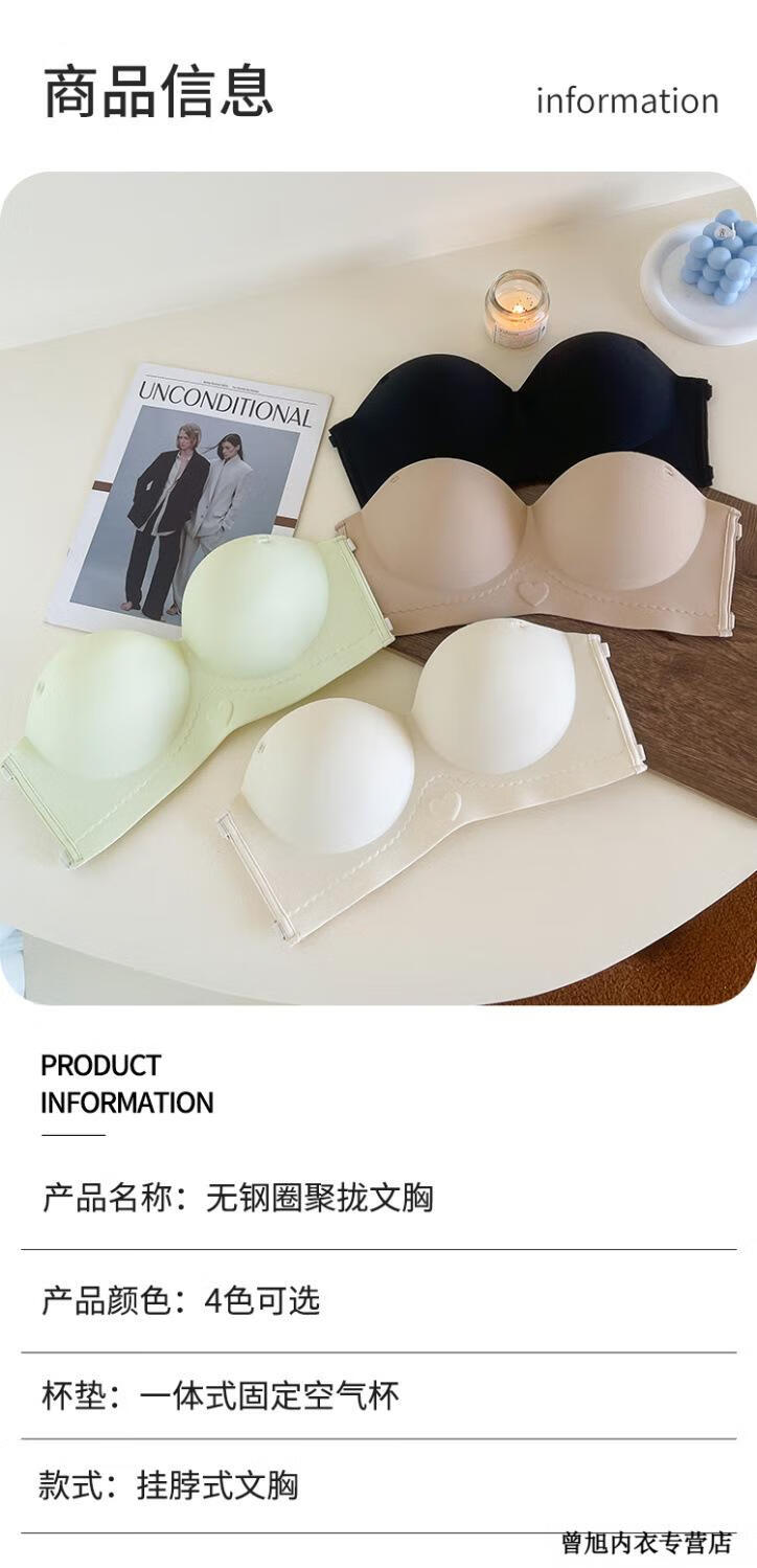 NJSKAKW Seamless Cross Hanging Neck Beautiful Back Bra Push Up Small Breast Showcase Non-Slip Invisible Bra Bandeau Wrap Bra One Piece Light Skin L 36/80ABC