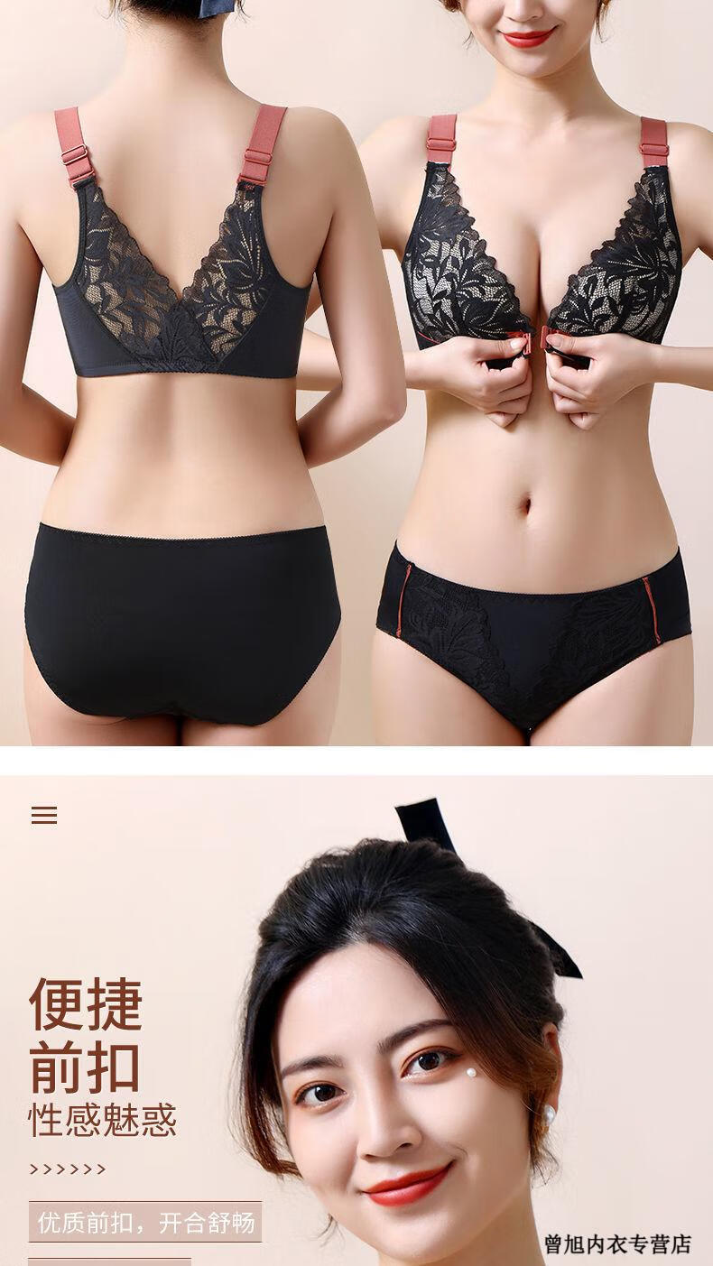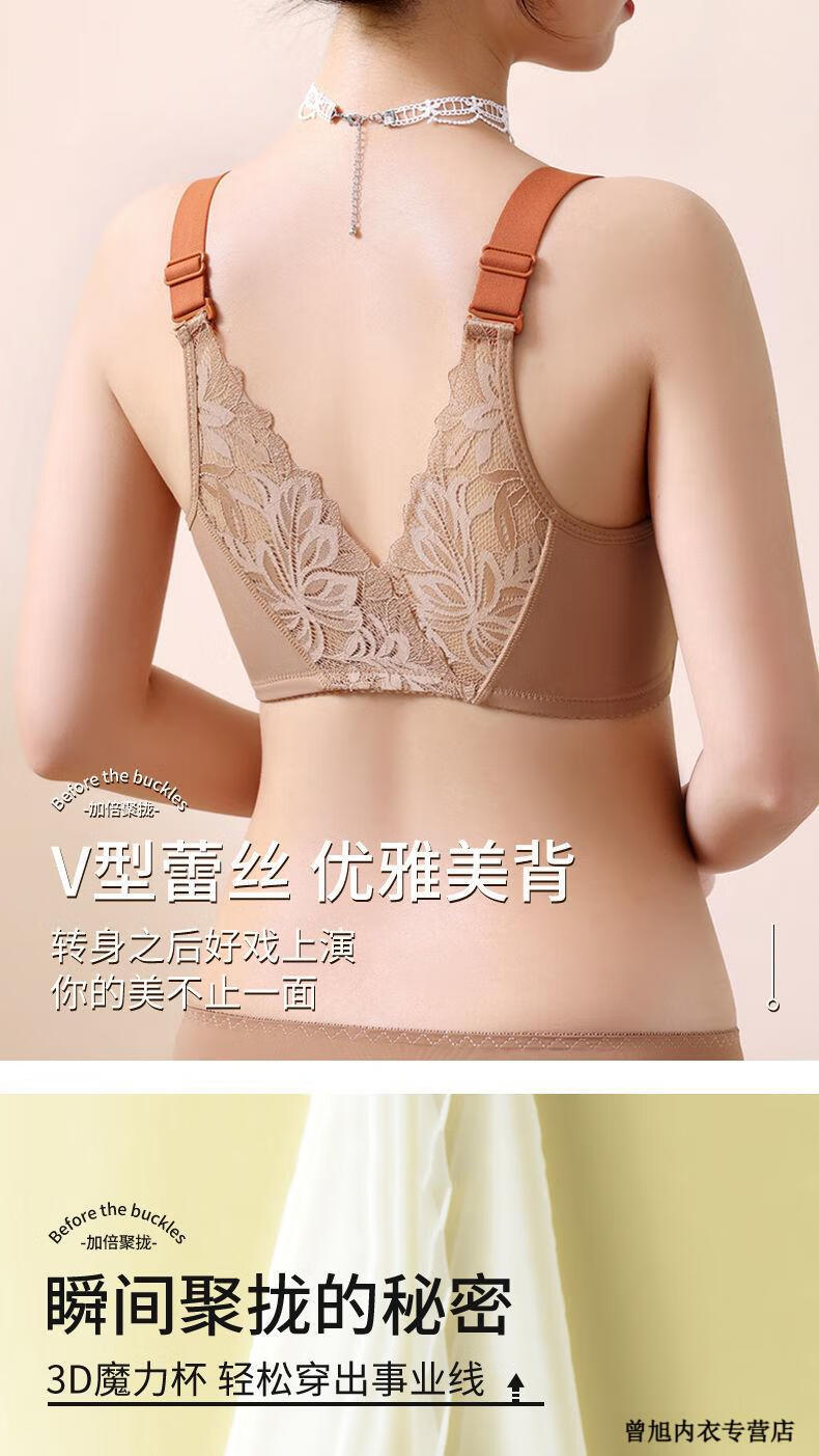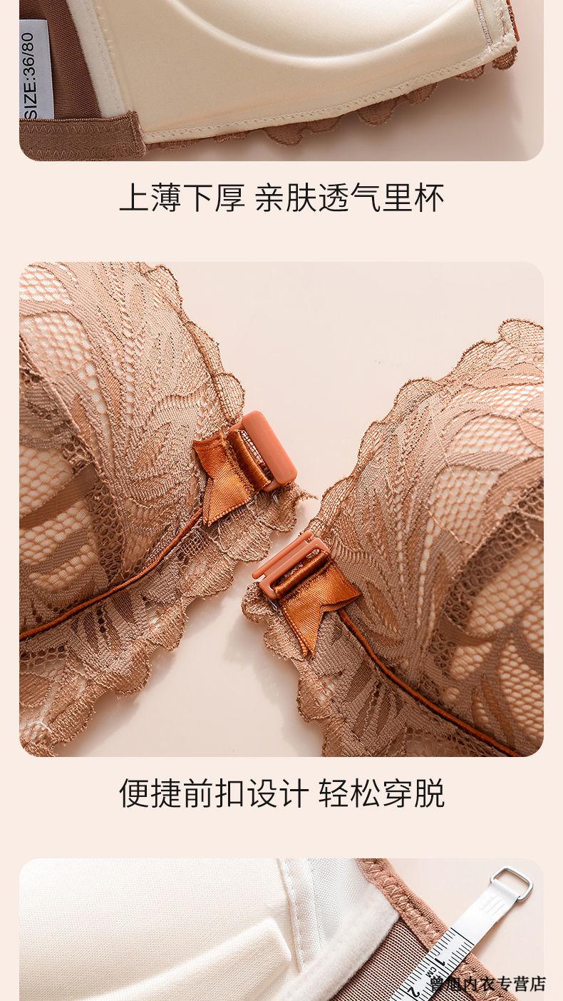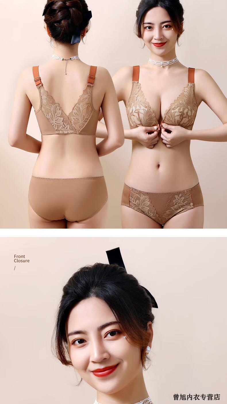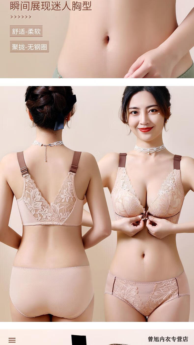 NJSKAKW Thickness optional, large size front button bra, push-up, side breasts, no steel ring, sexy back set, apricot single piece + champagne single piece, 2 pieces, 80C 36C thin cup