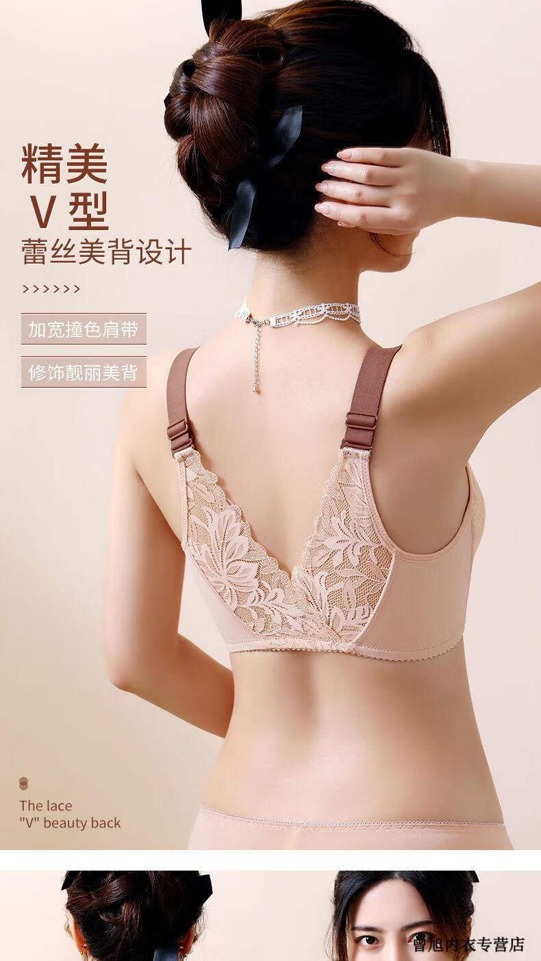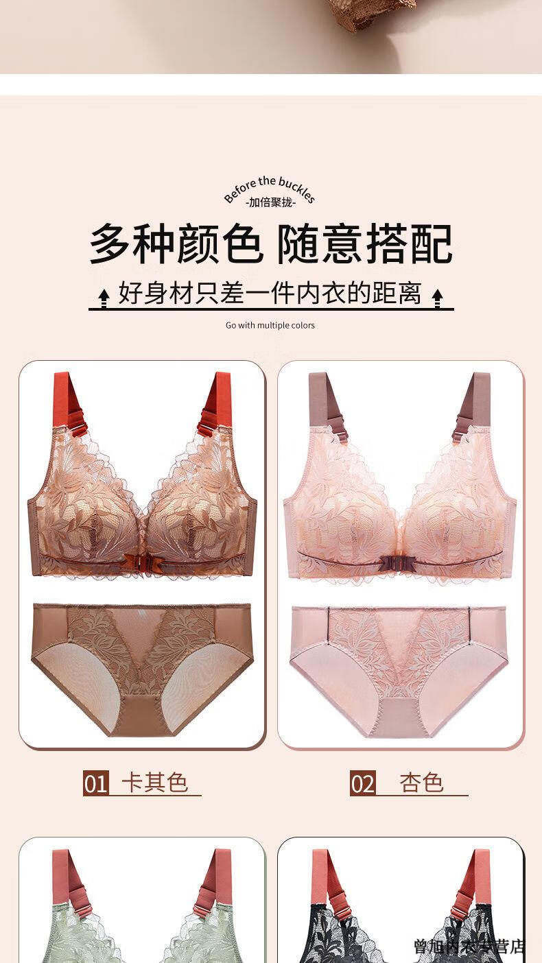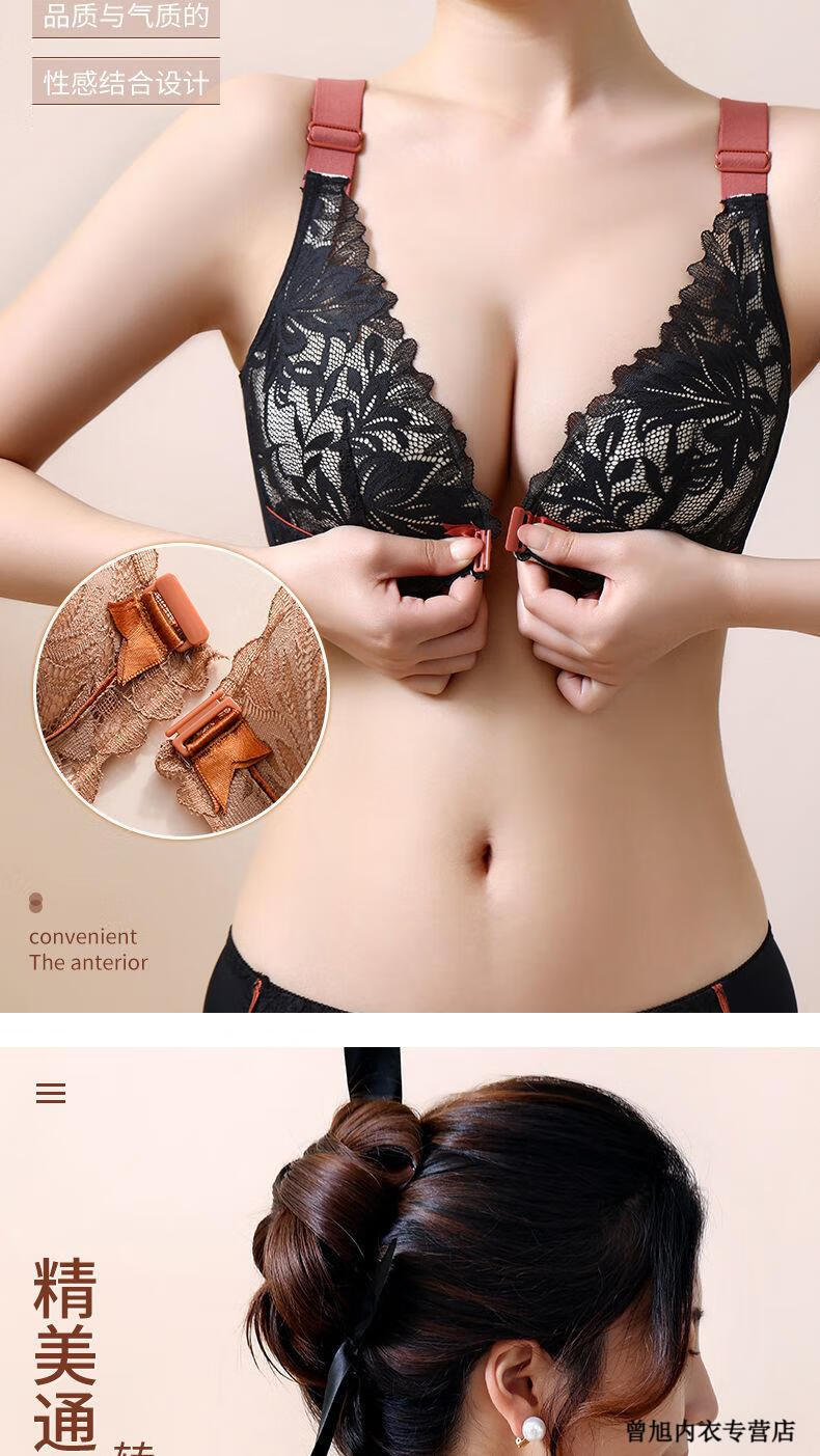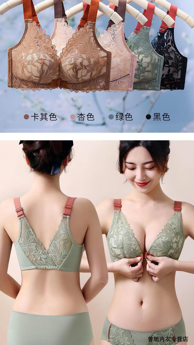 NJSKAKW Thickness optional, large size front button bra, push-up, side breasts, no steel ring, sexy back set, apricot single piece + champagne single piece, 2 pieces, 80C 36C thin cup