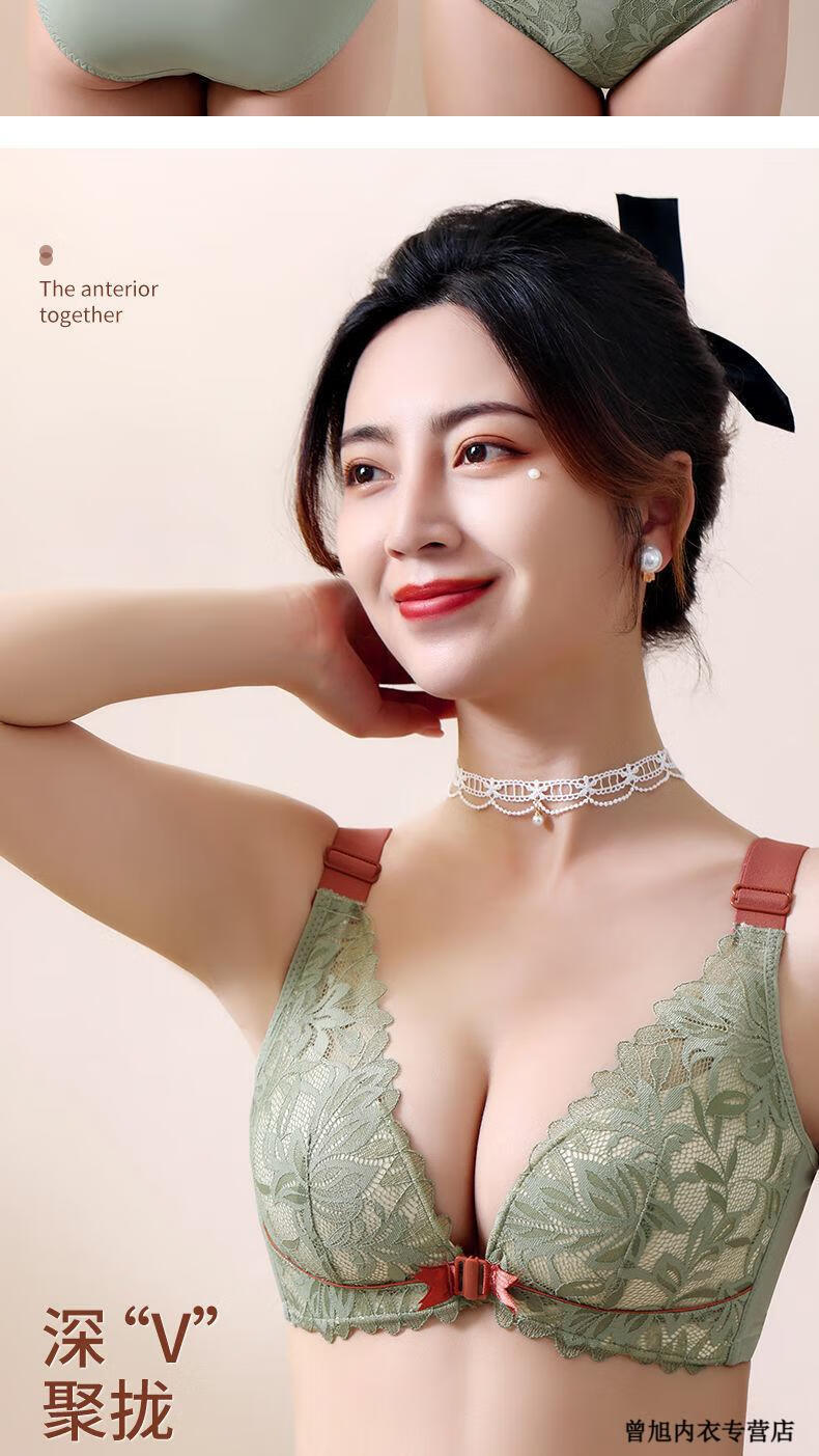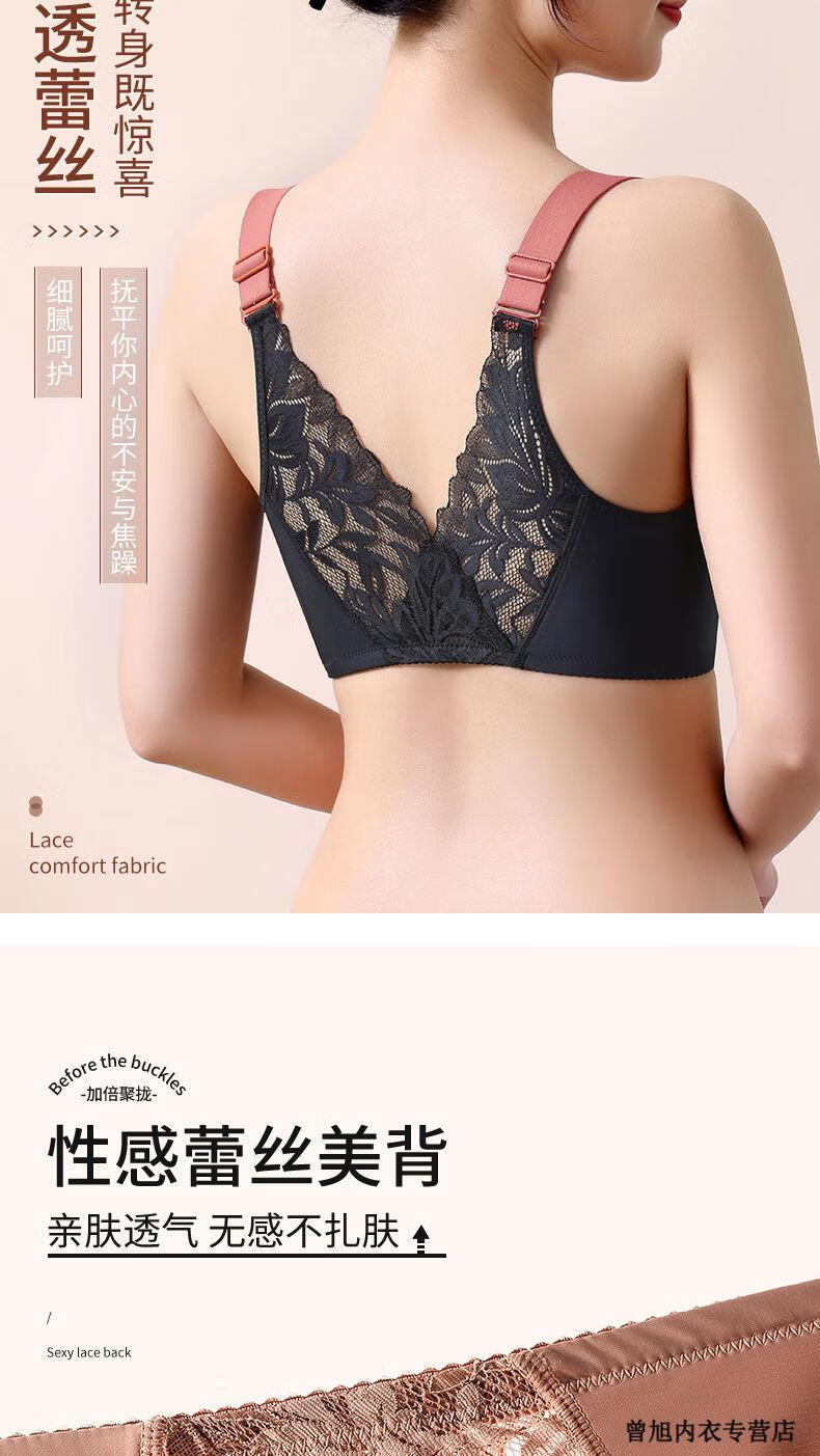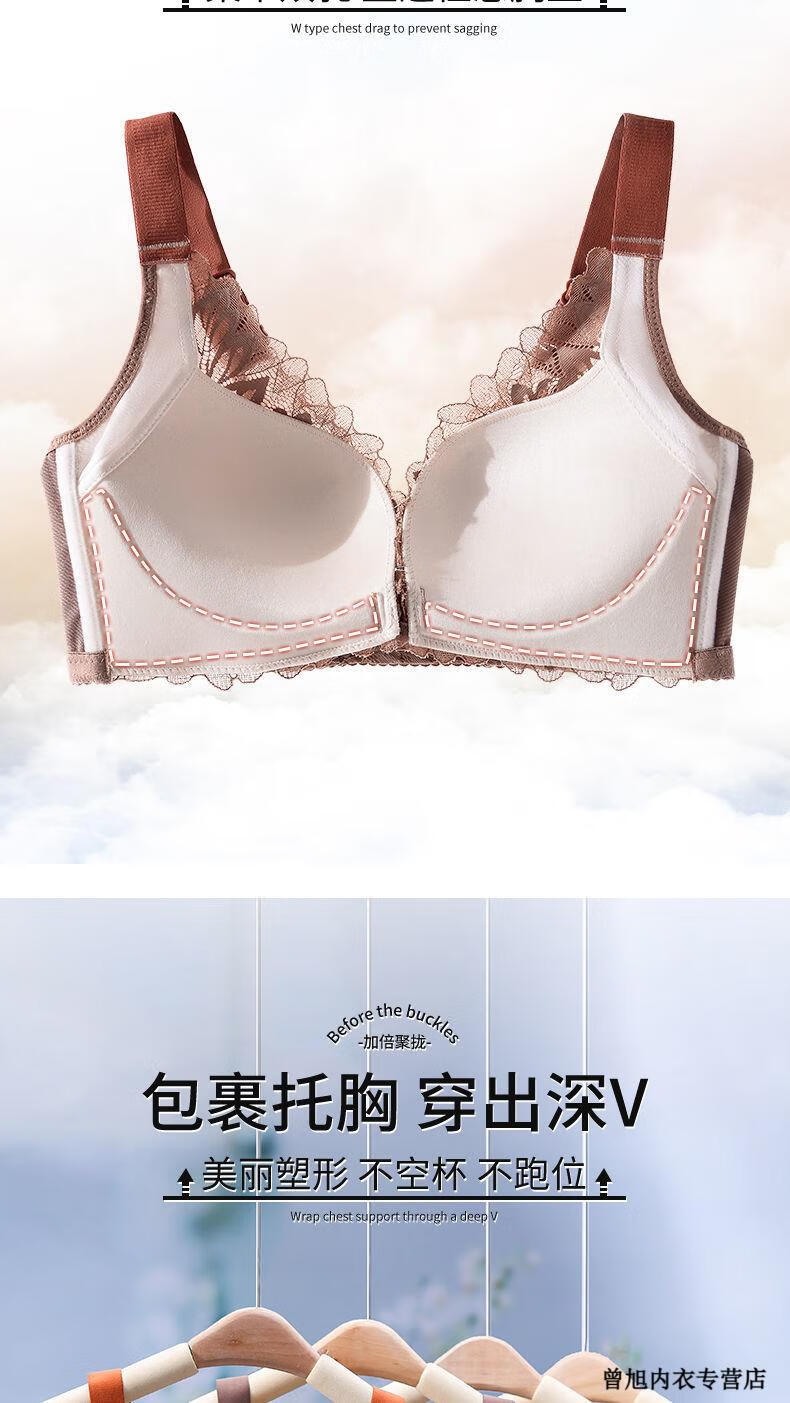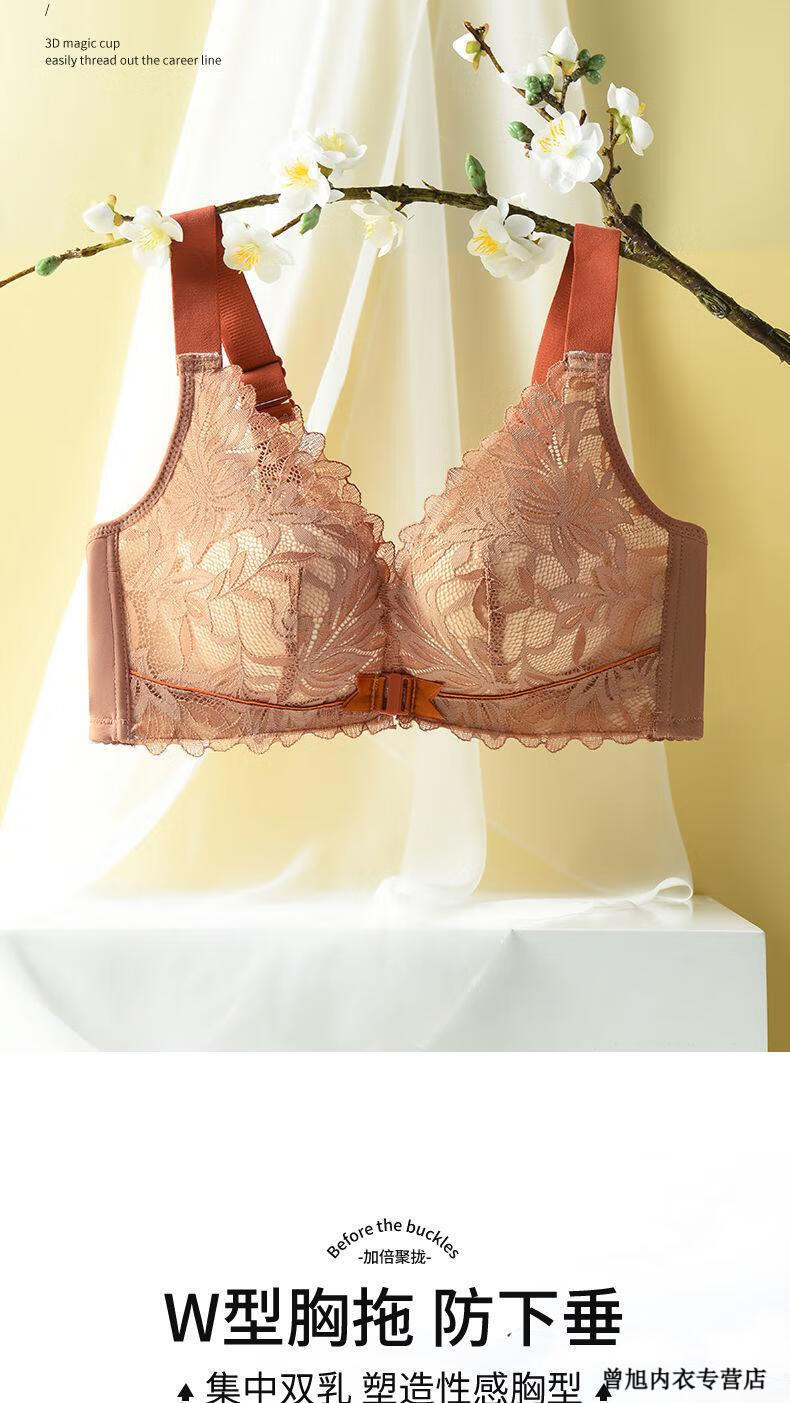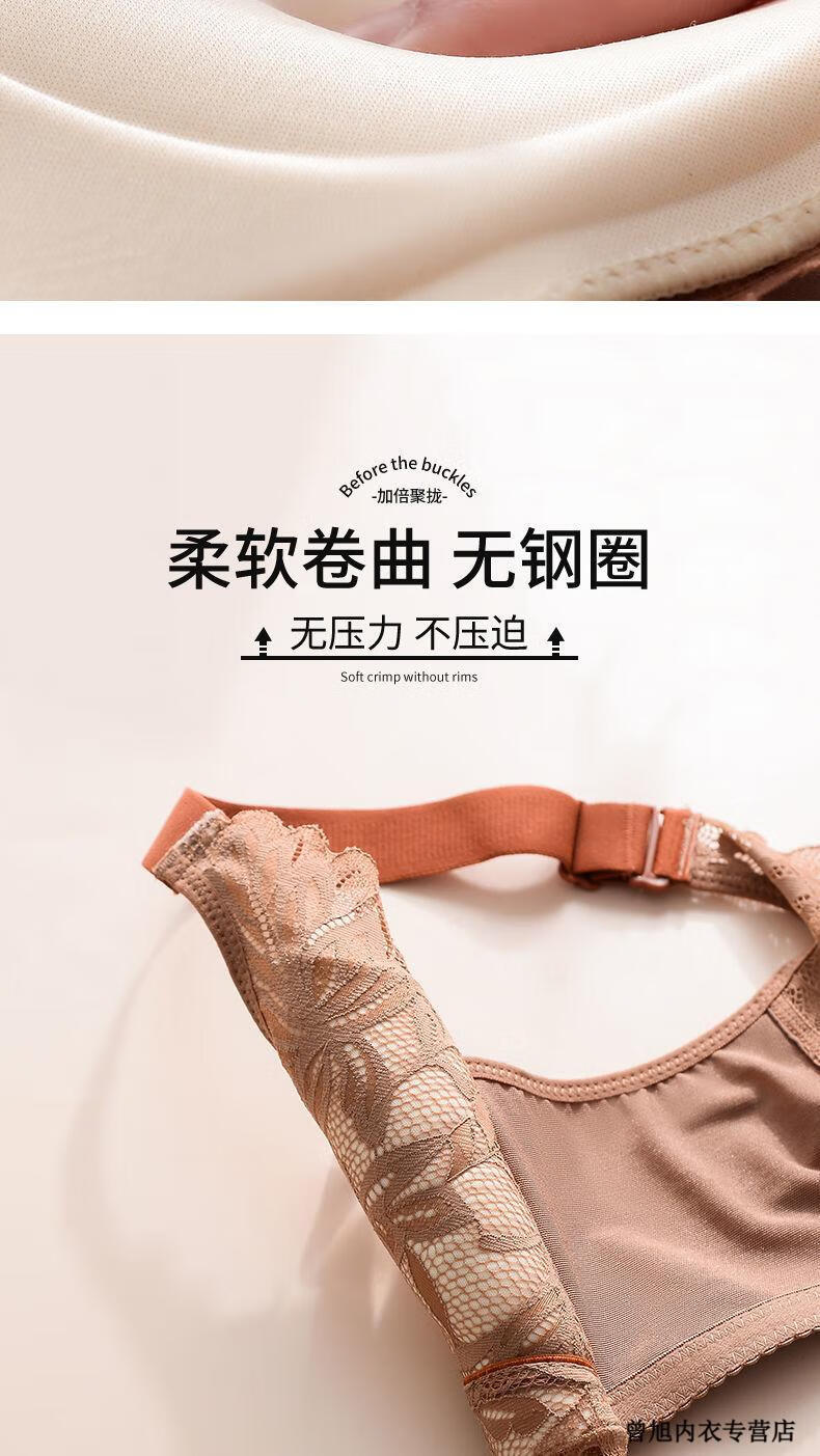 NJSKAKW Thickness optional, large size front button bra, push-up, side breasts, no steel ring, sexy back set, apricot single piece + champagne single piece, 2 pieces, 80C 36C thin cup
