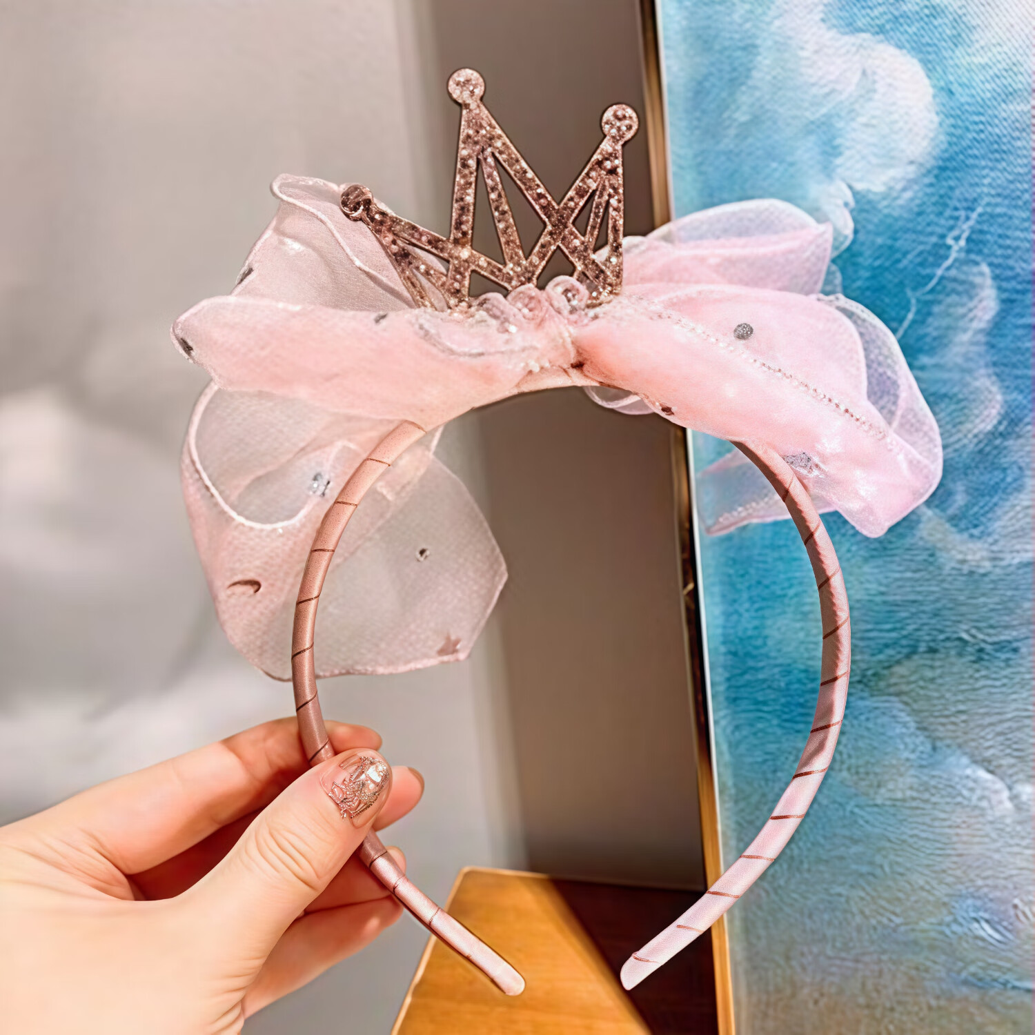 SNQP crown headband for children and girls, bow headband, baby's first birthday, baby hair accessories, little girl headband, veil, beige lace crown headband, 1 piece