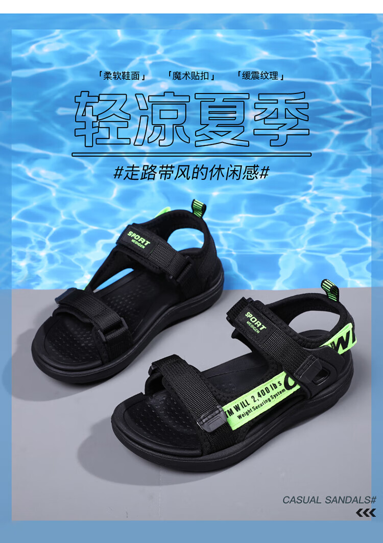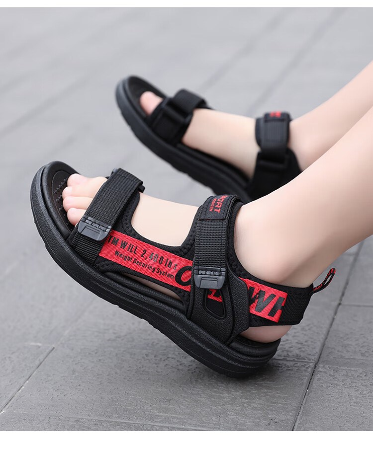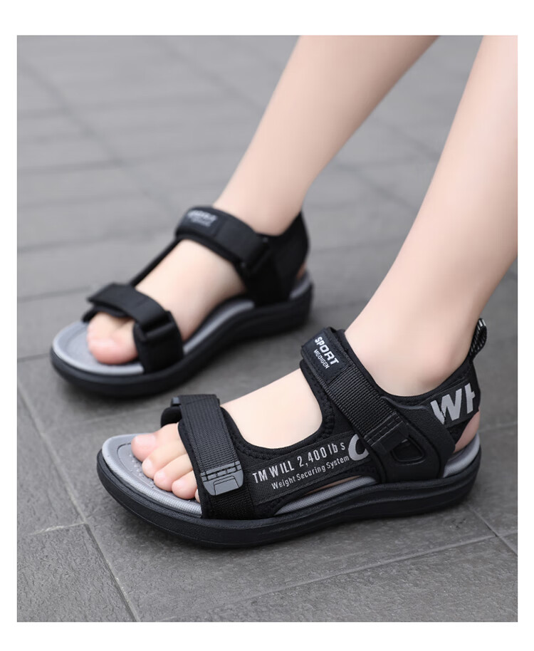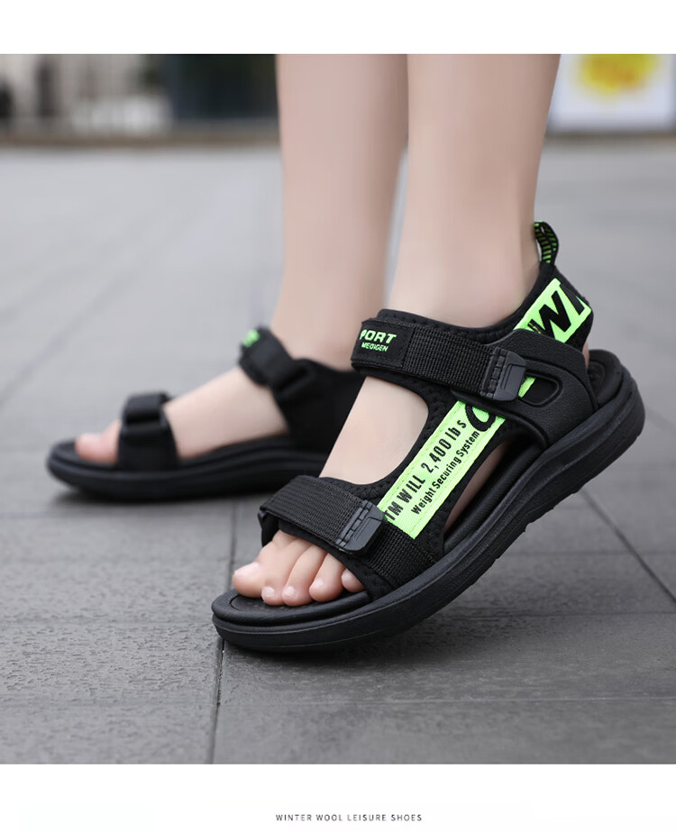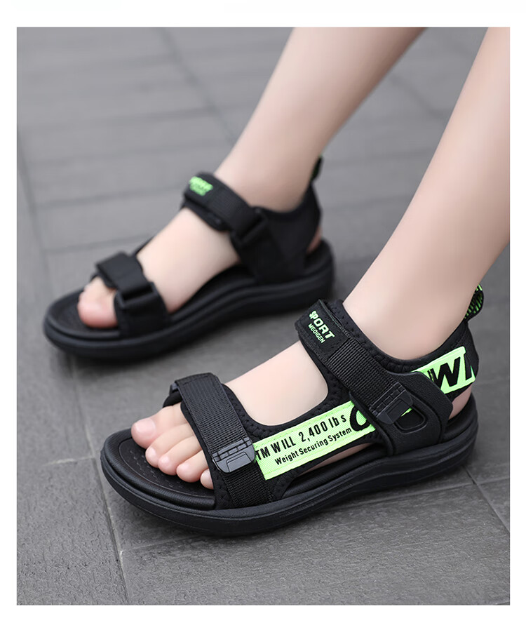 Boys' Sandals 2025 Summer New Open Toe Soft Sole Anti-Slip Student Middle and Large Children's Beach Shoes Handsome Children's Sandals XKL1901/Gray Green Size 36 Standard Size