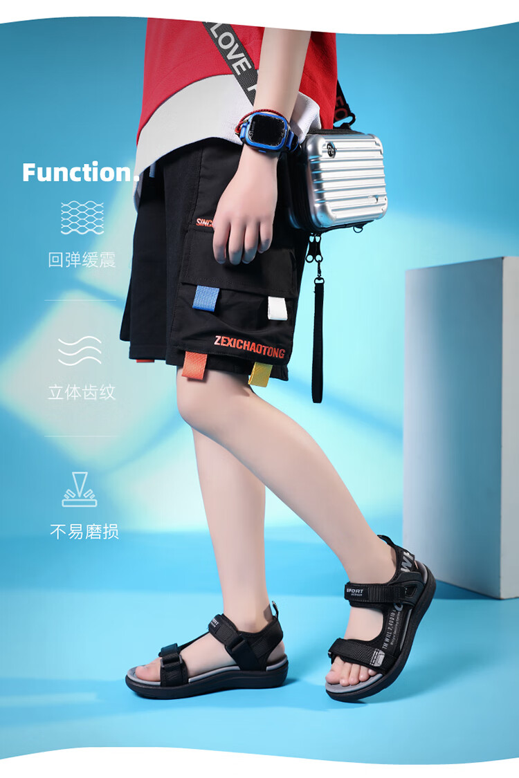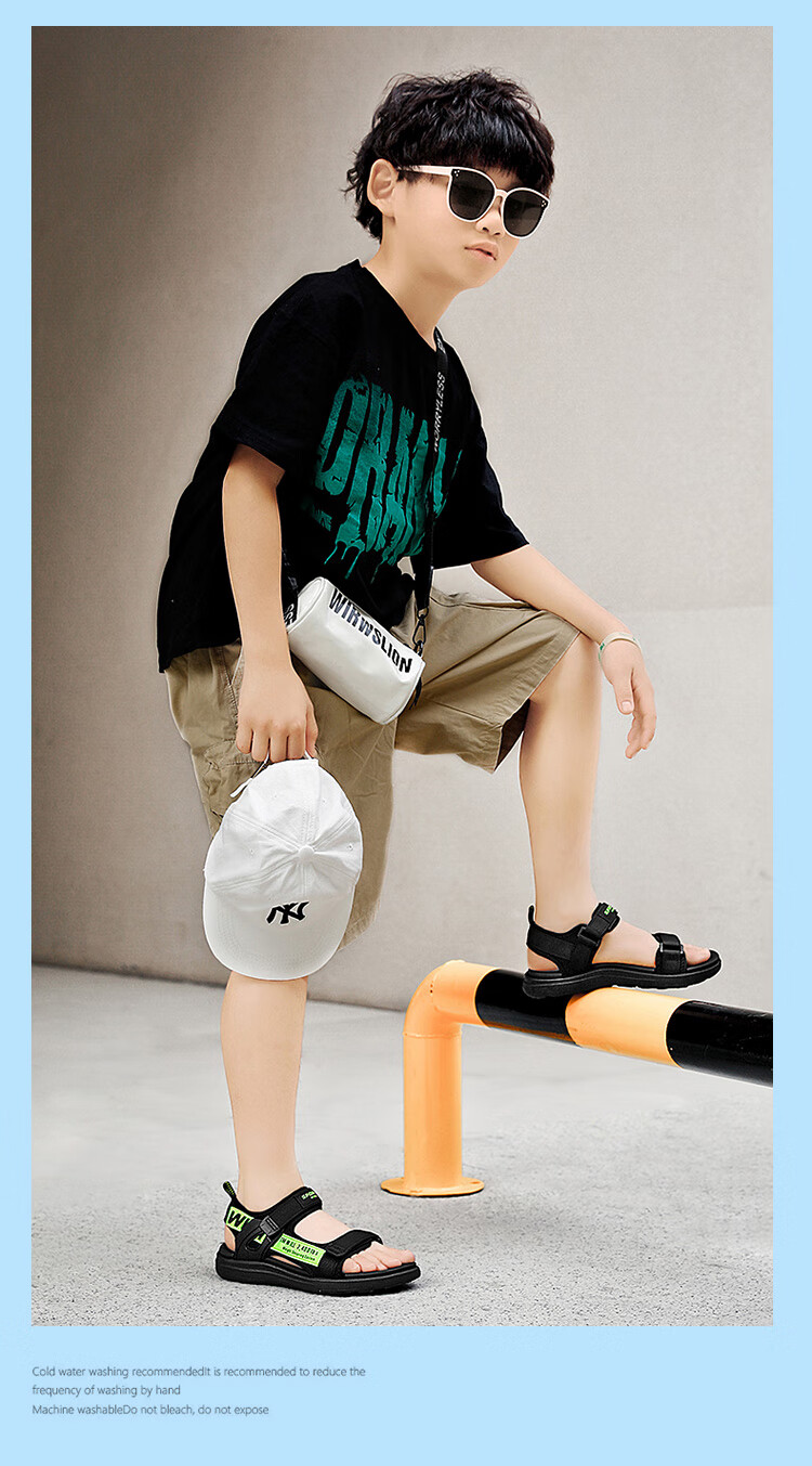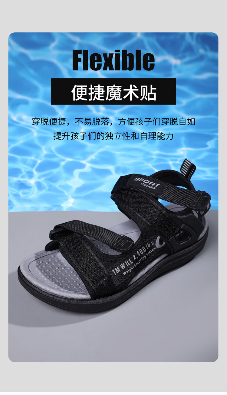 Boys' Sandals 2025 Summer New Open Toe Soft Sole Anti-Slip Student Middle and Large Children's Beach Shoes Handsome Children's Sandals XKL1901/Gray Green Size 36 Standard Size