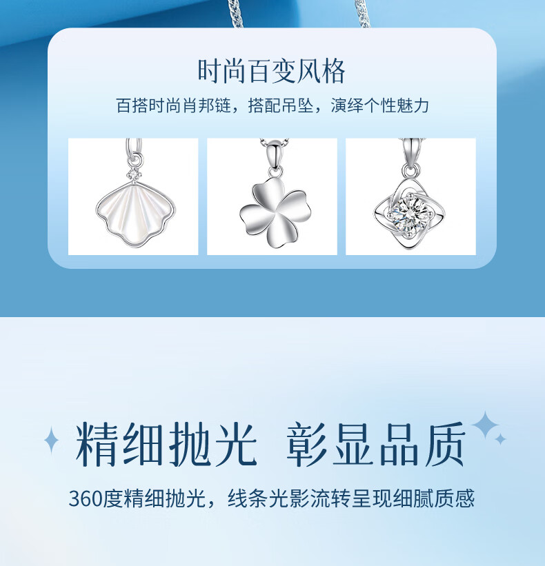 Lao Fengxiang platinum necklace Chopin chain for women Pt950 plain chain clavicle chain wedding anniversary gift for girlfriend and wife platinum Chopin chain