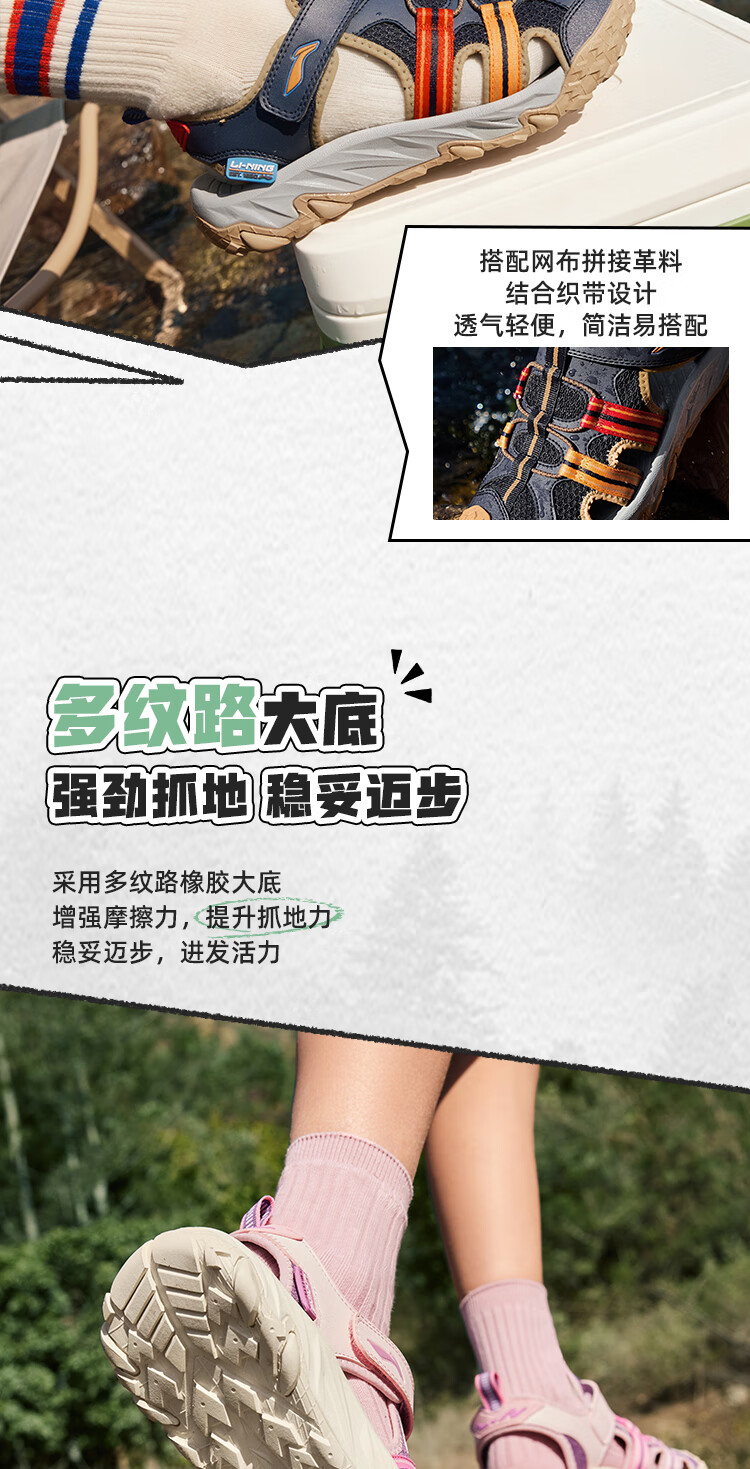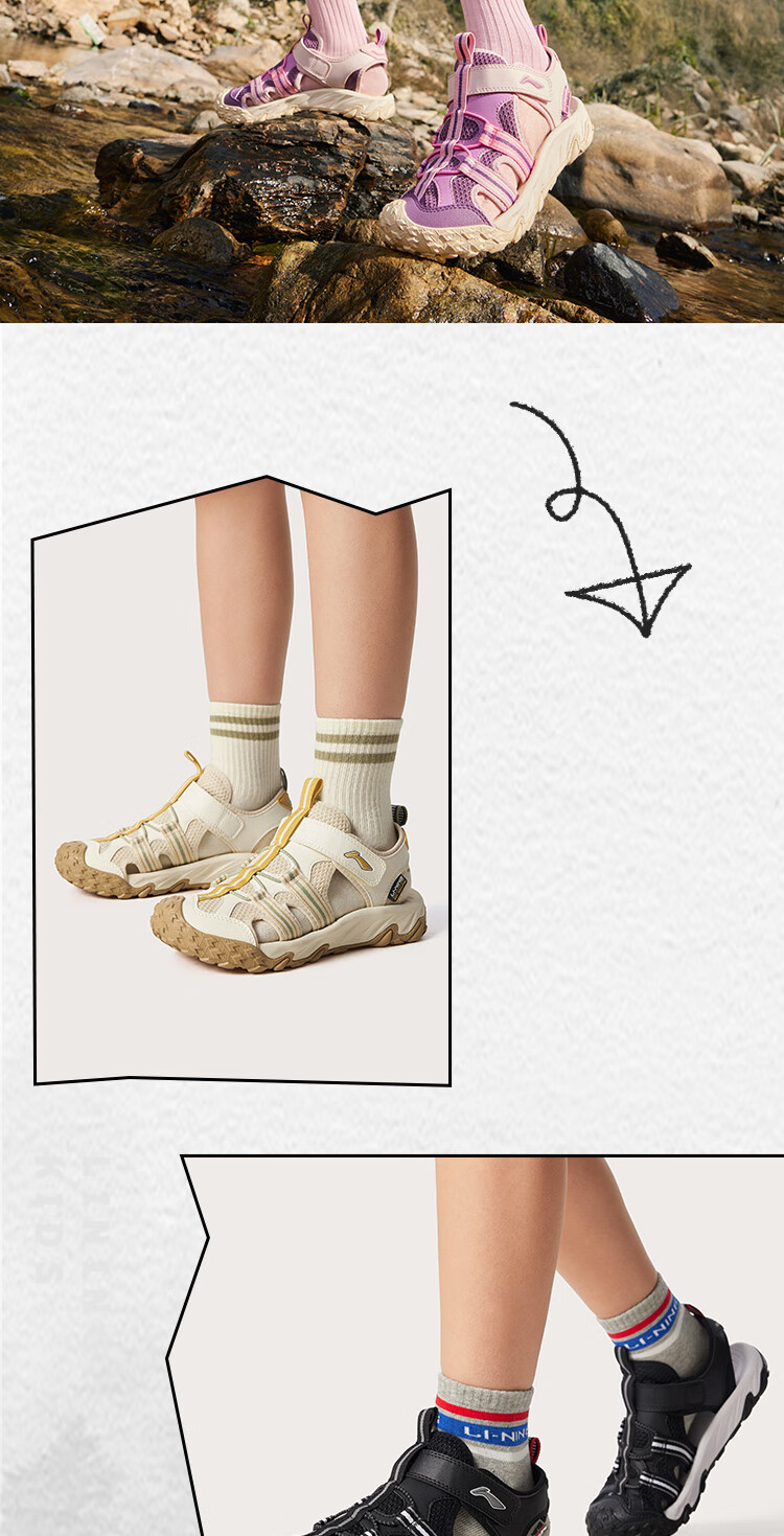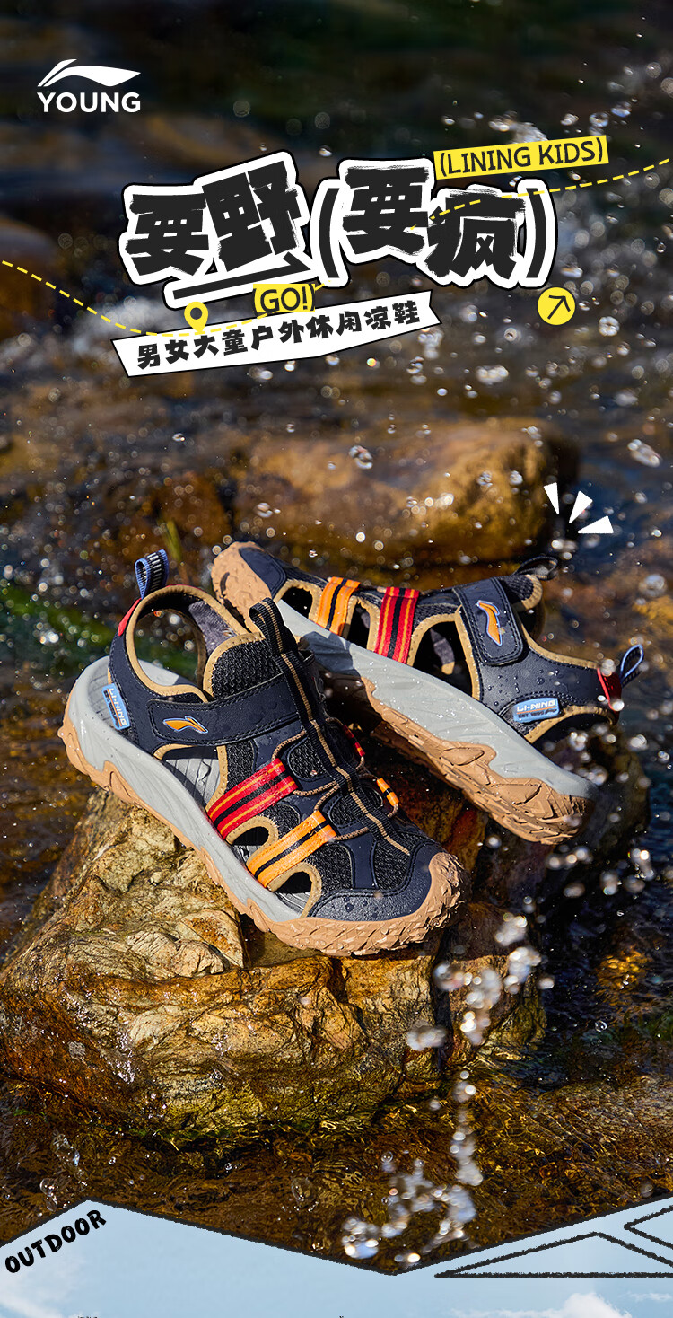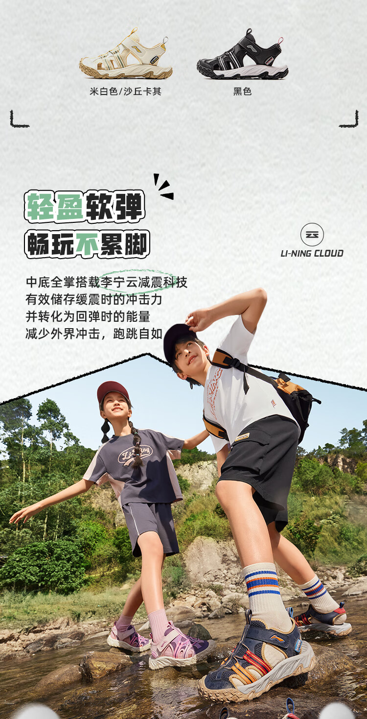Li Ning children's shoes, children's sports sandals, men's and women's summer shock-absorbing rebound outdoor sports and leisure shoes YKUV014 black-7 32