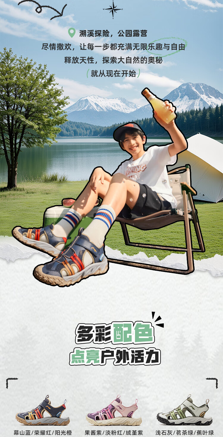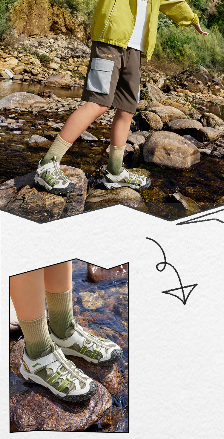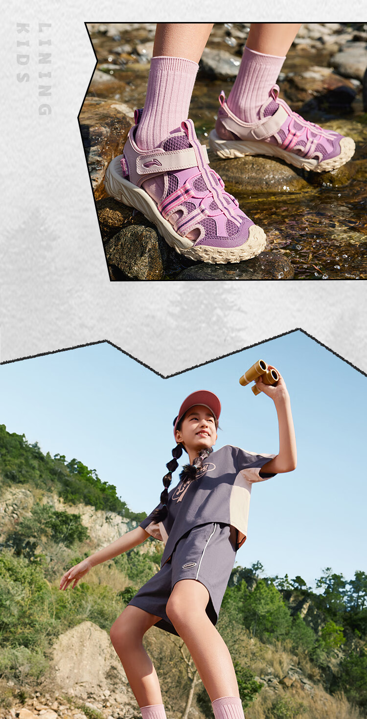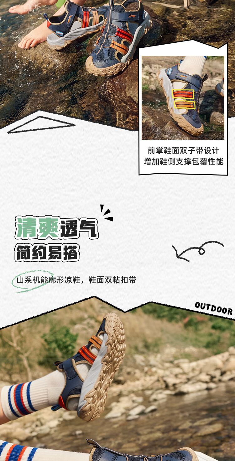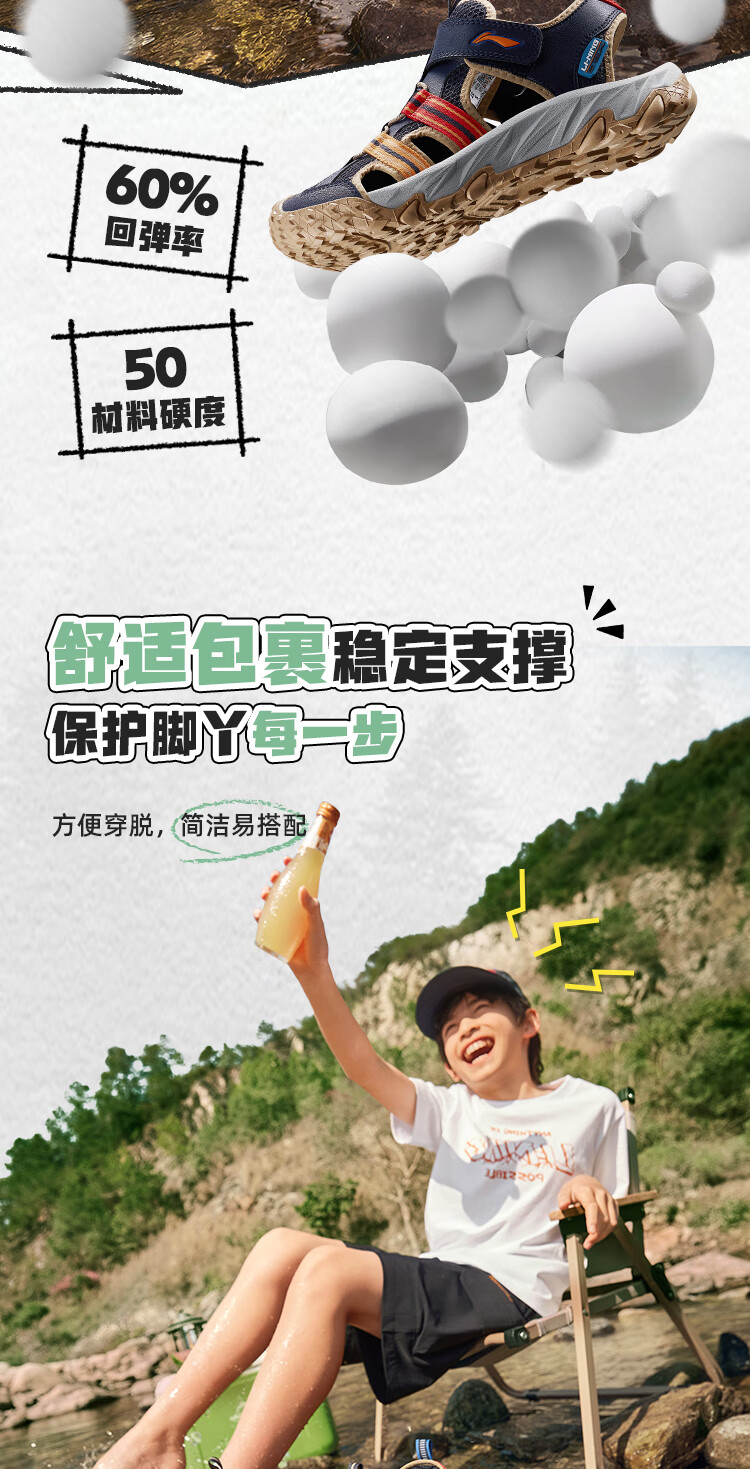 Li Ning children's shoes, children's sports sandals, men's and women's summer shock-absorbing rebound outdoor sports and leisure shoes YKUV014 black-7 32