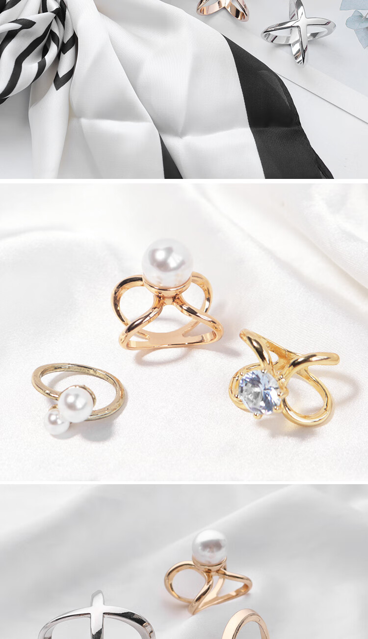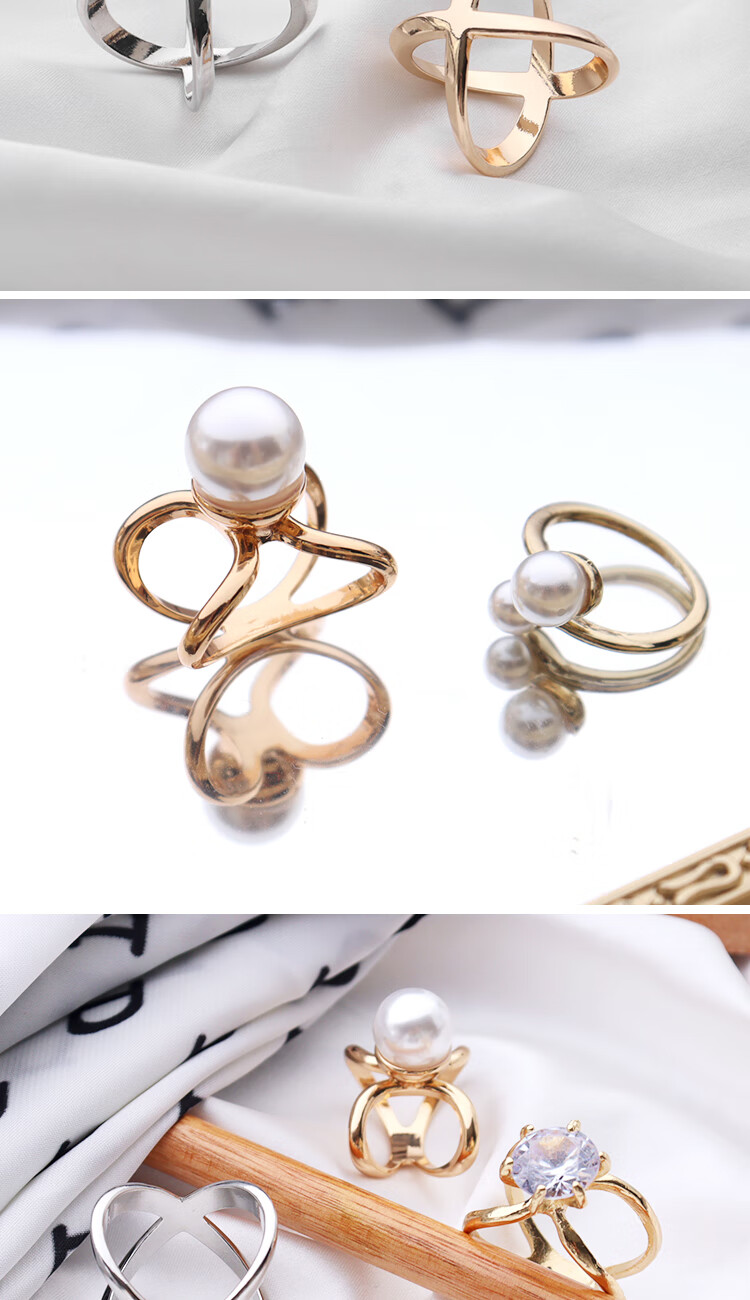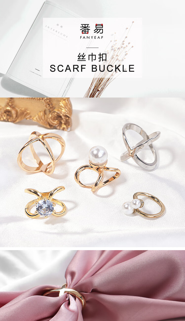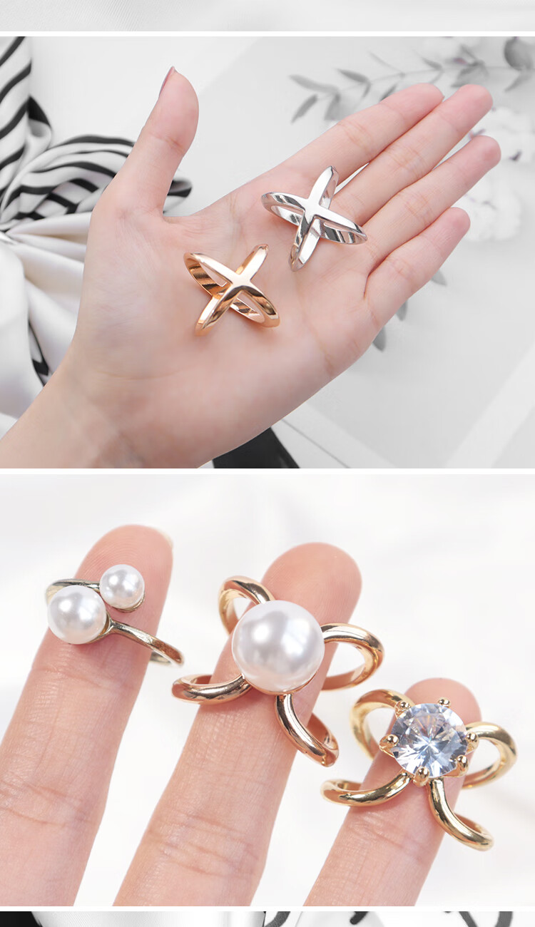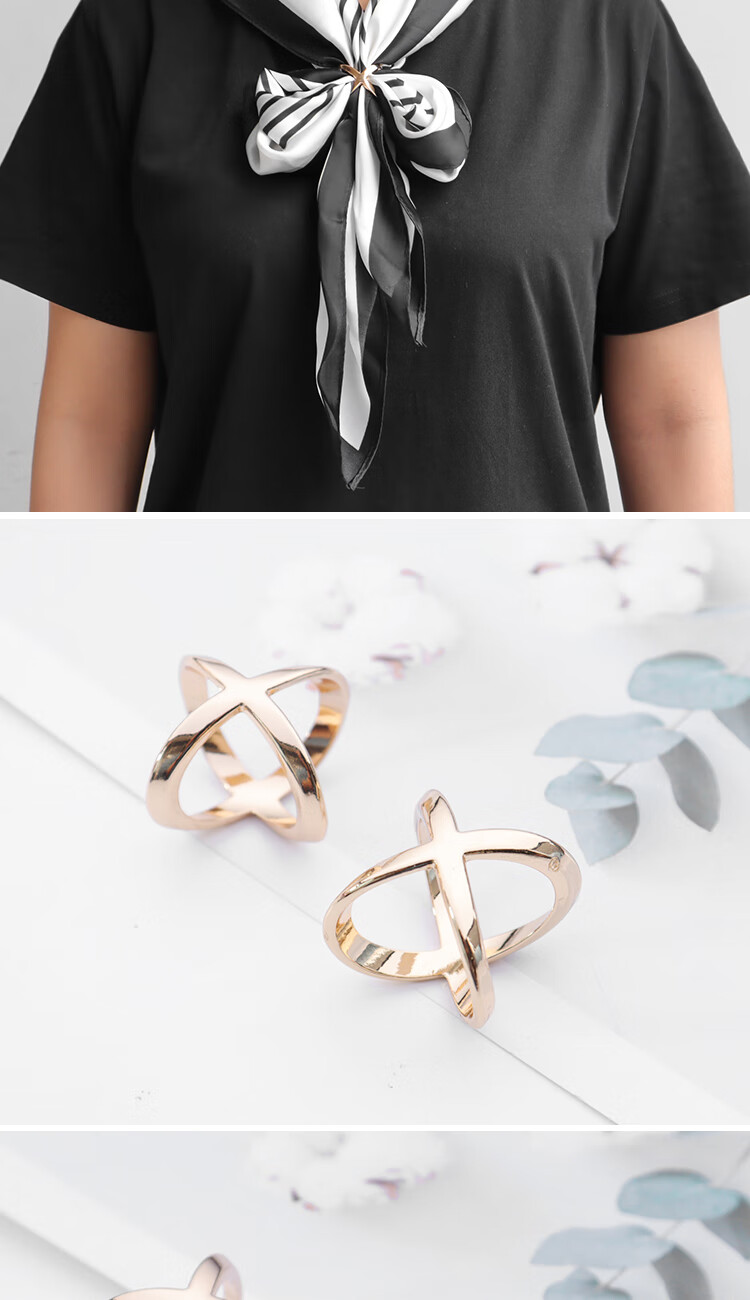 WOUG shawl corner knotted buckle simple small square scarf silk scarf buckle versatile dual-purpose three-ring silk silver 1