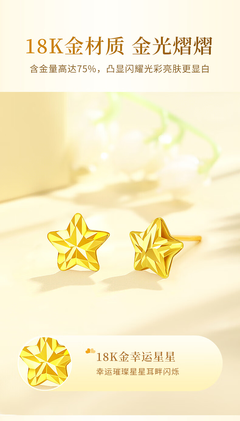 Chinese gold shining star gold earrings for women 18k five-pointed star earrings birthday gift for girlfriend and wife wedding anniversary 18k shining star earrings