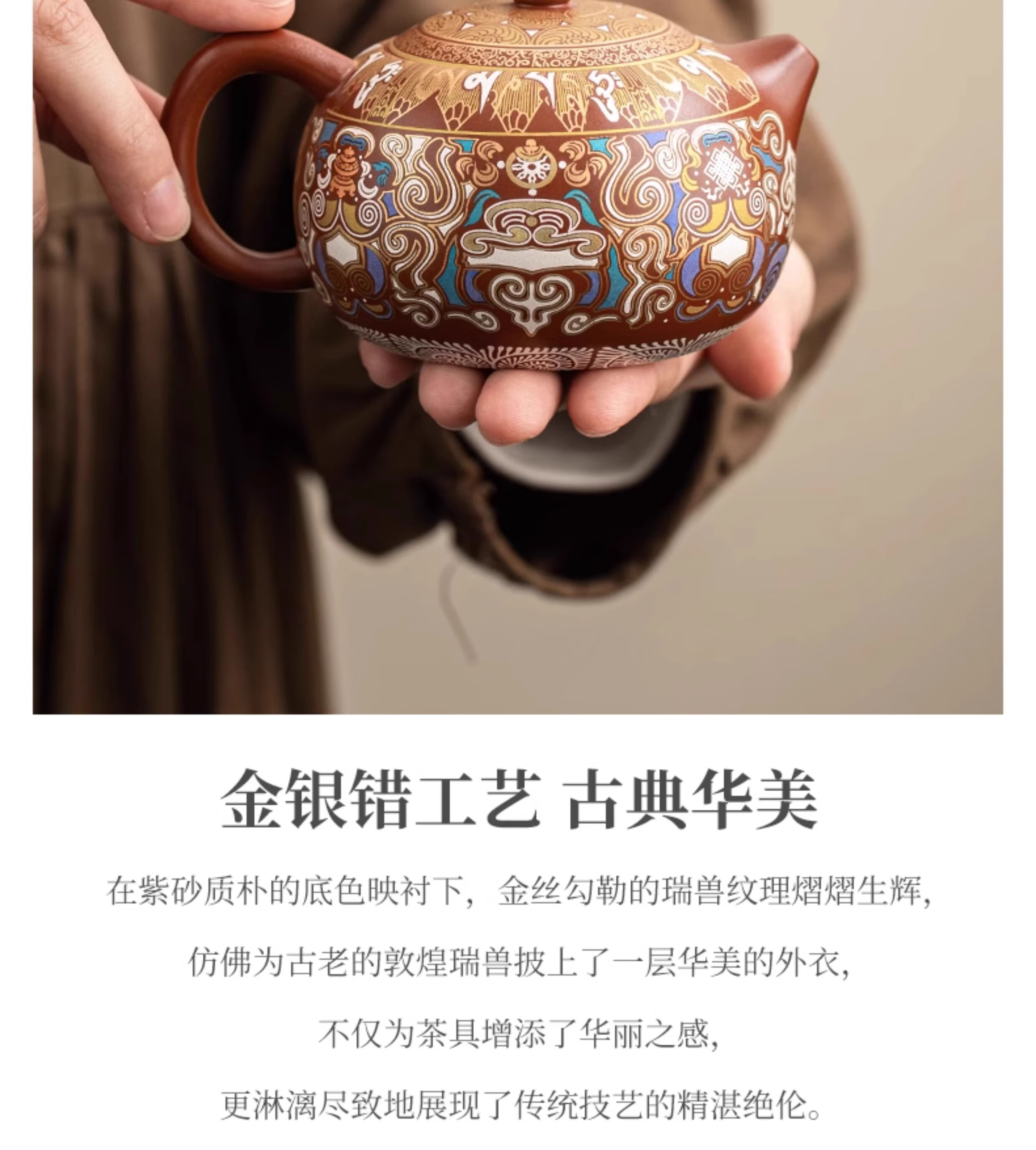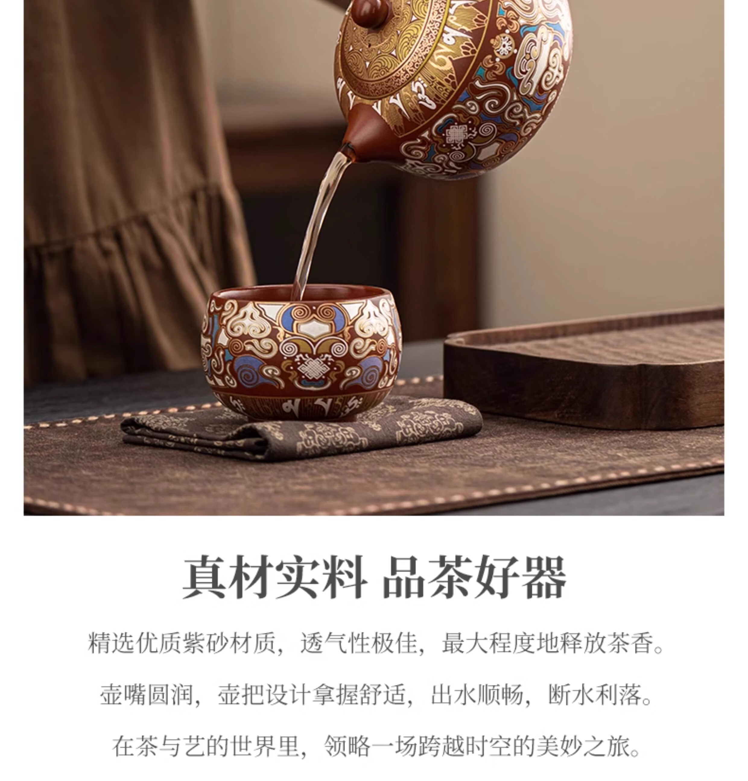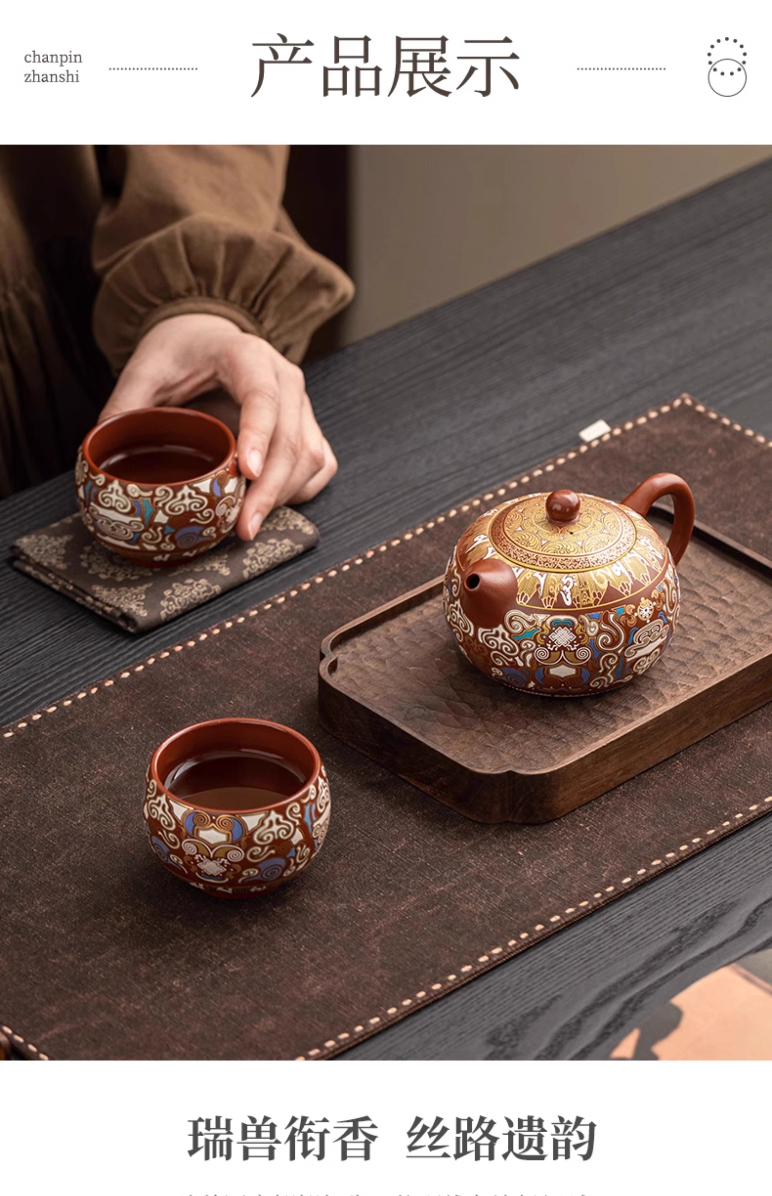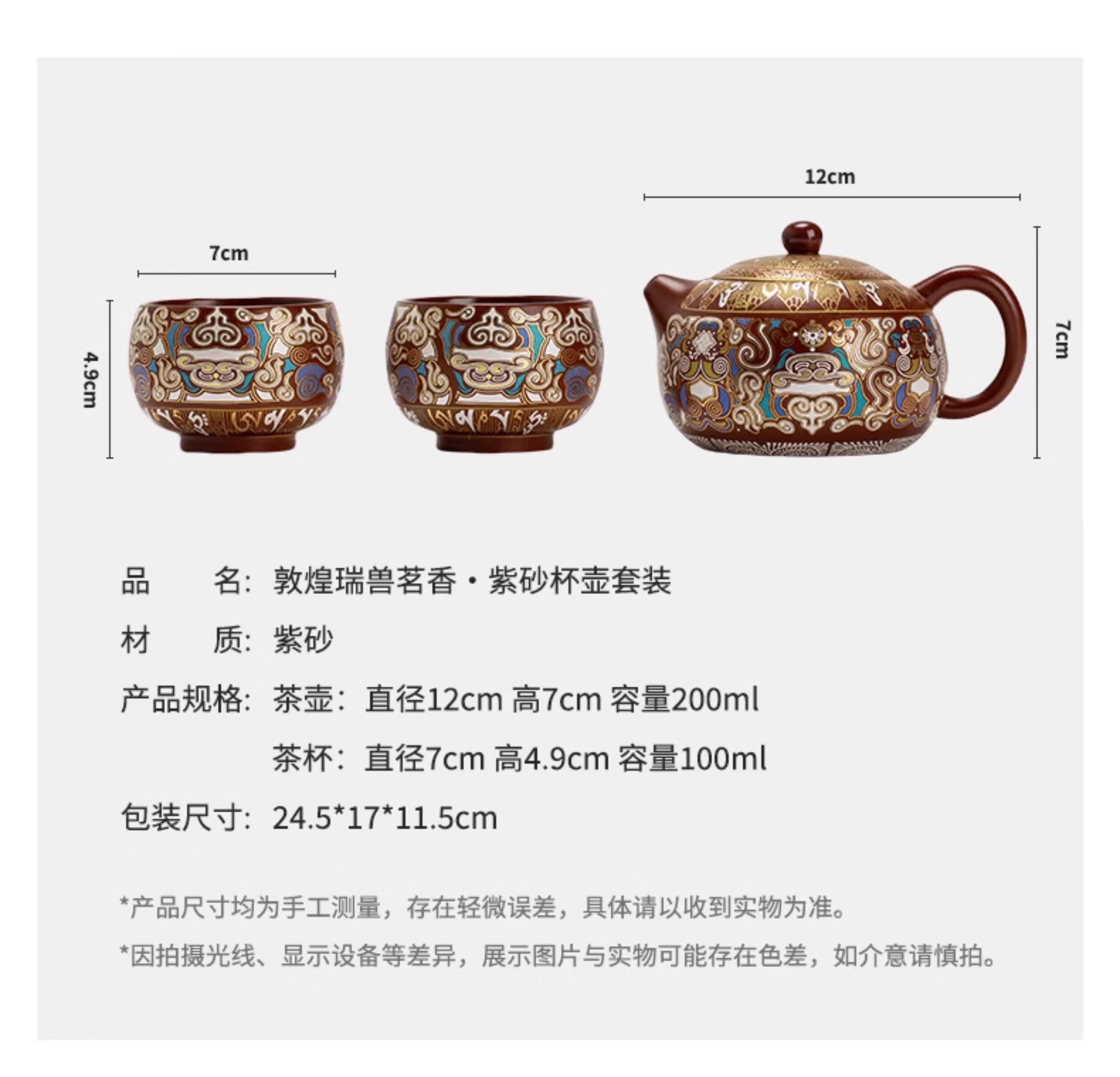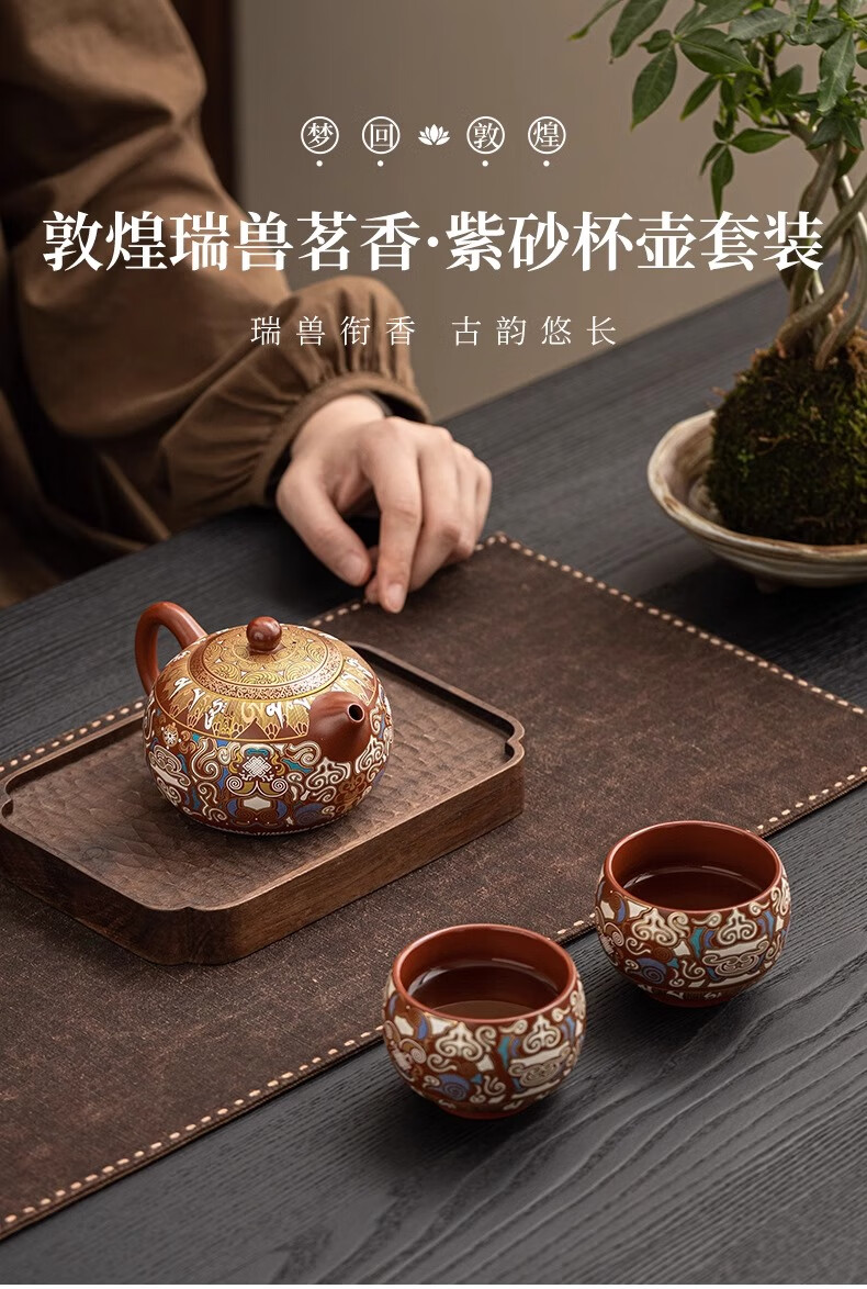 Dunhuang Institute of Fine Arts high-end purple clay teapot tea set gift box gold and silver staggered tea cups as gifts for elders and leaders men Auspicious Beast Mingxiang purple clay cup and pot set