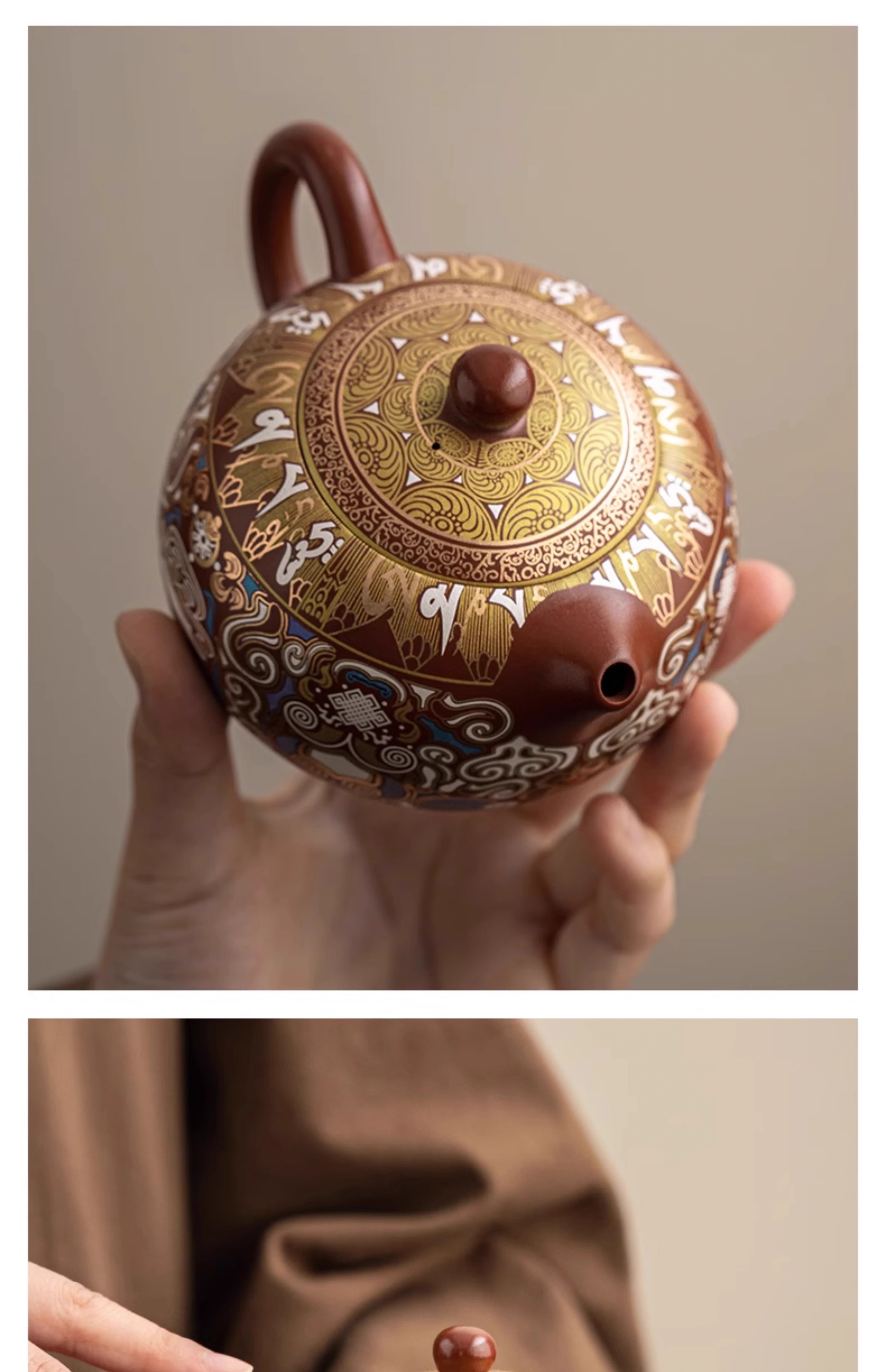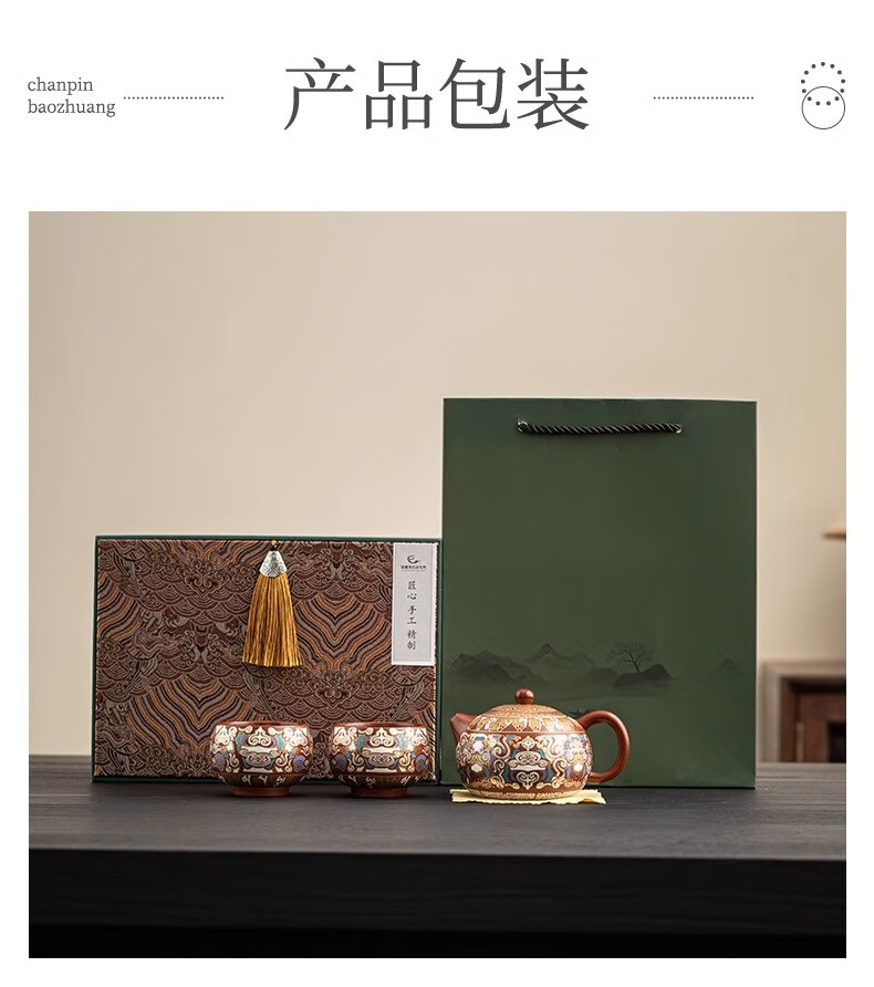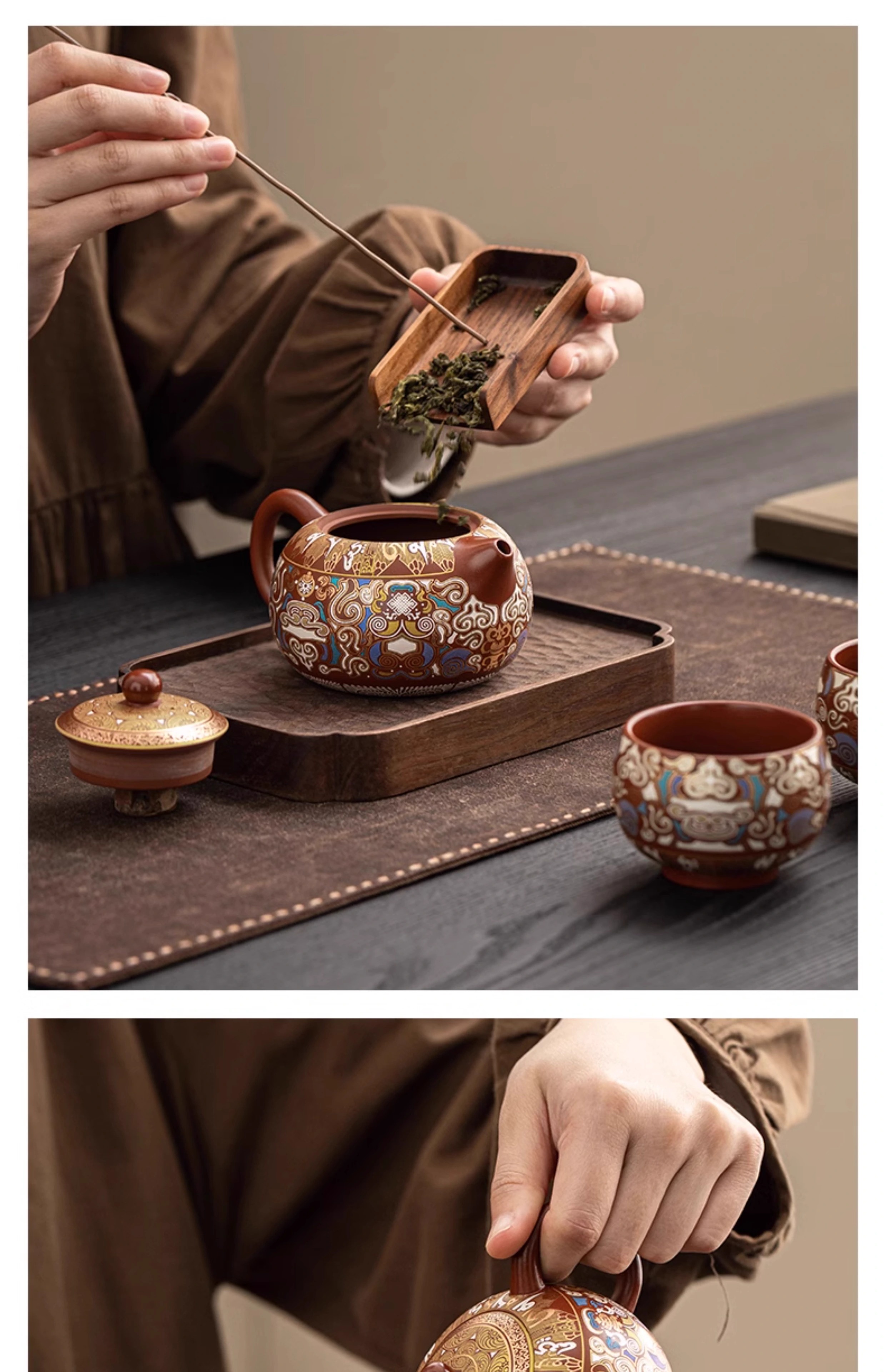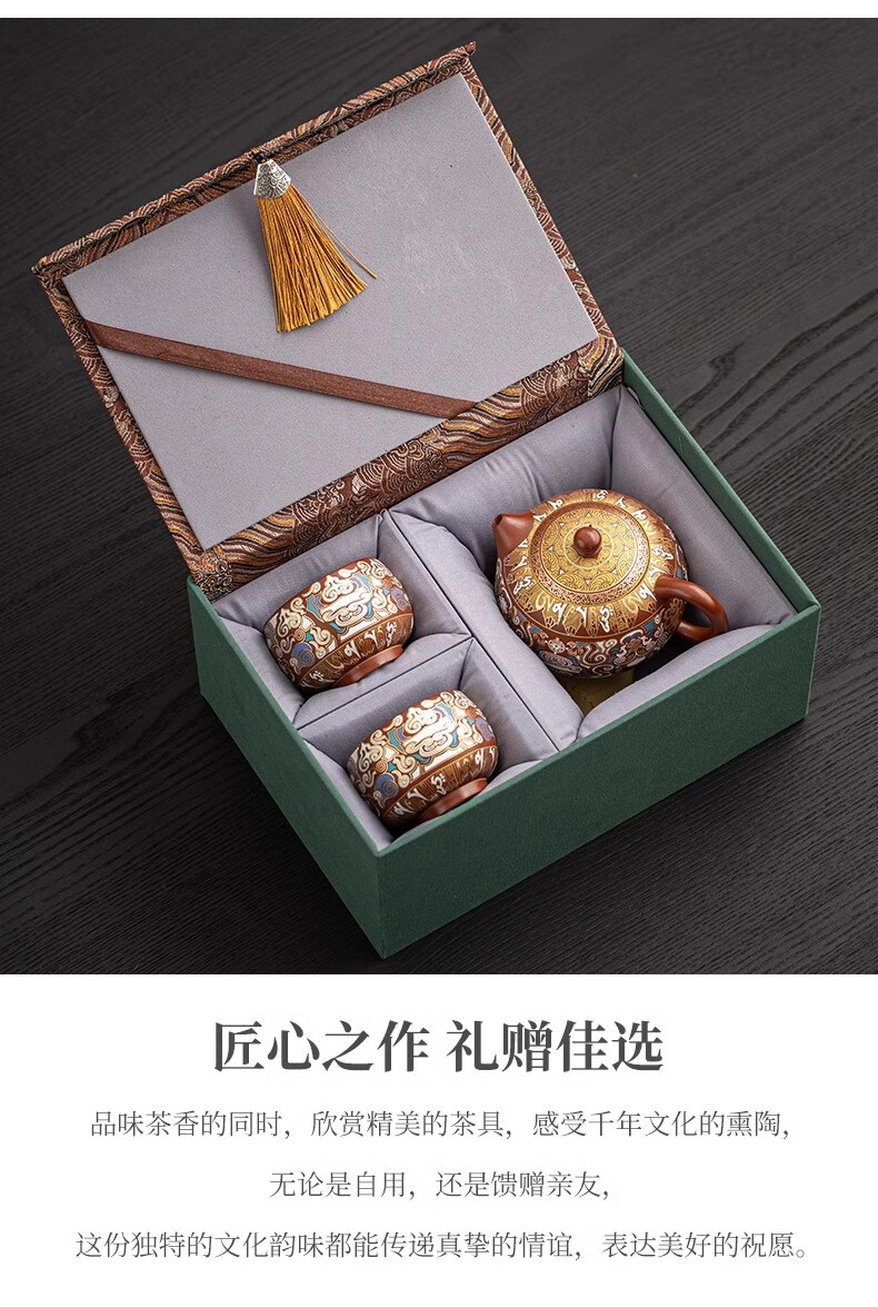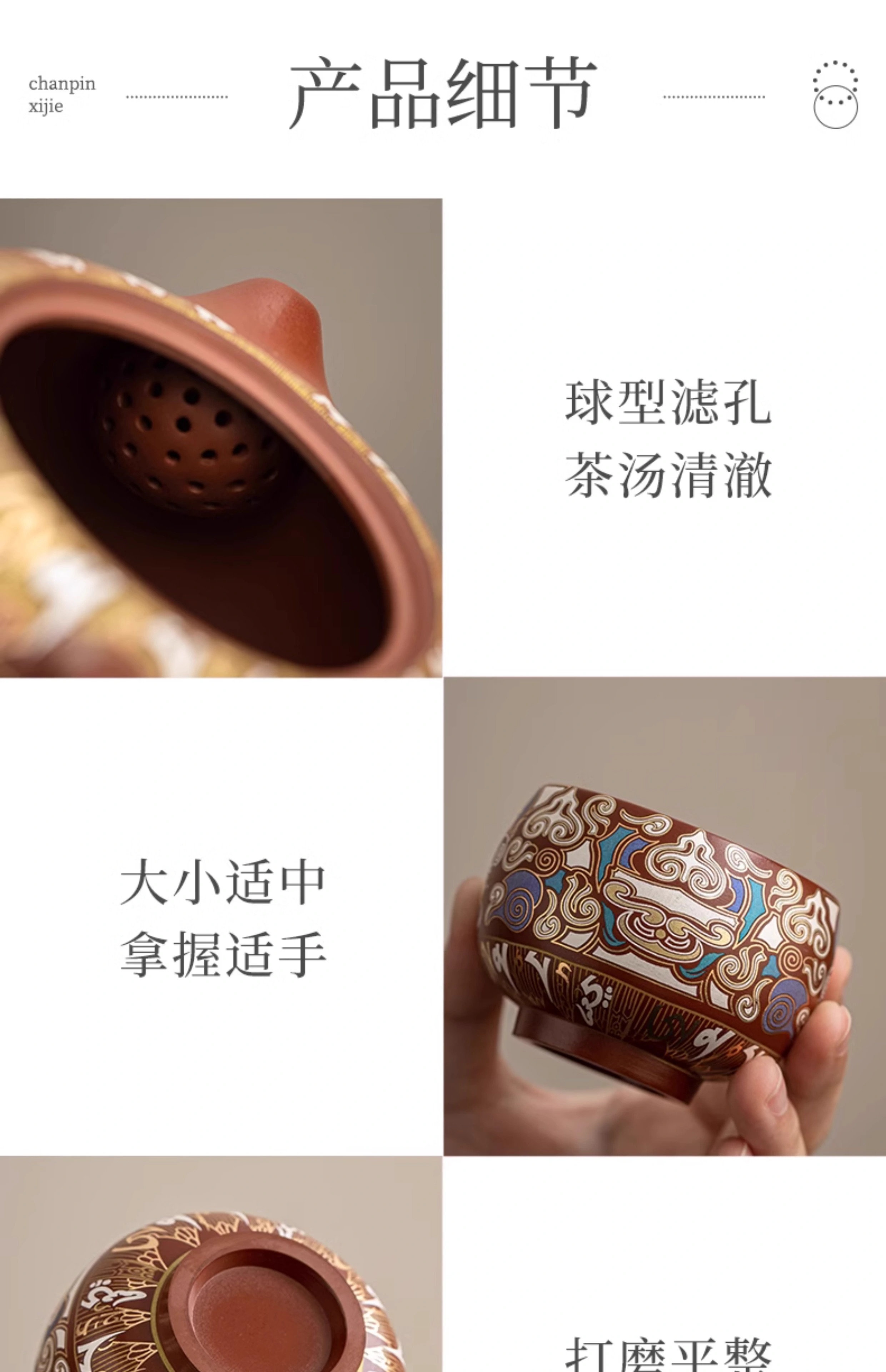 Dunhuang Institute of Fine Arts high-end purple clay teapot tea set gift box gold and silver staggered tea cups as gifts for elders and leaders men Auspicious Beast Mingxiang purple clay cup and pot set