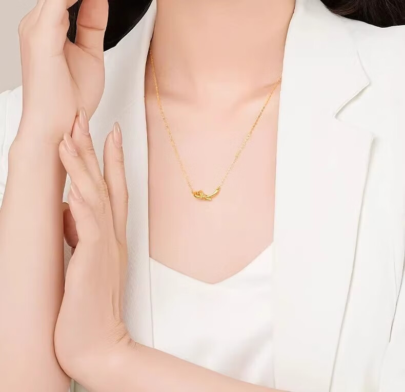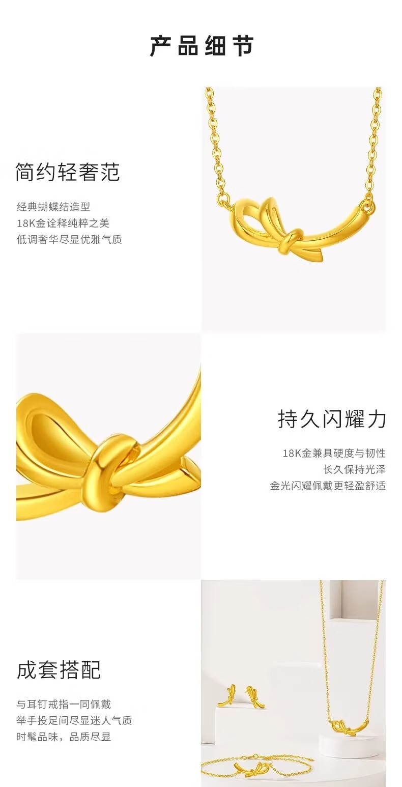 Trendy Acer to Jane 18k gold necklace for women, gold set, pendant, bow, fashionable, light and luxurious, birthday gift for girlfriend, chain length is about 45cm