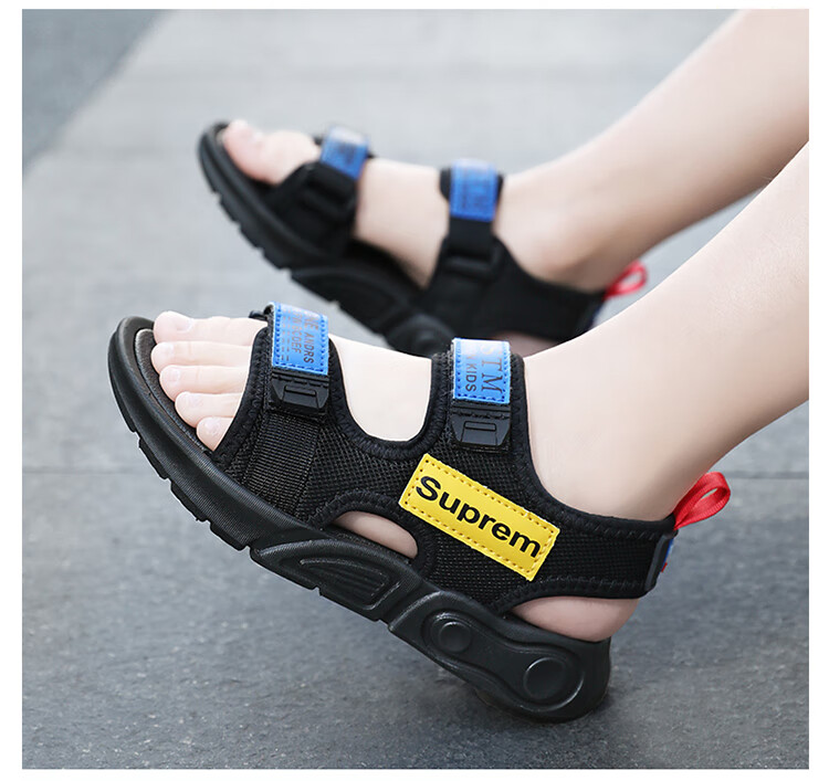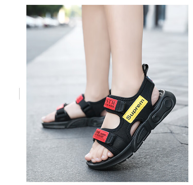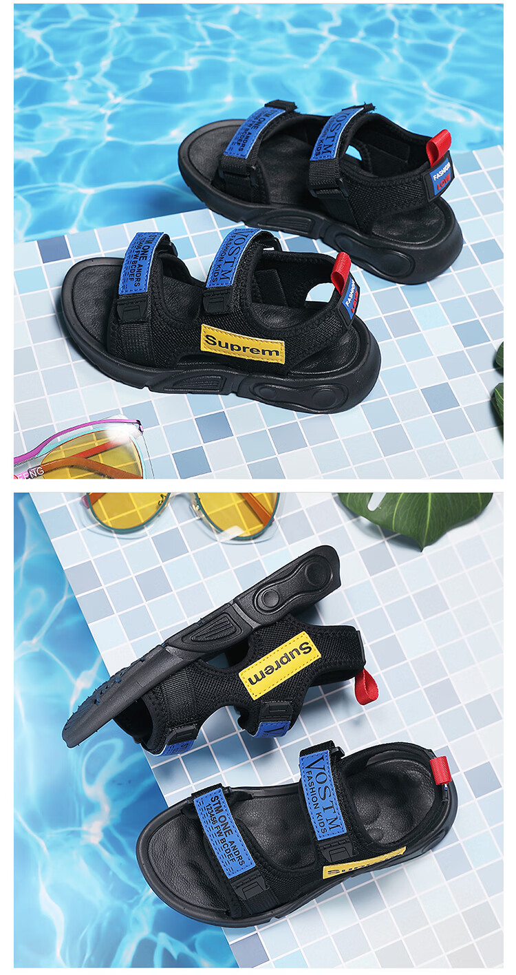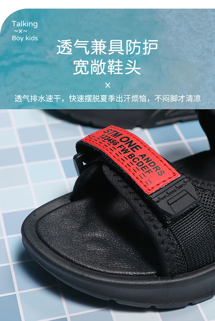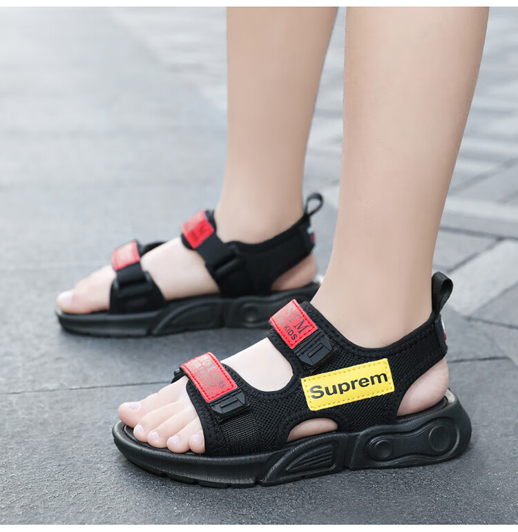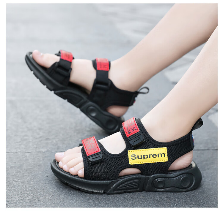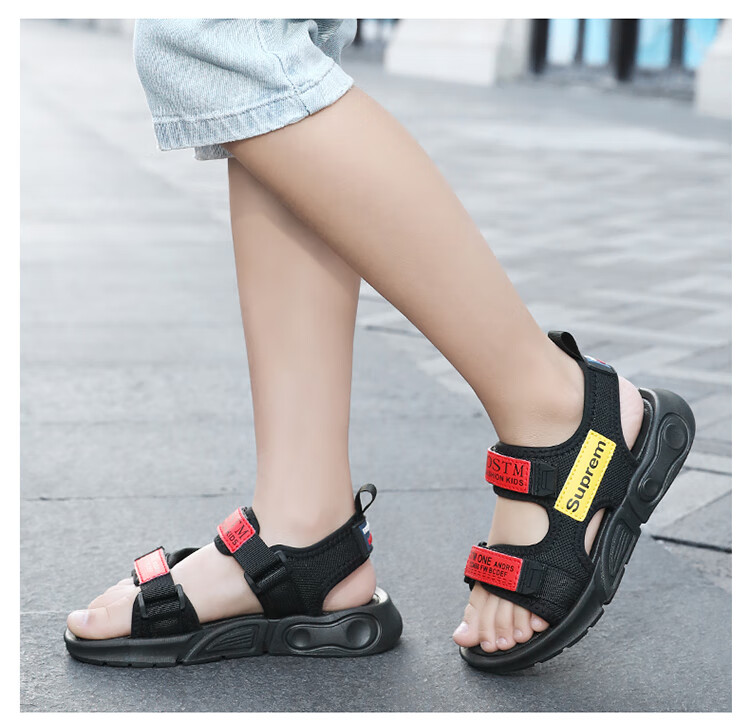 Boys Sandals Summer New Children's Sports Anti-Slip Beach Shoes Medium and Large Boys Soft Bottom Sandals Summer Style TX155 Black Red 34