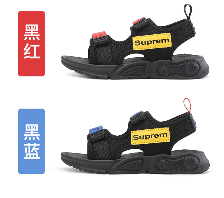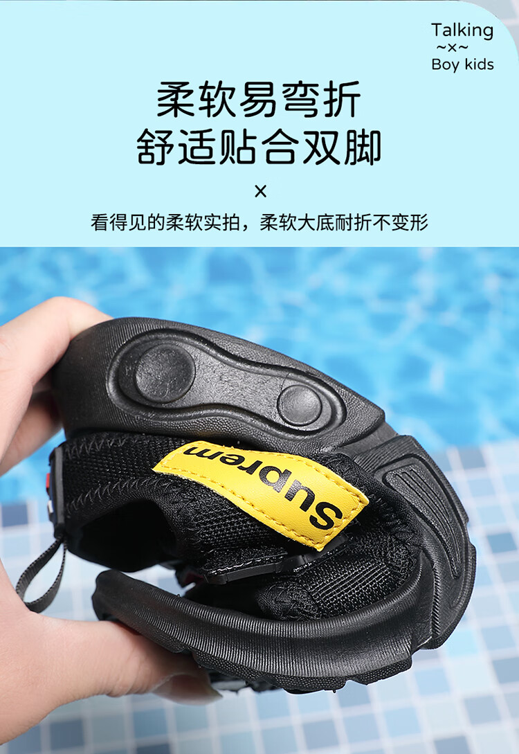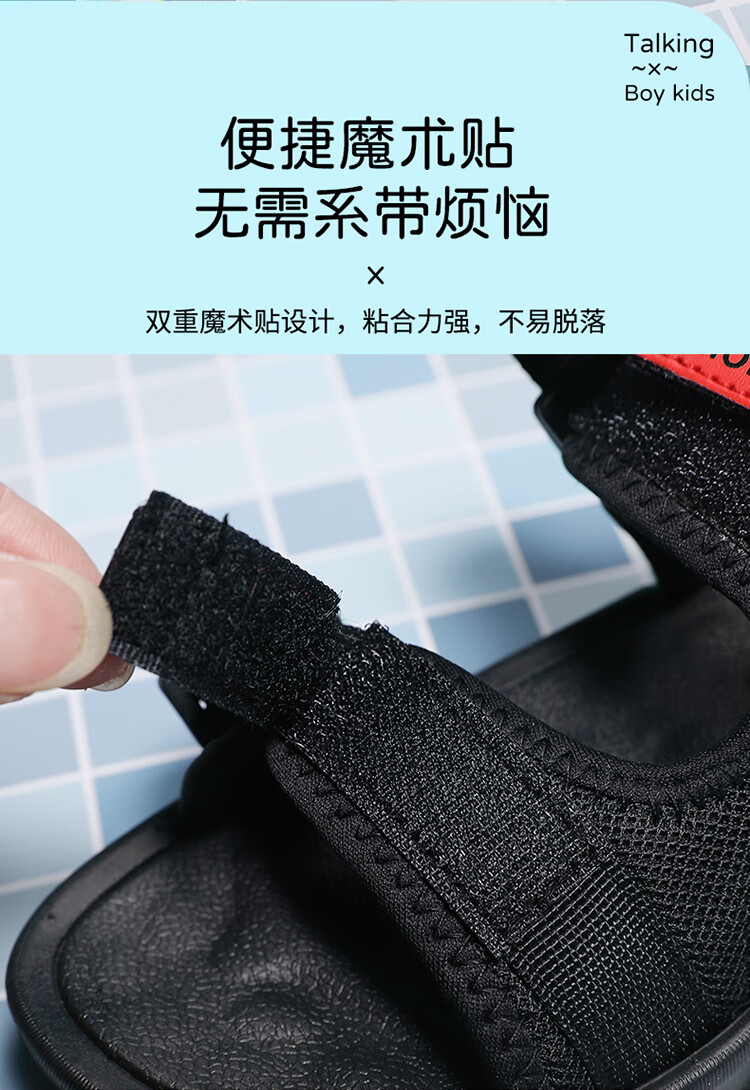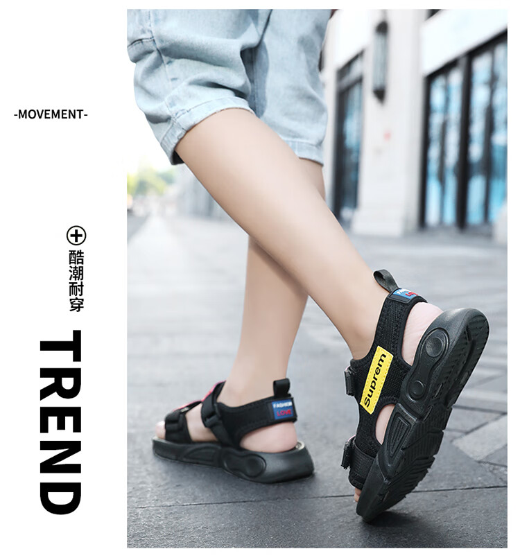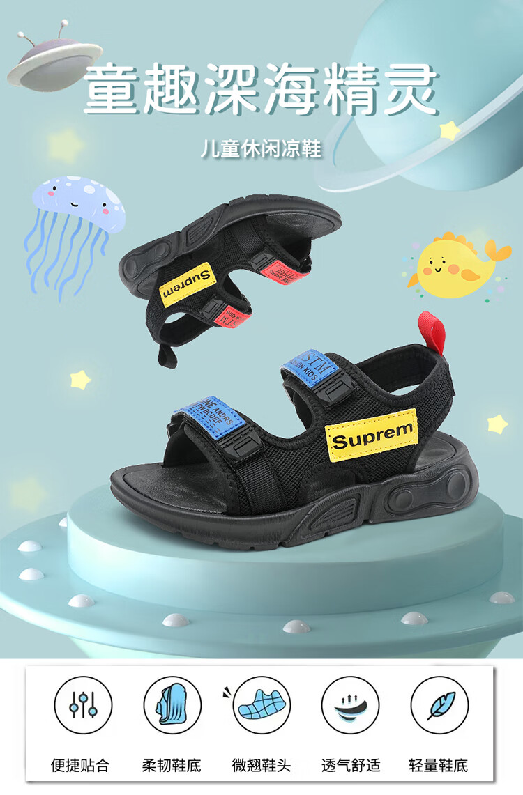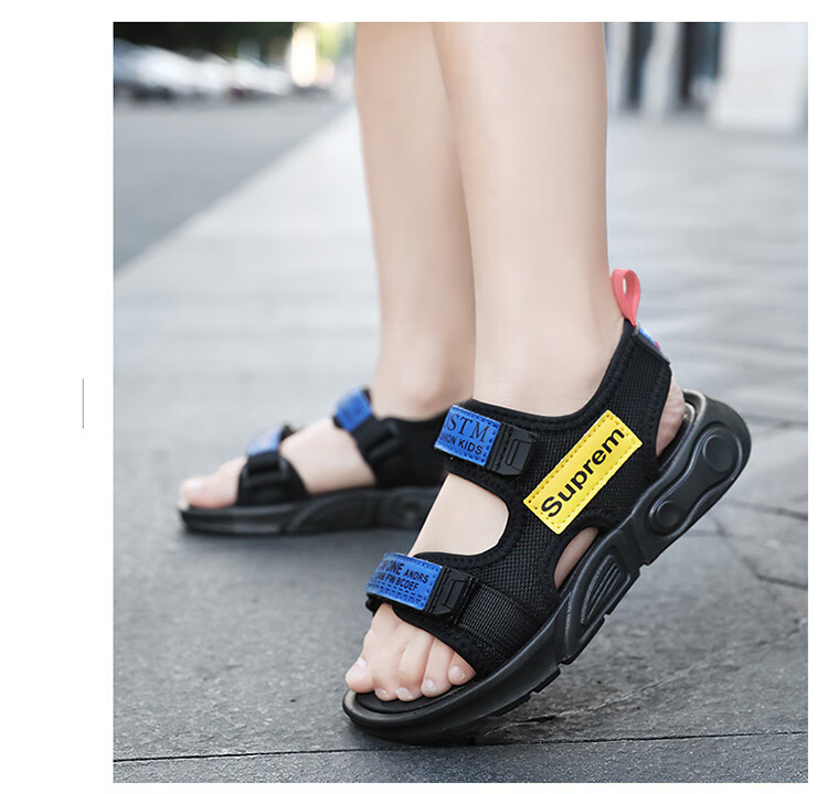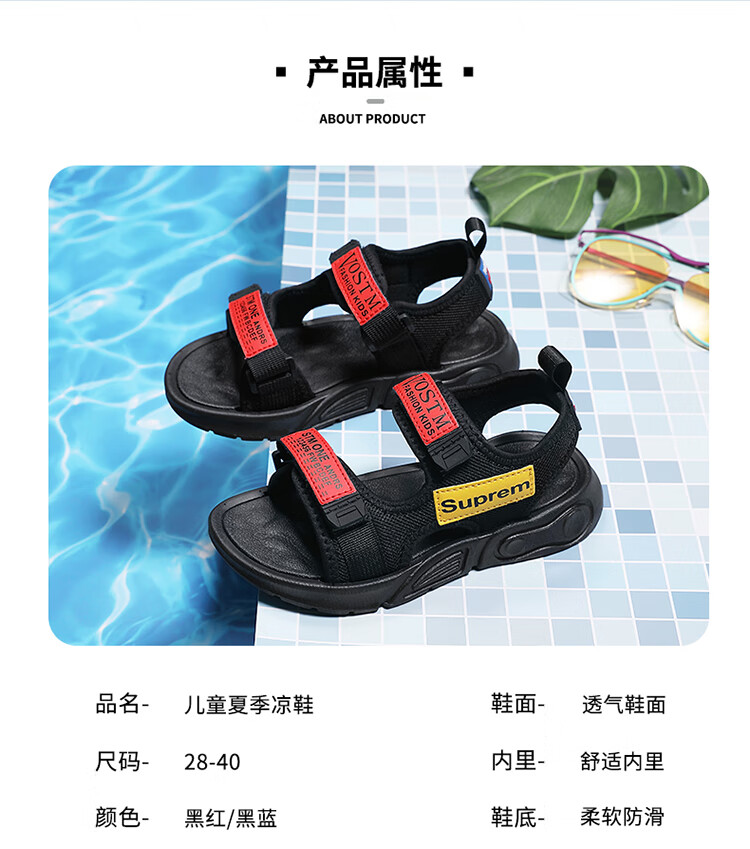 Boys Sandals Summer New Children's Sports Anti-Slip Beach Shoes Medium and Large Boys Soft Bottom Sandals Summer Style TX155 Black Red 34