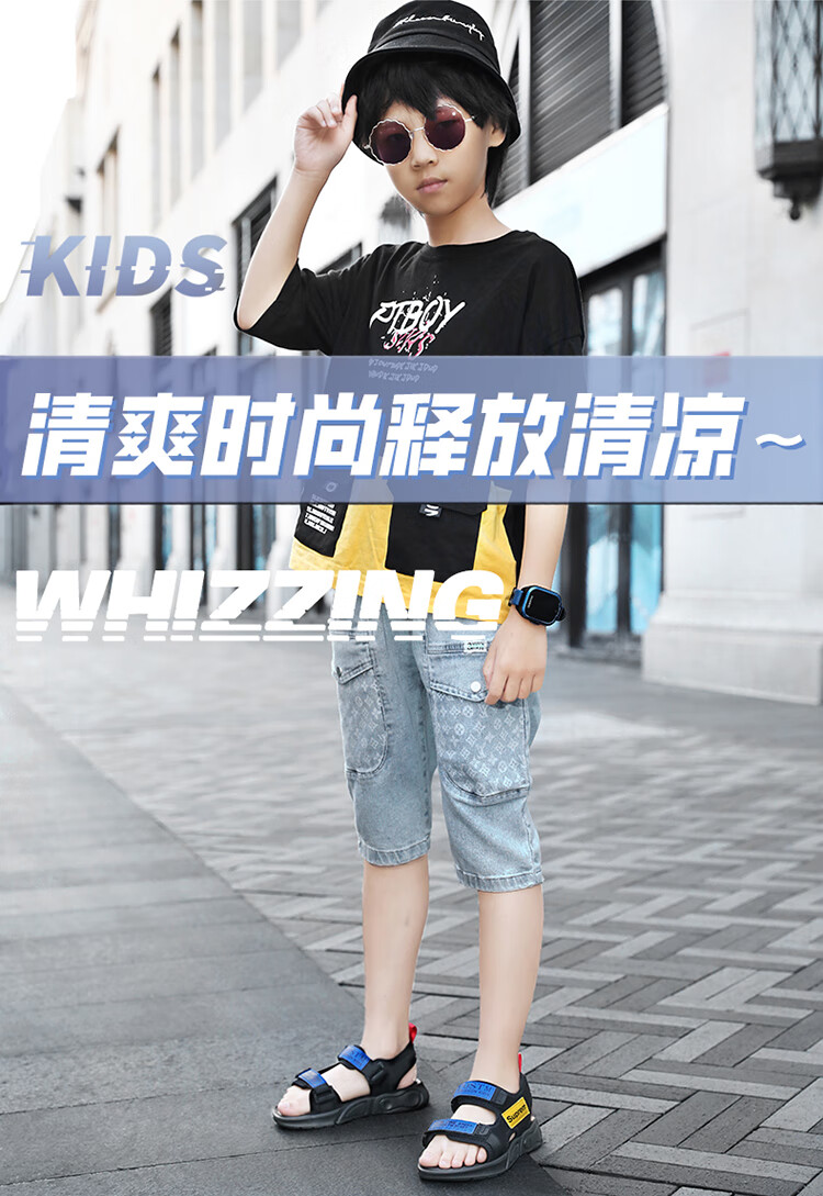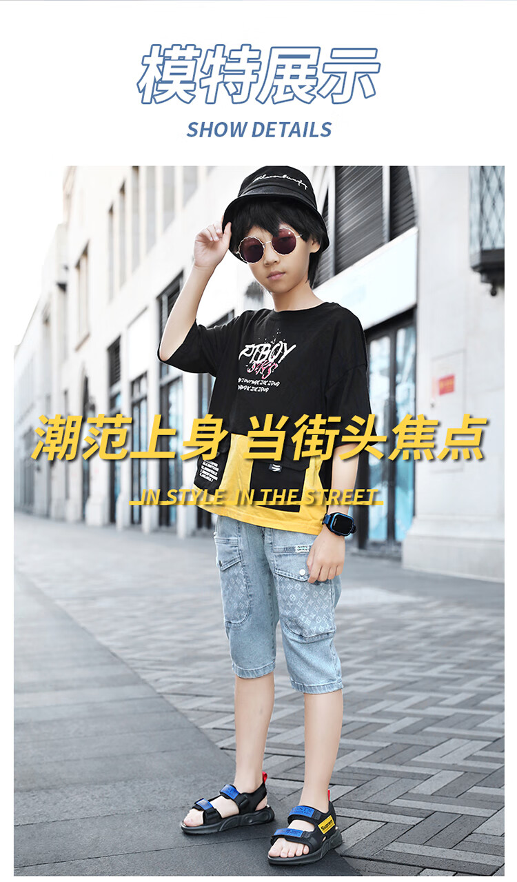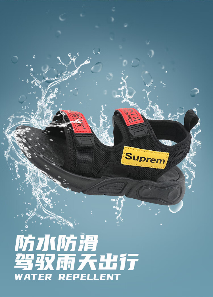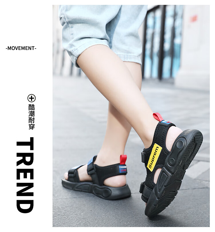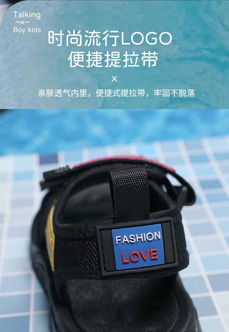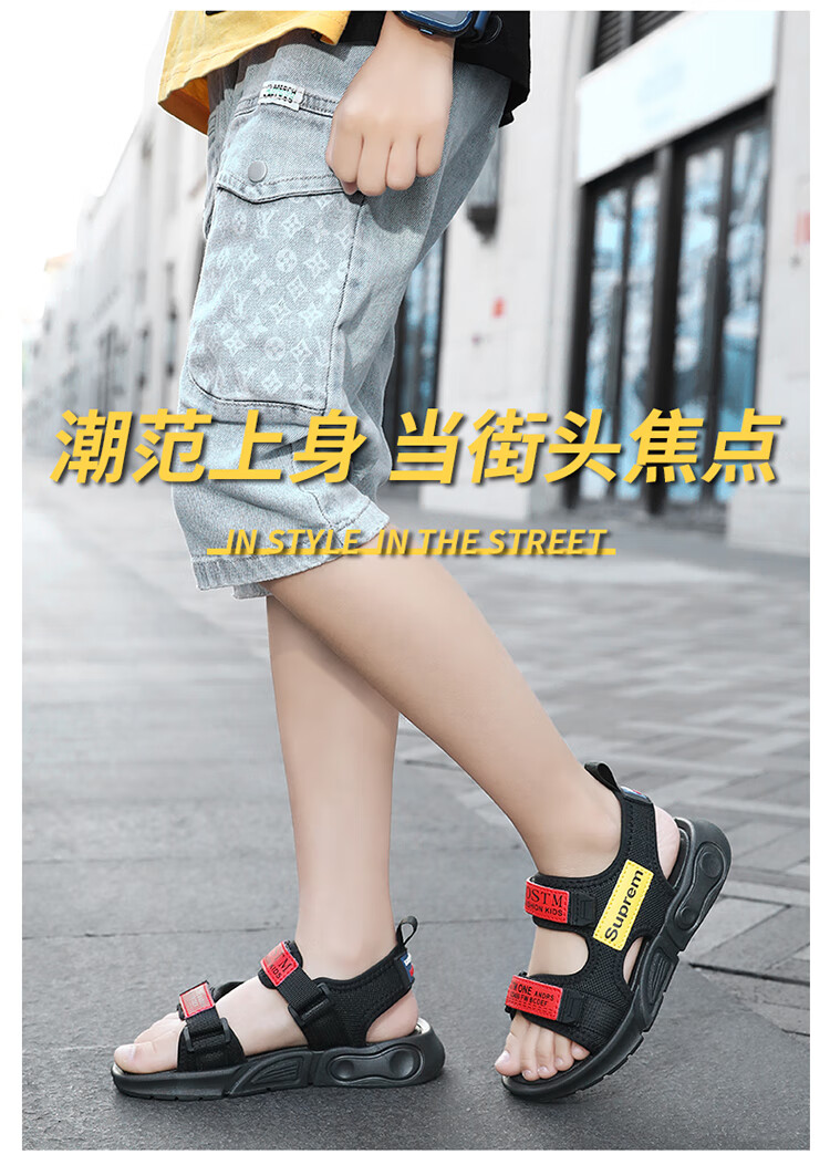 Boys Sandals Summer New Children's Sports Anti-Slip Beach Shoes Medium and Large Boys Soft Bottom Sandals Summer Style TX155 Black Red 34