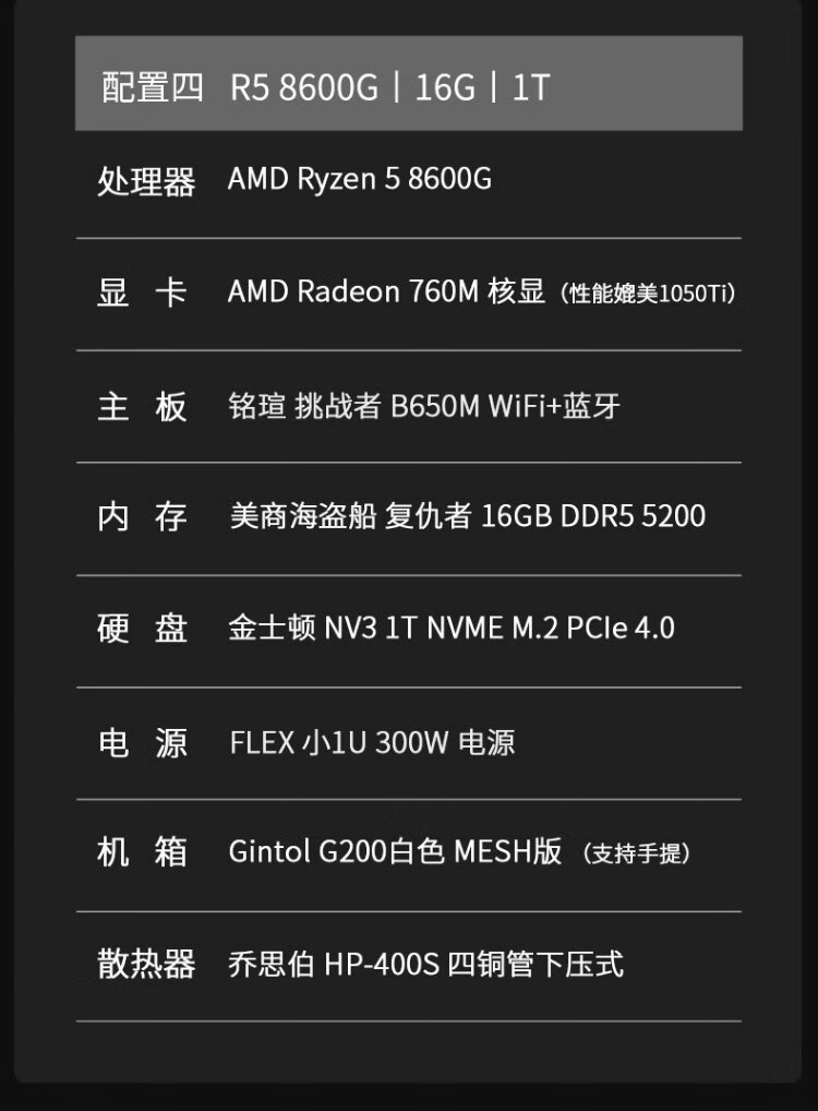 AMD Ryzen R5 5600GT/5700G/8600G/R7 8700Gmini host ITX mini machine APU assembly computer desktop small computer host remote boot AIPC configuration three丨R7 5700G/16G/512G