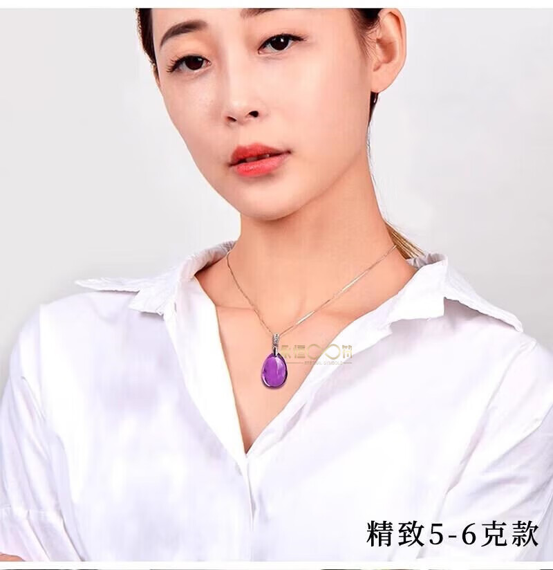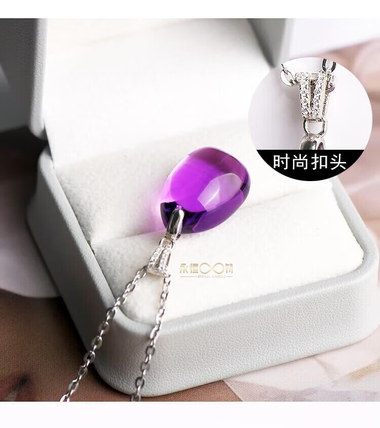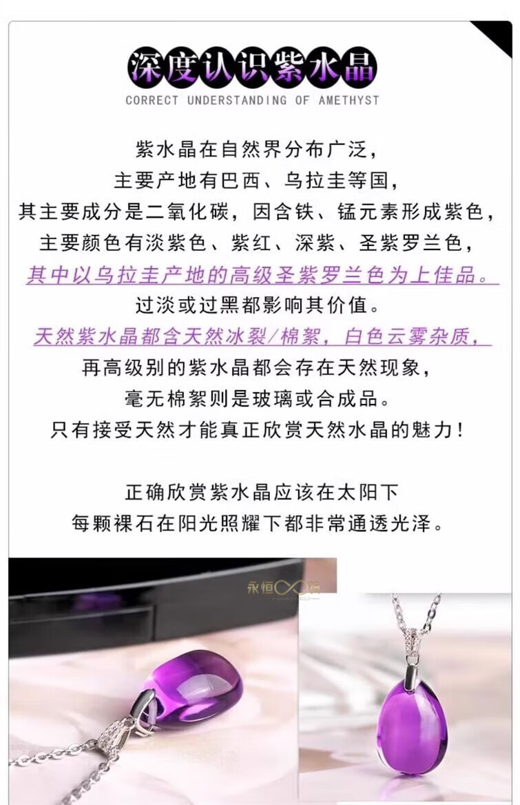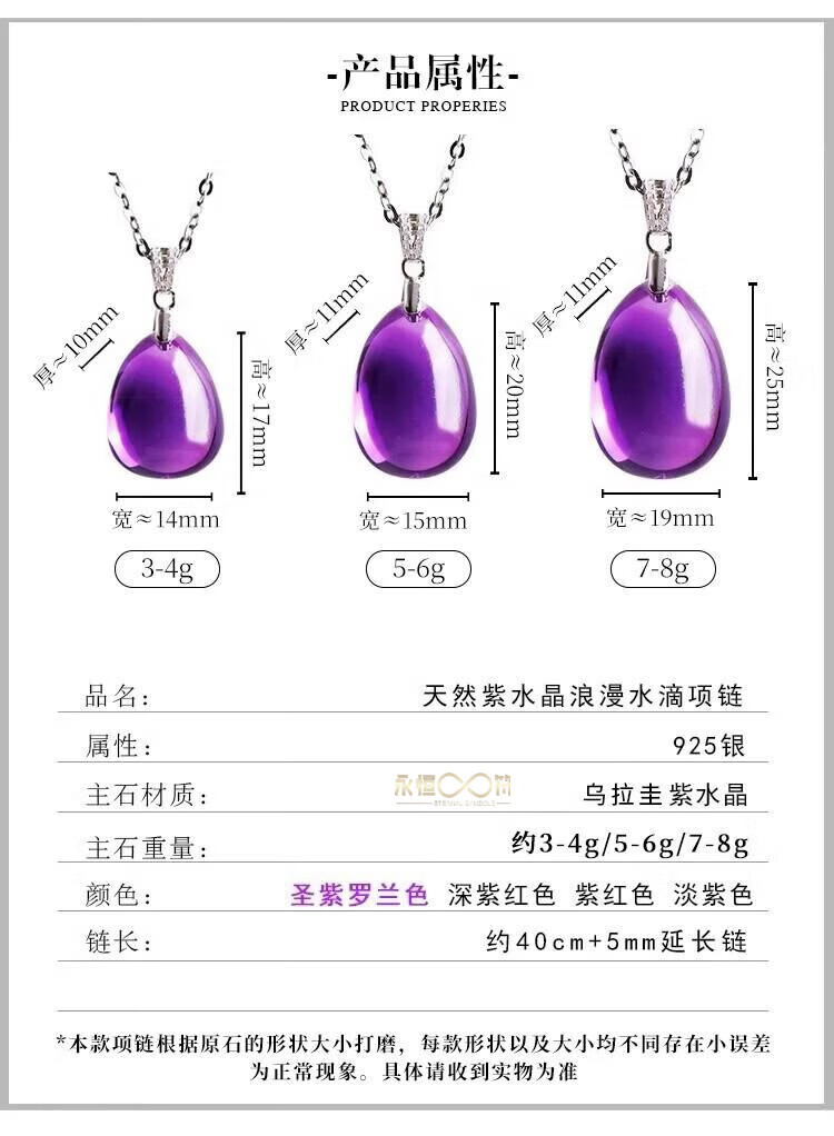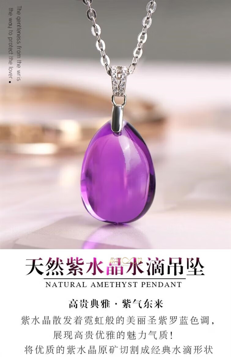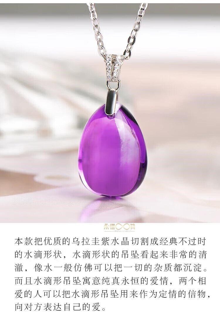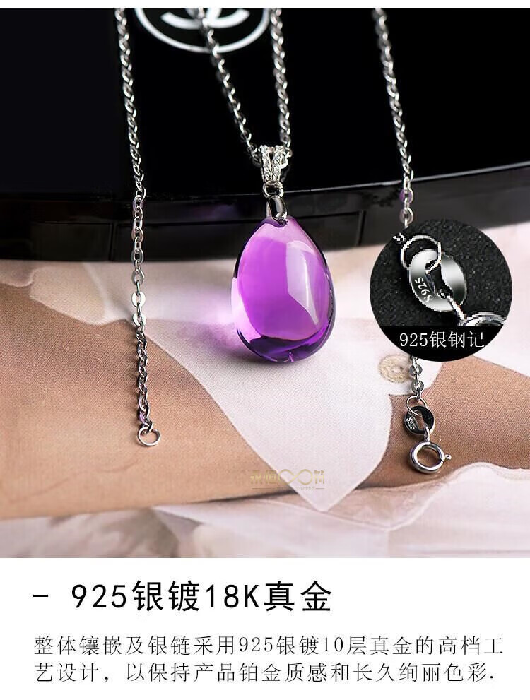 Eternal symbol collectible natural crystal pendant Uruguayan amethyst necklace water drop ice species nine purple fire Valentine's Day gift collectible amethyst-925 silver buckle 1 carat pendant about 5-6 grams