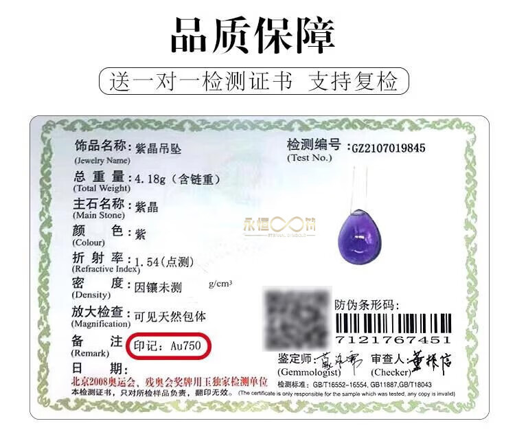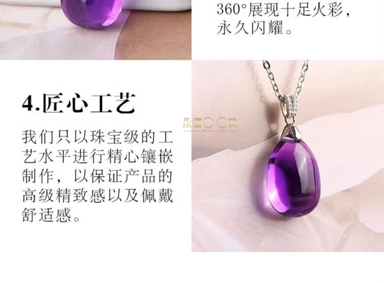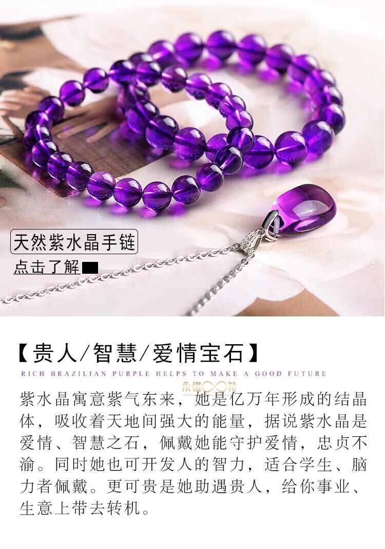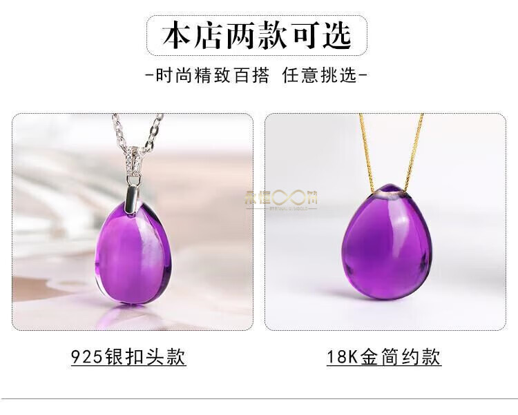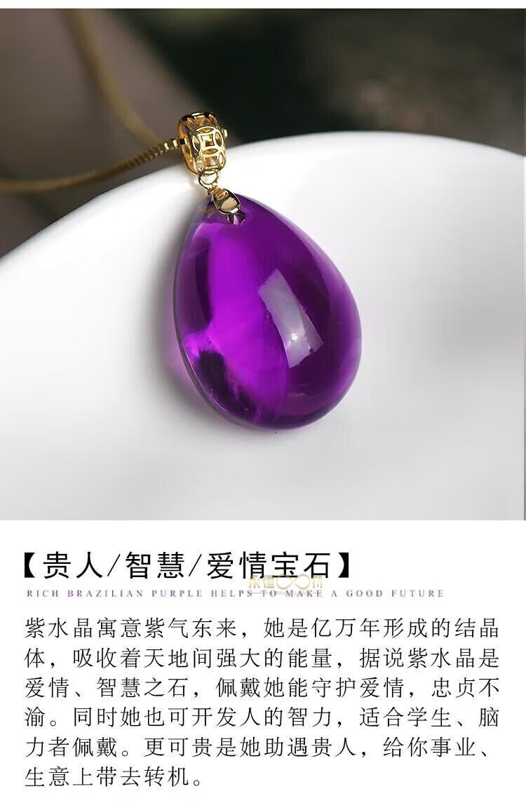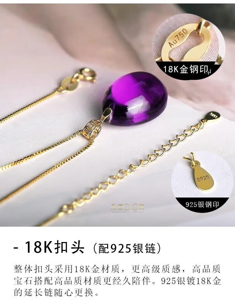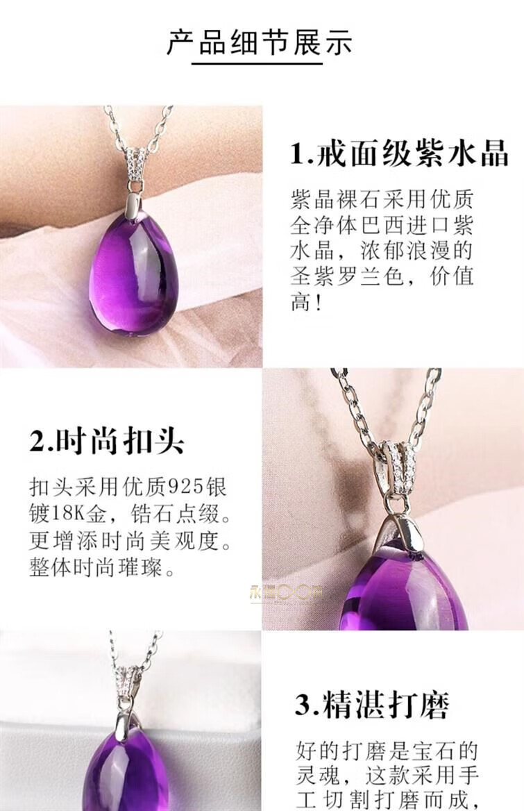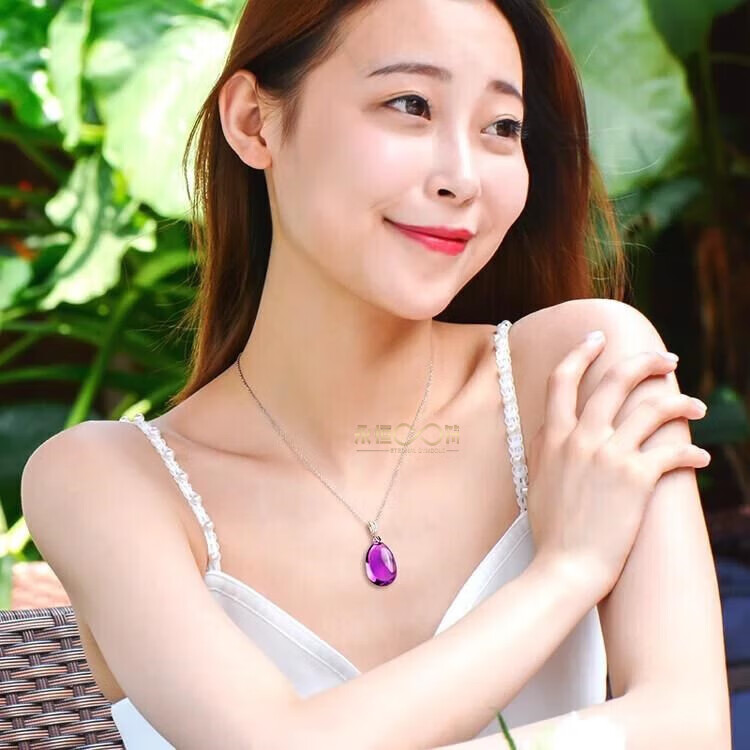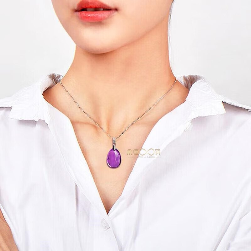 Eternal symbol collectible natural crystal pendant Uruguayan amethyst necklace water drop ice species nine purple fire Valentine's Day gift collectible amethyst-925 silver buckle 1 carat pendant about 5-6 grams