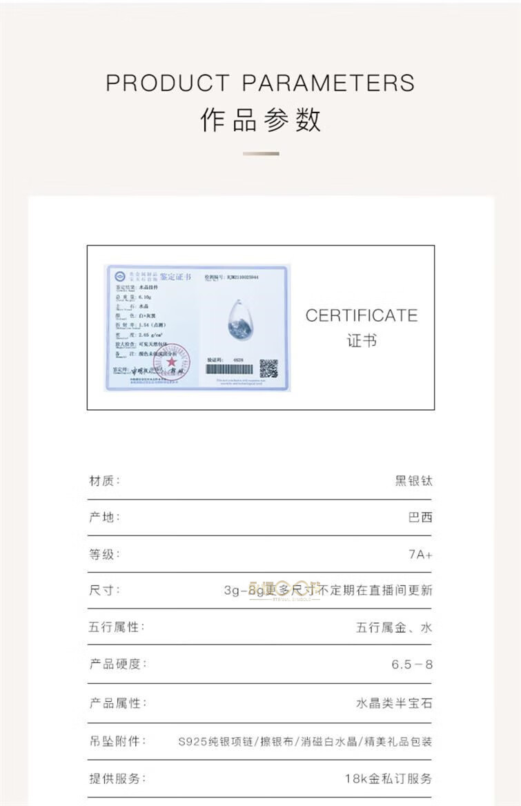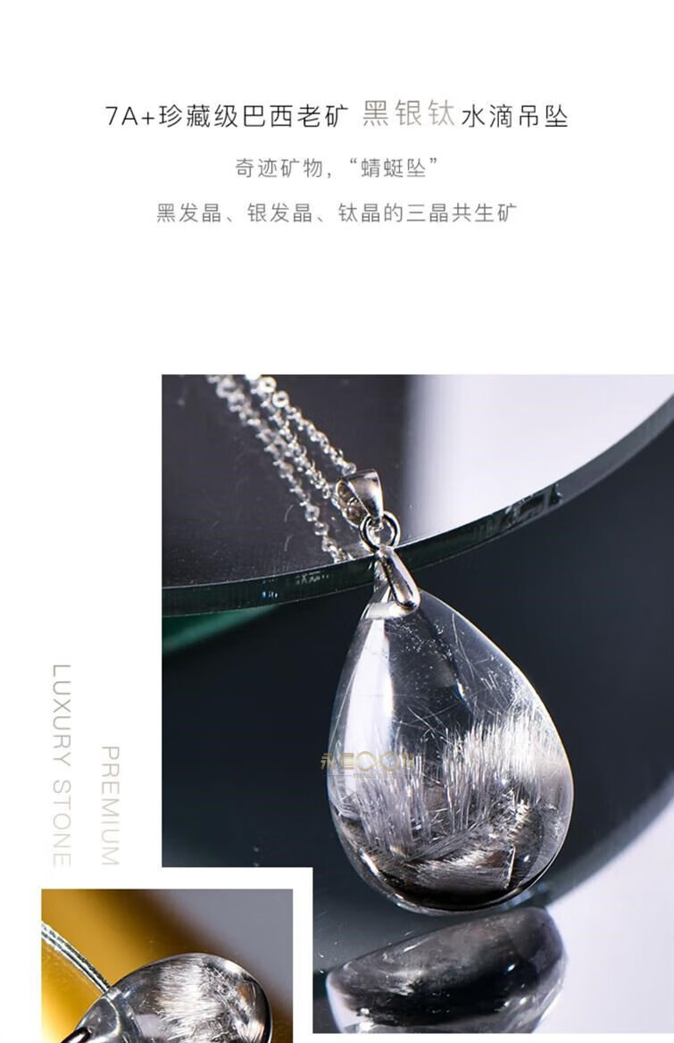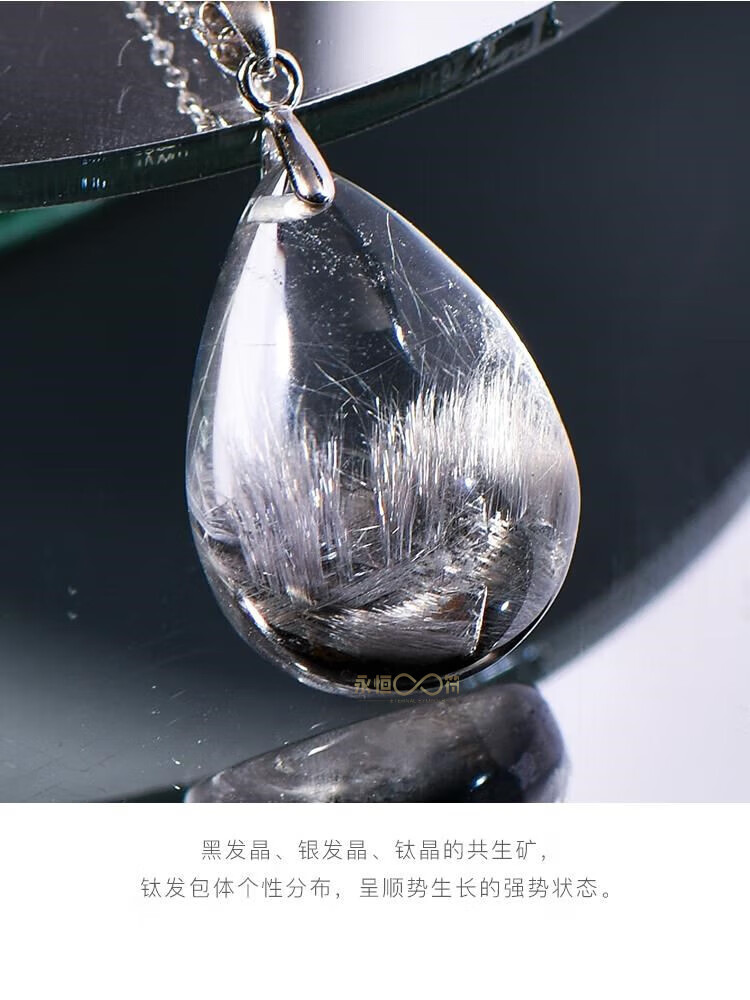 Eternal Symbol Collection Grade Light Luxury Crystal Brazilian Old Mine Black Silver Titanium Crystal Hair Pendant Necklace as a Valentine’s Day Gift for Your Girlfriend Collection Grade Black Silver Titanium Crystal About 4 Grams