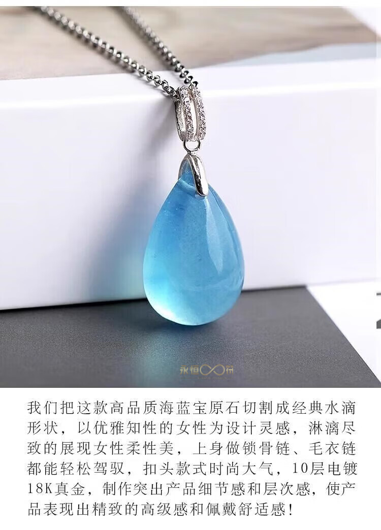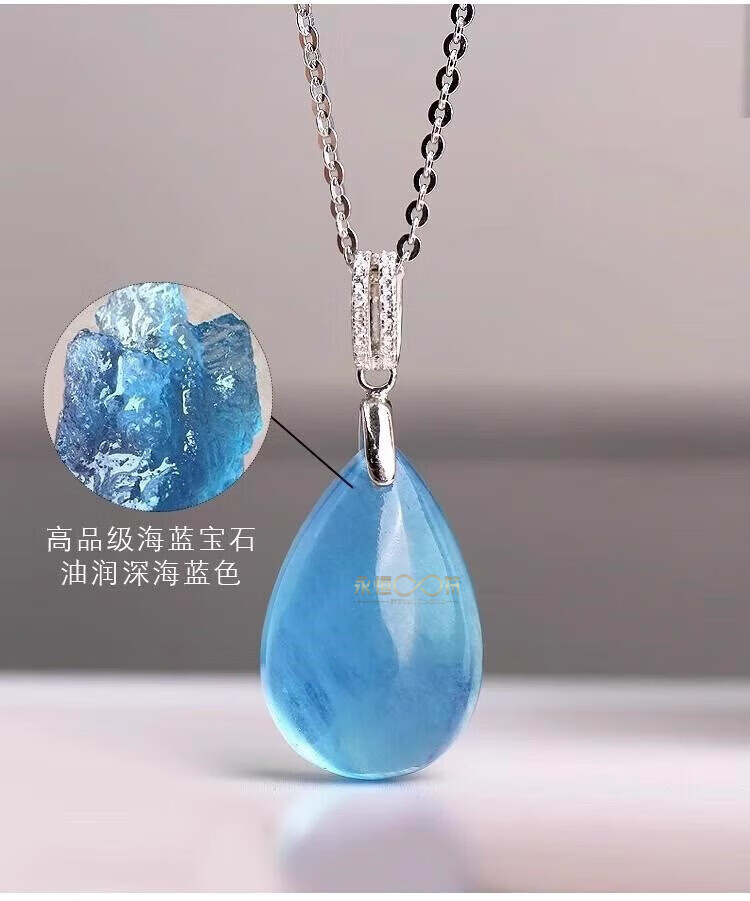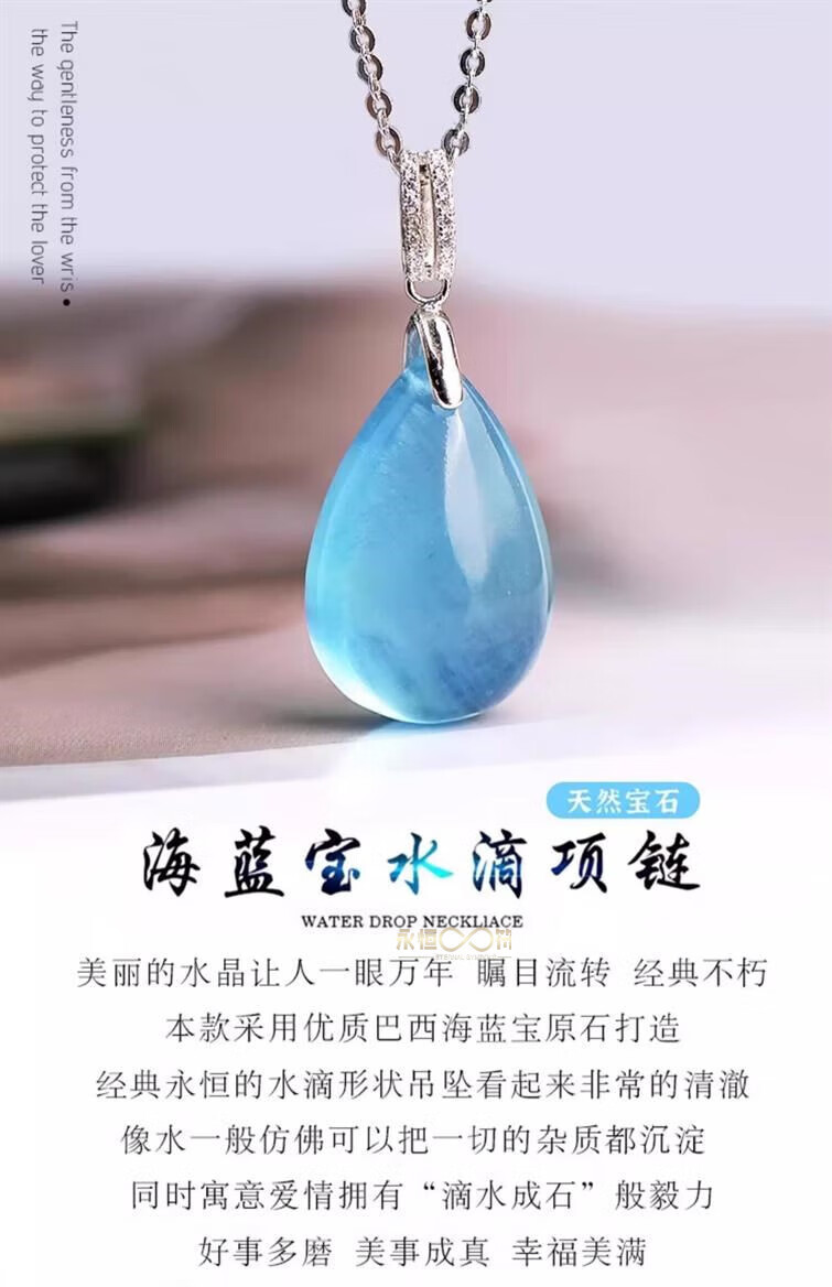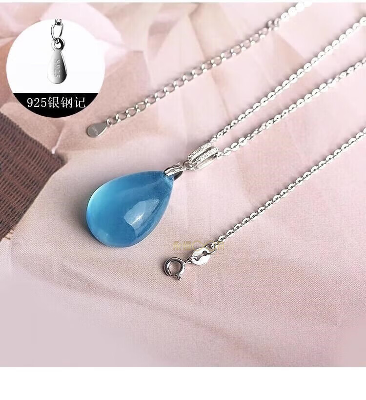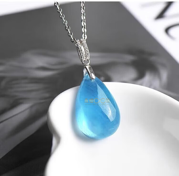 Eternal symbol collectible natural crystal pendant ice aquamarine water drop necklace pendant for your girlfriend's Valentine's Day gift ice aquamarine 3-4 grams