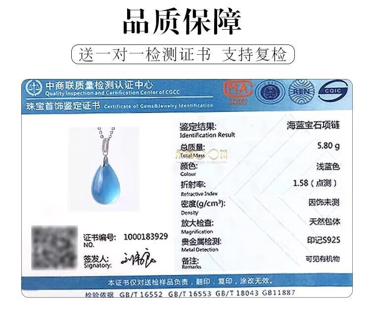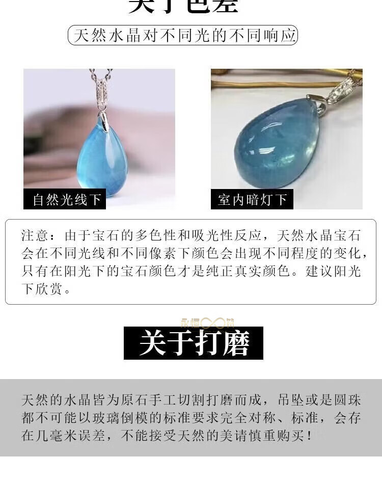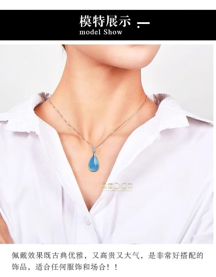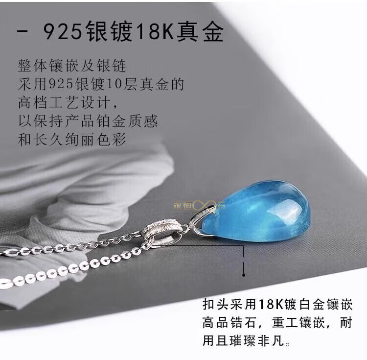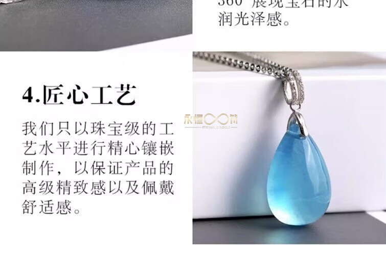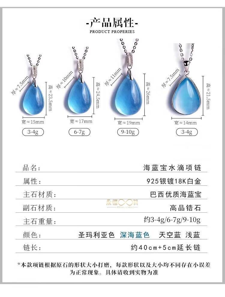 Eternal symbol collectible natural crystal pendant ice aquamarine water drop necklace pendant for your girlfriend's Valentine's Day gift ice aquamarine 3-4 grams