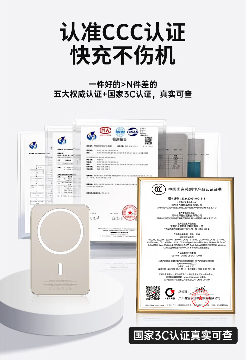 MagSafe National 3C Certification Apple Magnetic Power Bank Mobile Power 35W Super Fast Charging Ultra-Thin Mini Portable Wireless Adapter Huawei Xiaomi Android 10000M Titanium Gold Universal for all mobile phones CCC National Certification (can be used on airplanes and high-speed rail)