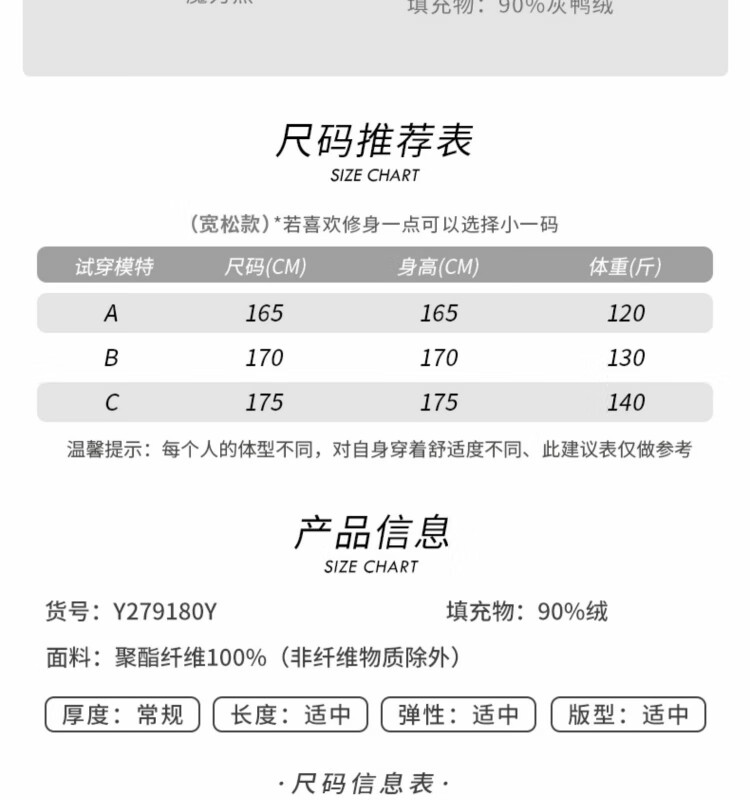 China (cm) 165 / 88-90 170 / 96-98 175 / 108-110 180 / 118-122 185 / 126-130