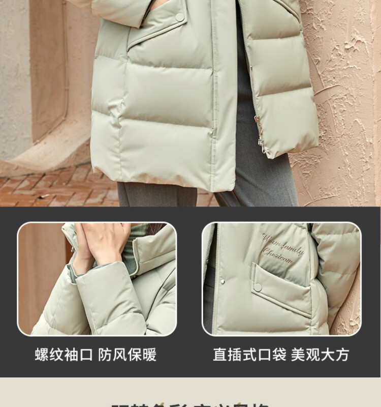 Qianreggang осенне-зимний пуховик с капюшоном, женская куртка средней длины, однотонная, универсальная, повседневная, модная, утолщенная, теплая и холодостойкая куртка, классическая красная S (160)