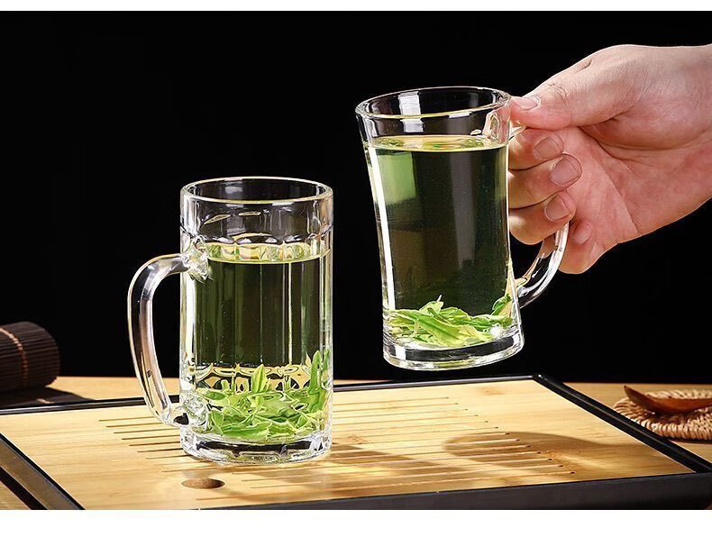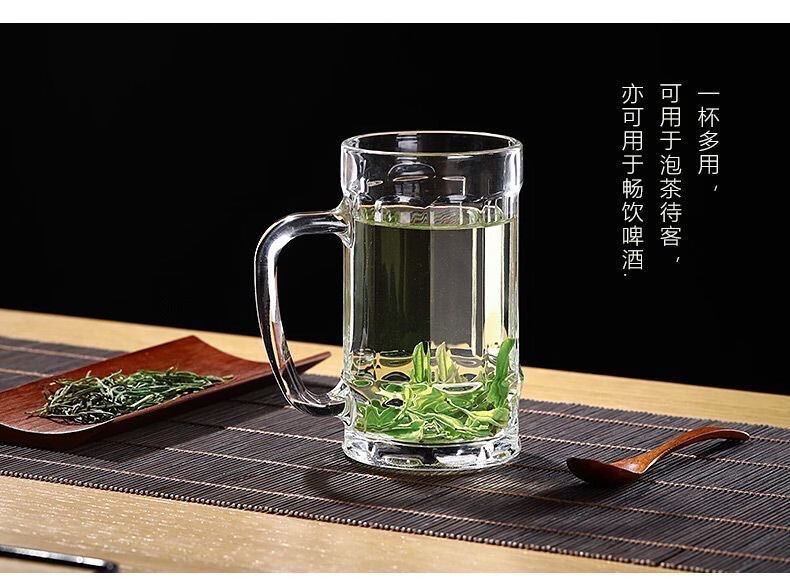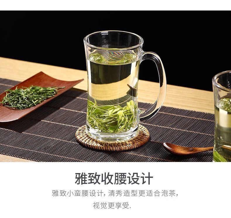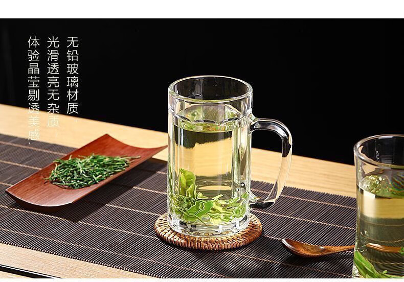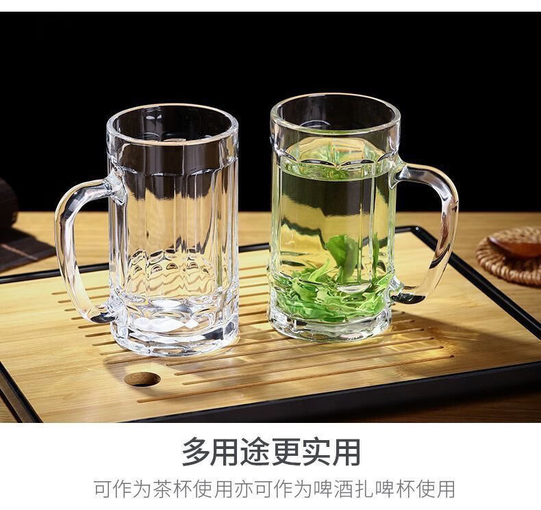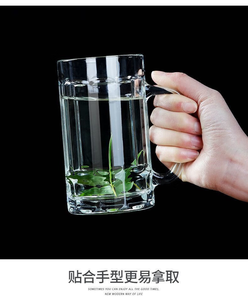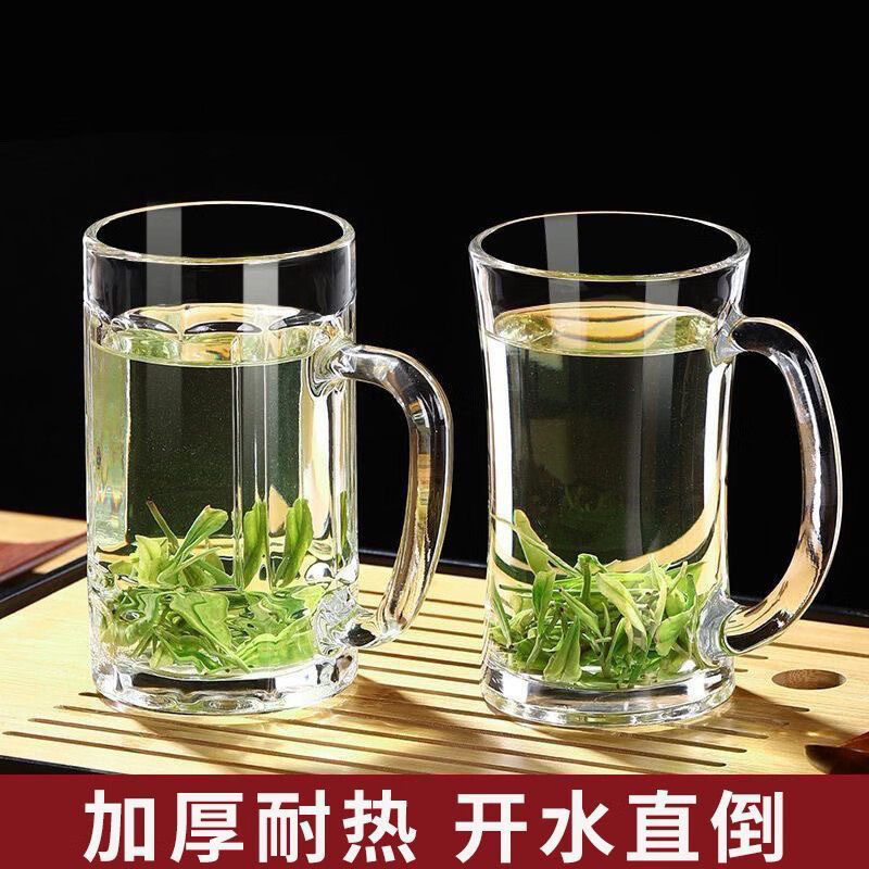 Meikejie thickened high temperature resistant tea cup household drinking cup glass with handle transparent beer cup beverage cup Qingya handle cup 380ml 1 piece