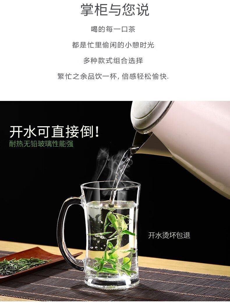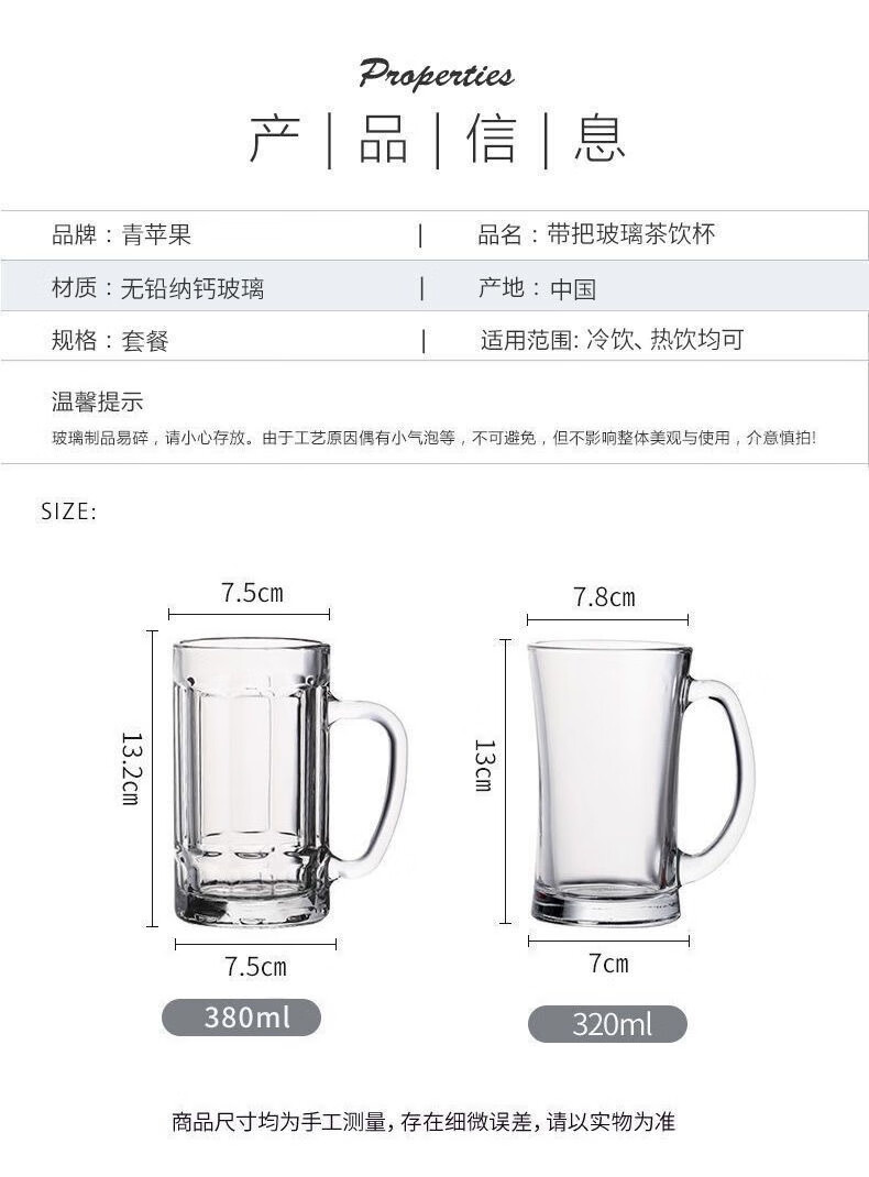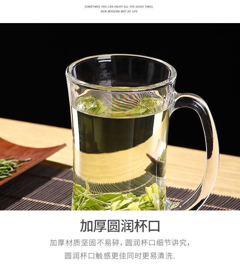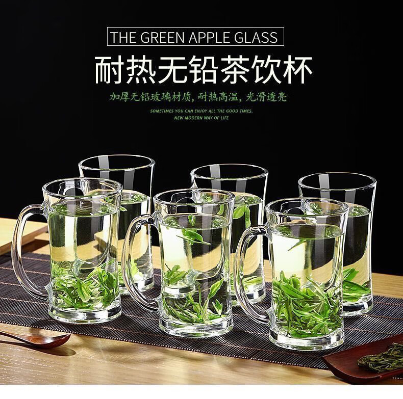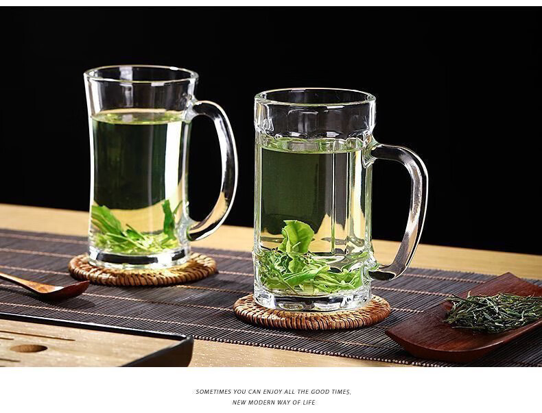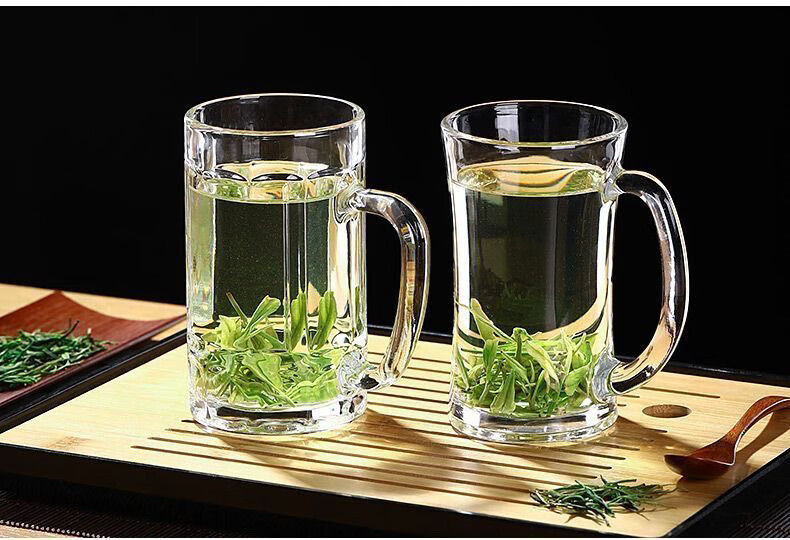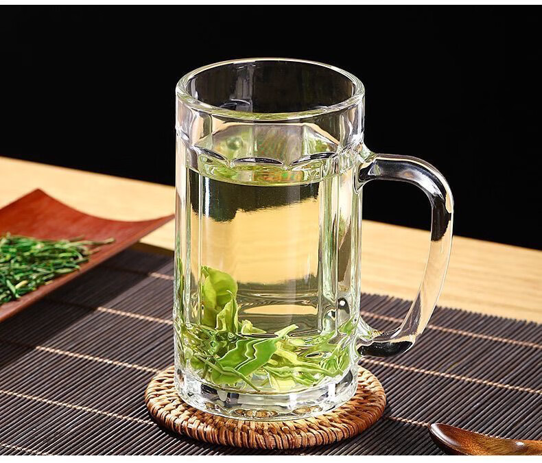 Meikejie thickened high temperature resistant tea cup household drinking cup glass with handle transparent beer cup beverage cup Qingya handle cup 380ml 1 piece
