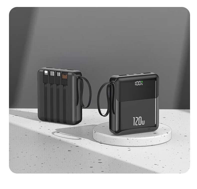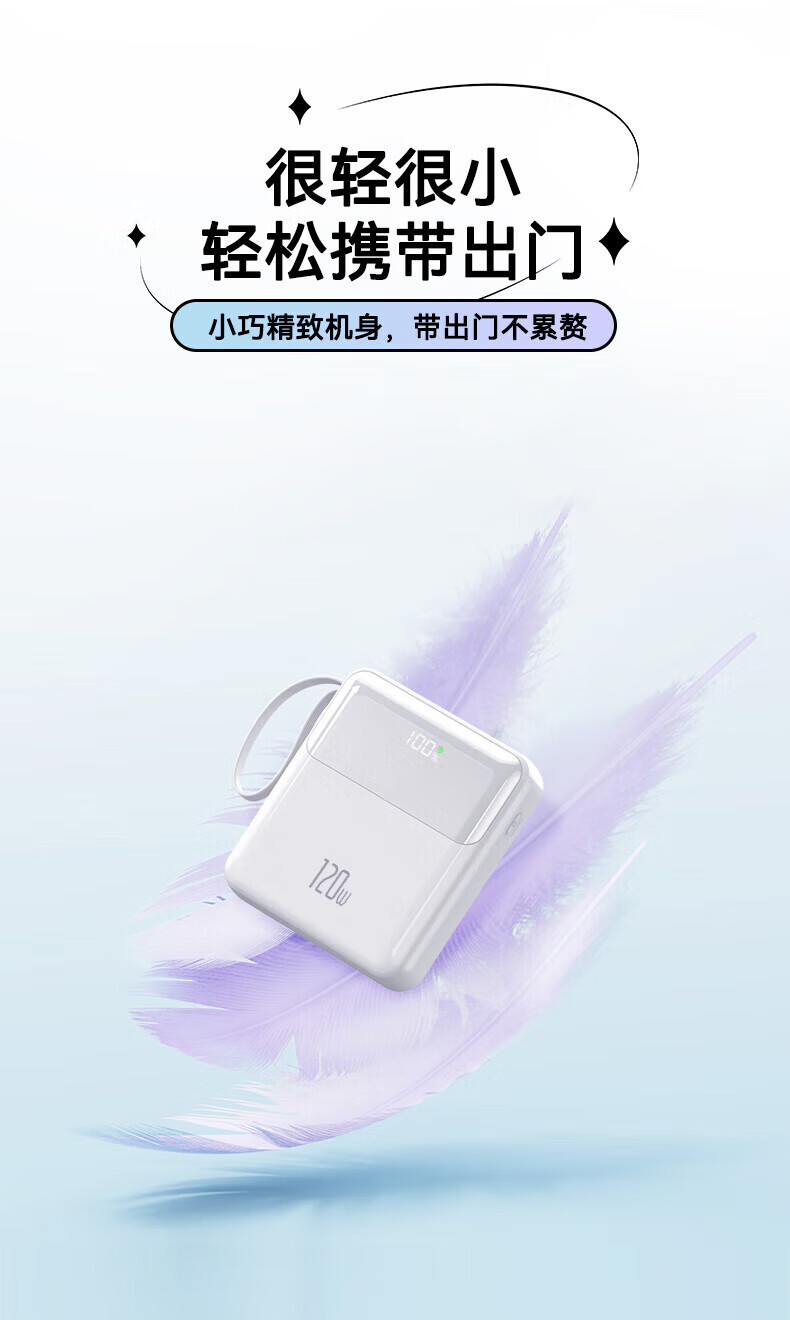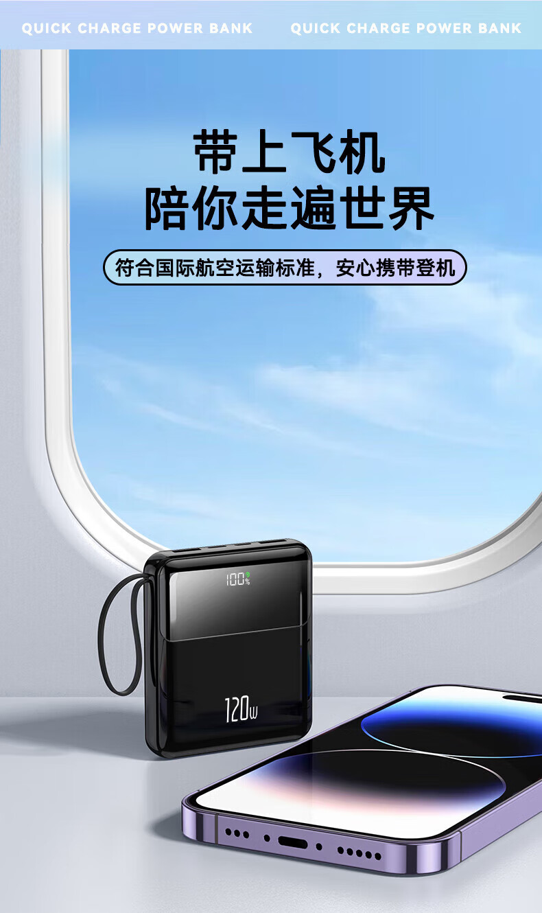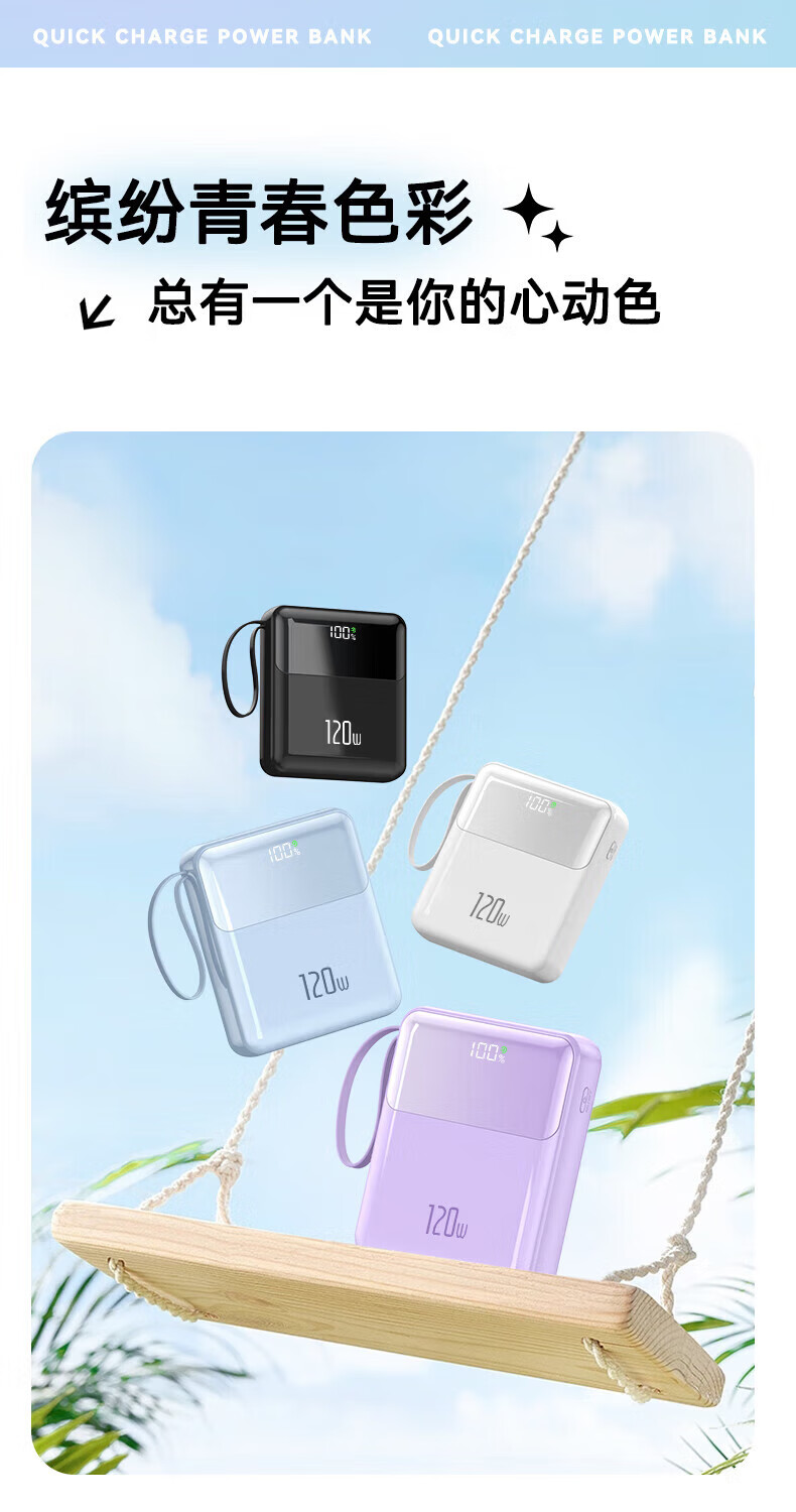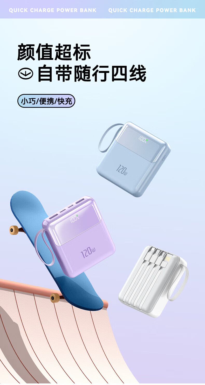 HUAWULIKE National 3C certification 120W fast charging 20000 mAh power bank with built-in cable that can be used on airplanes Compact and portable high-power high-capacity ultra-thin mobile power supply suitable for 3C certification White | flagship version | domestic battery core | ordinary fast charging 10000 mAh | can be used on airplanes | intelligent temperature control | comes with four cables