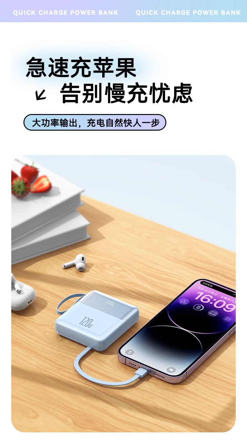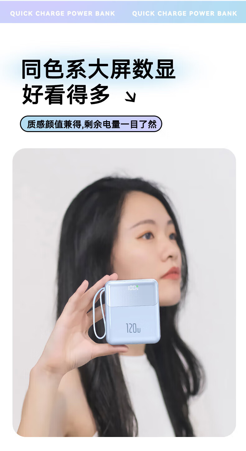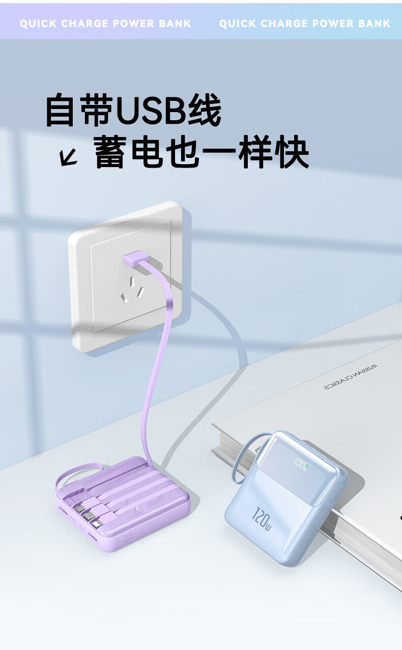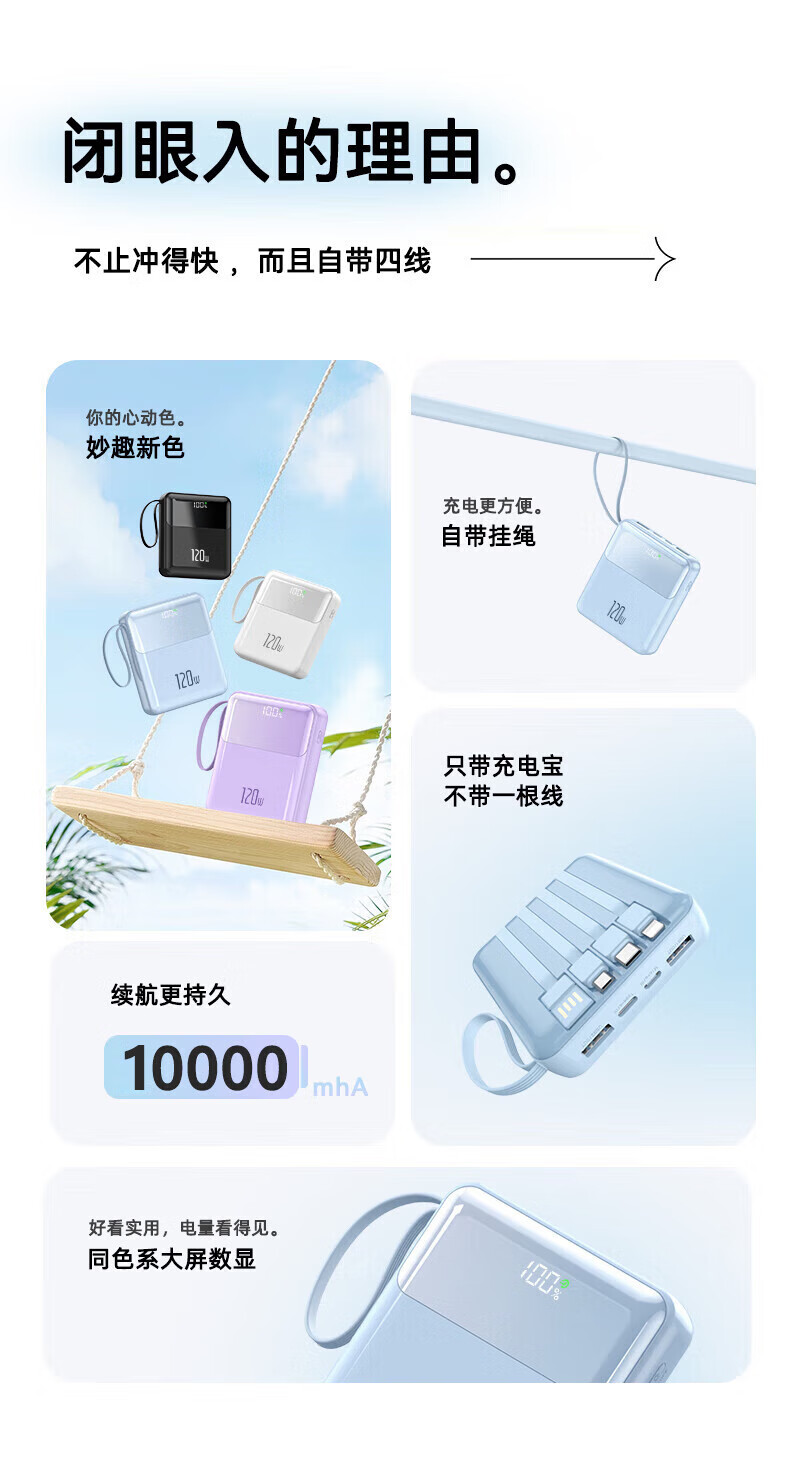 HUAWULIKE National 3C certification 120W fast charging 20000 mAh power bank with built-in cable that can be used on airplanes Compact and portable high-power high-capacity ultra-thin mobile power supply suitable for 3C certification White | flagship version | domestic battery core | ordinary fast charging 10000 mAh | can be used on airplanes | intelligent temperature control | comes with four cables