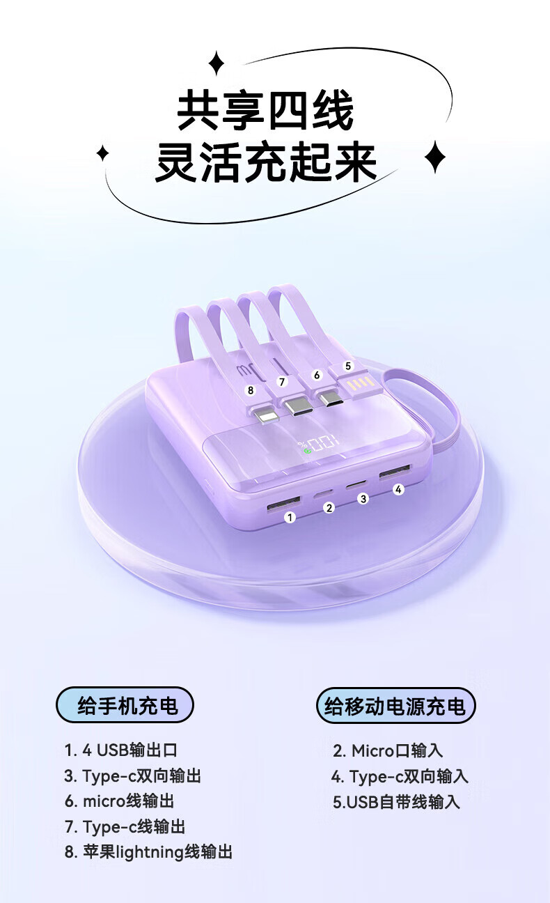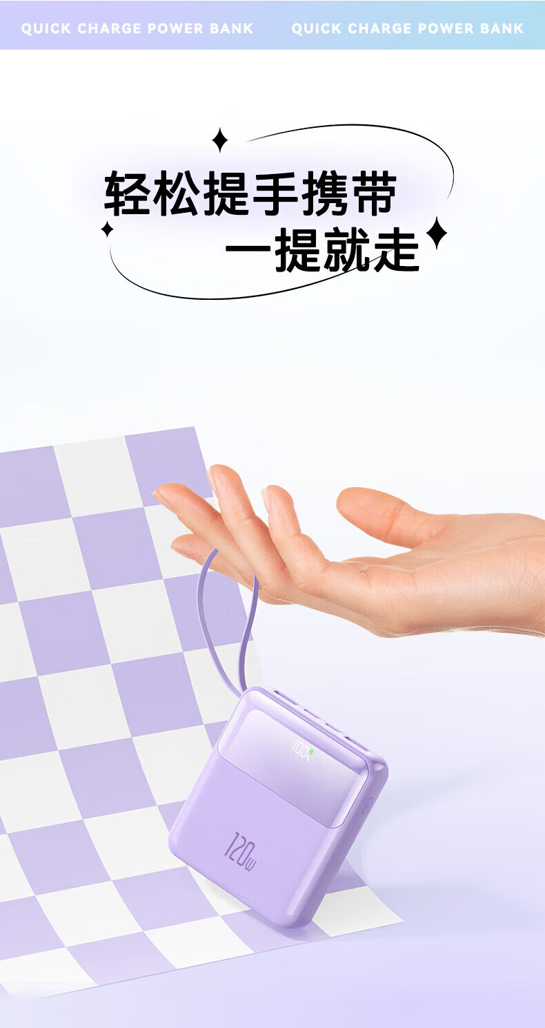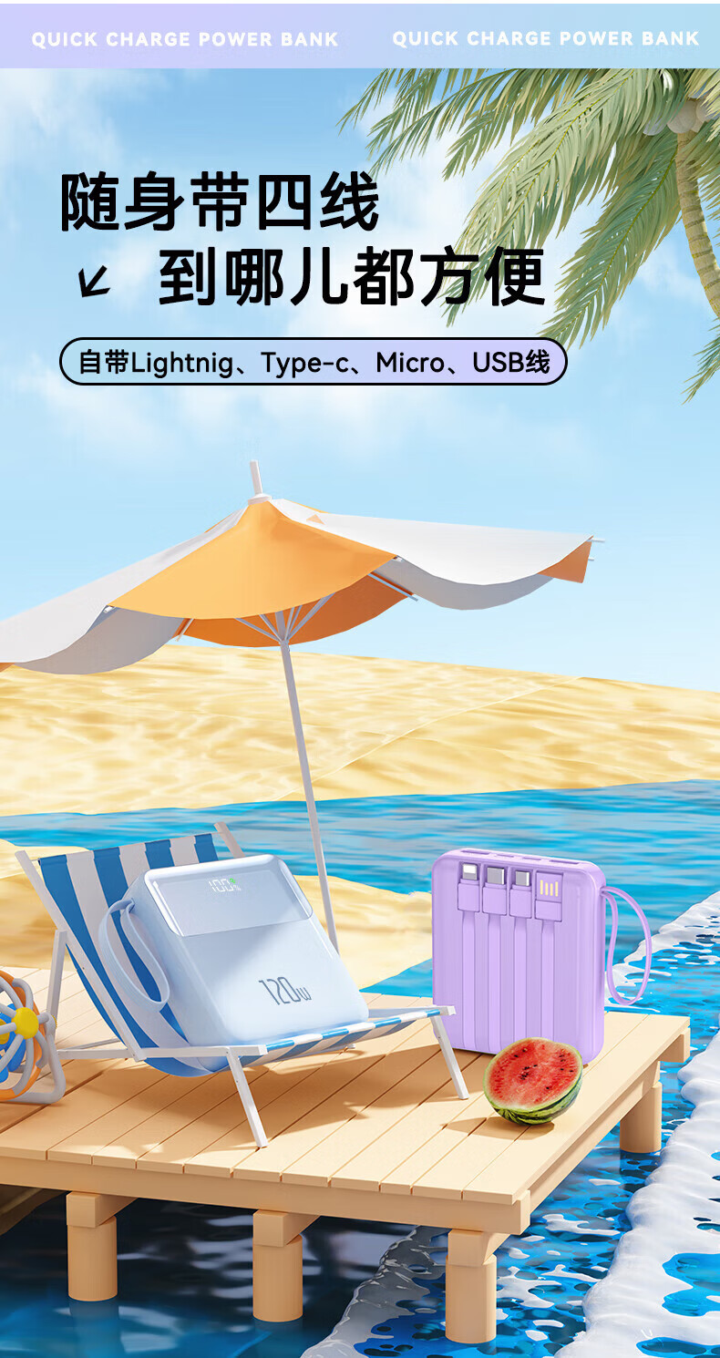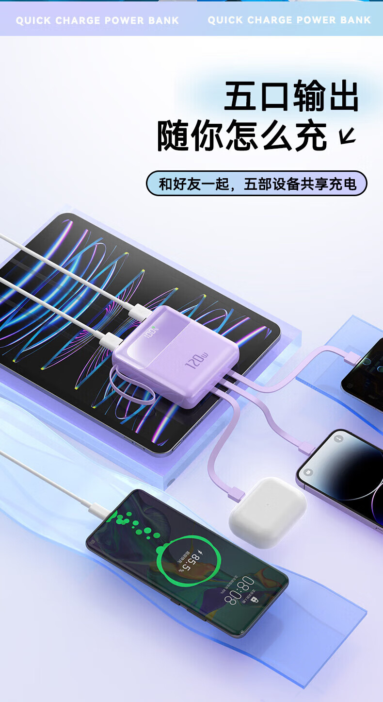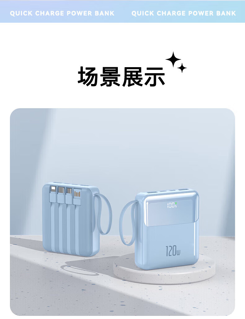 HUAWULIKE National 3C certification 120W fast charging 20000 mAh power bank with built-in cable that can be used on airplanes Compact and portable high-power high-capacity ultra-thin mobile power supply suitable for 3C certification White | flagship version | domestic battery core | ordinary fast charging 10000 mAh | can be used on airplanes | intelligent temperature control | comes with four cables