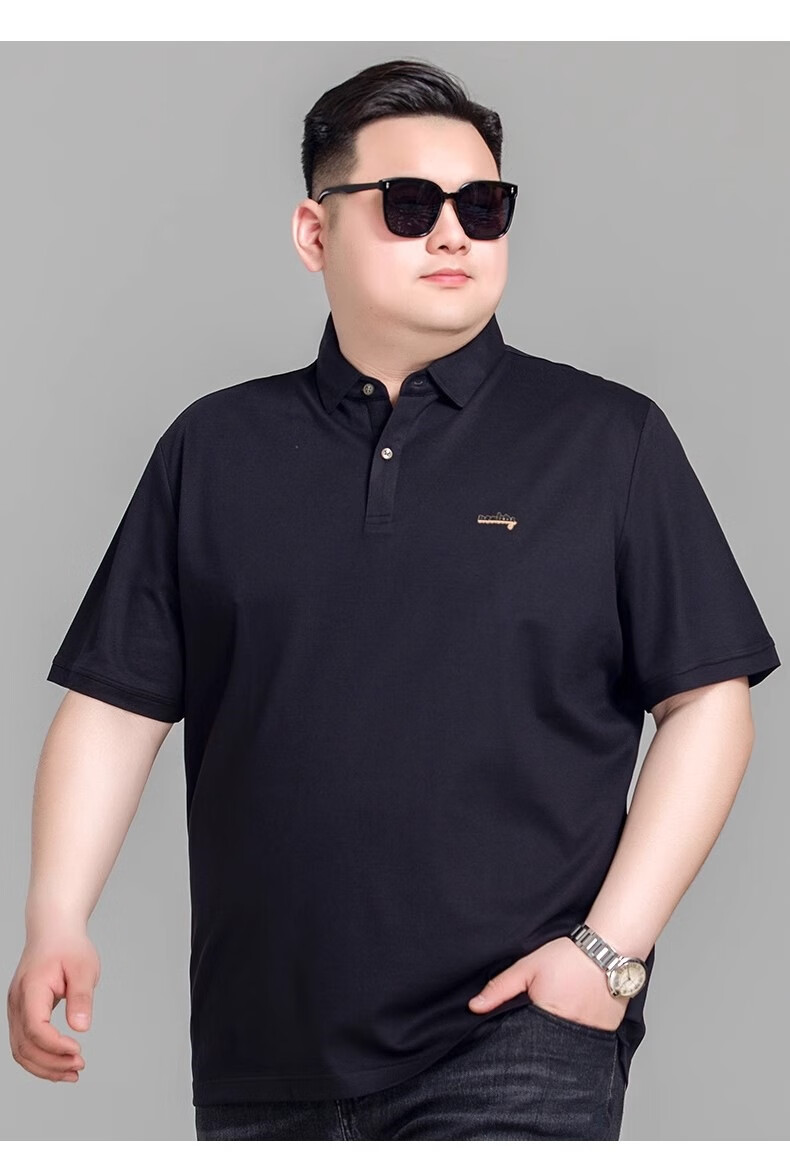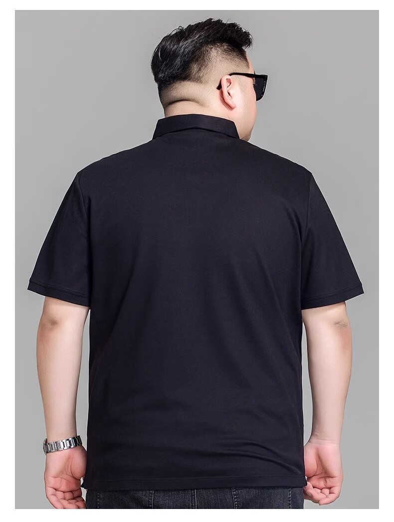 Large size short-sleeved polo shirt men's summer business casual plus fat enlarged loose versatile simple lapel T-shirt trendy-L07 black 5XL -Weight 190-210Jin Jin is equal to 0.5 kg