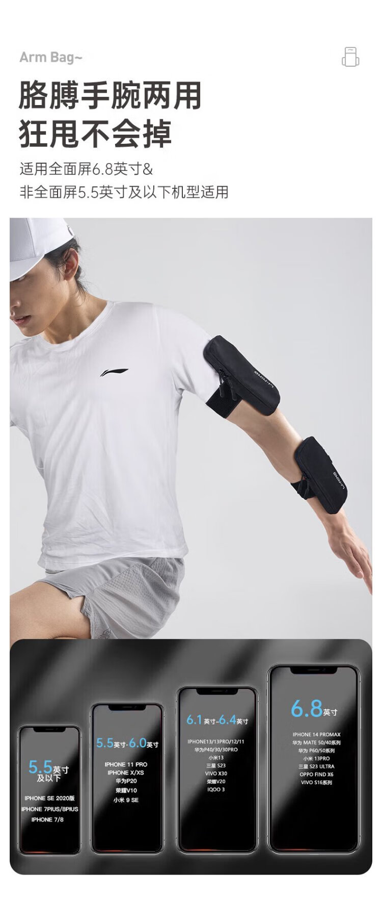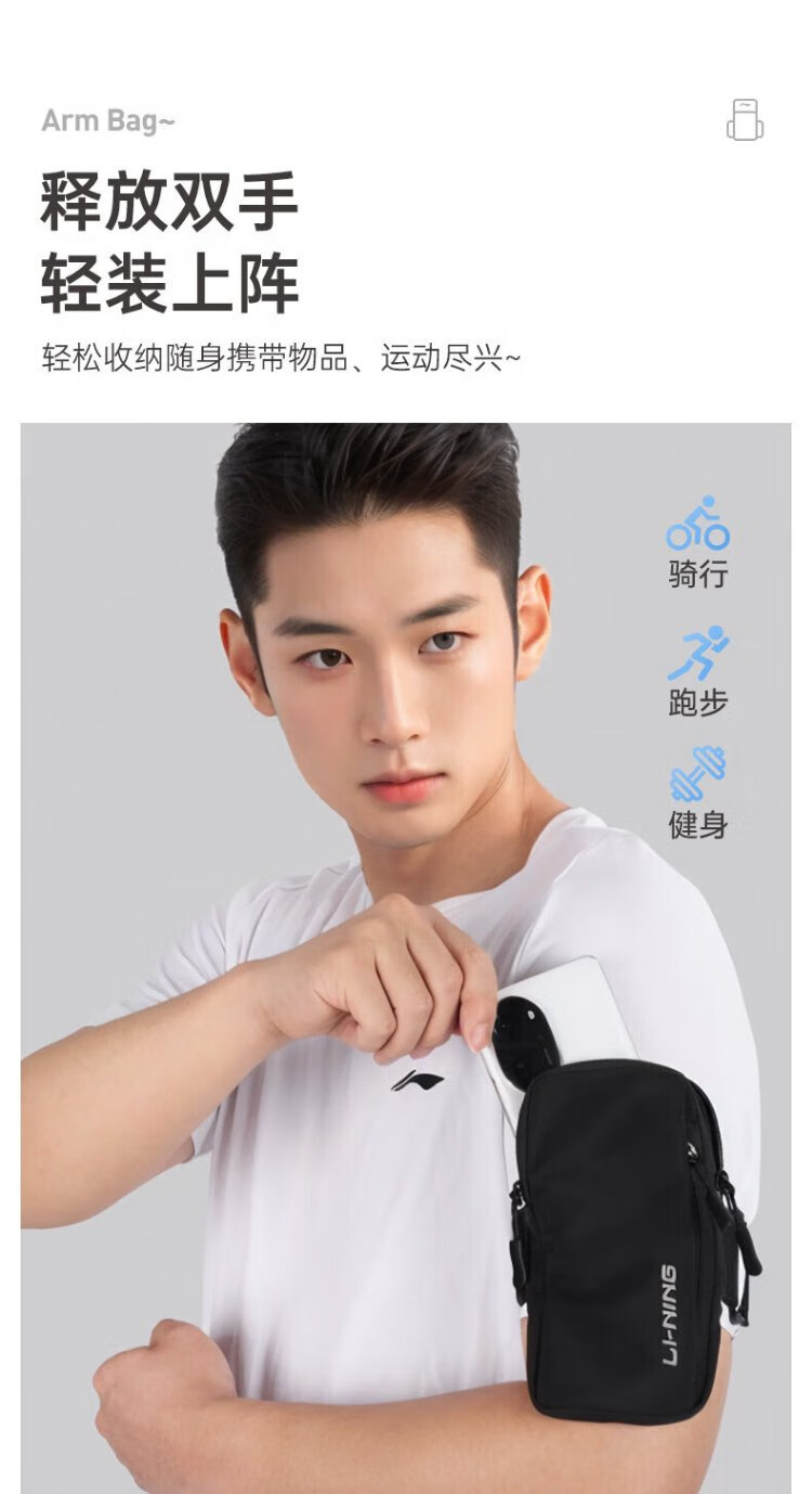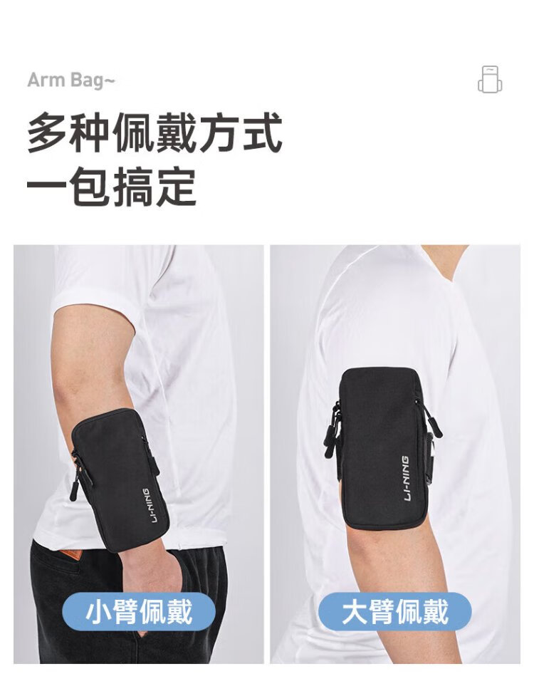 Li Ning professional running arm bag sports fitness mobile phone bag for men and women outdoor cycling marathon arm bag storage bag black