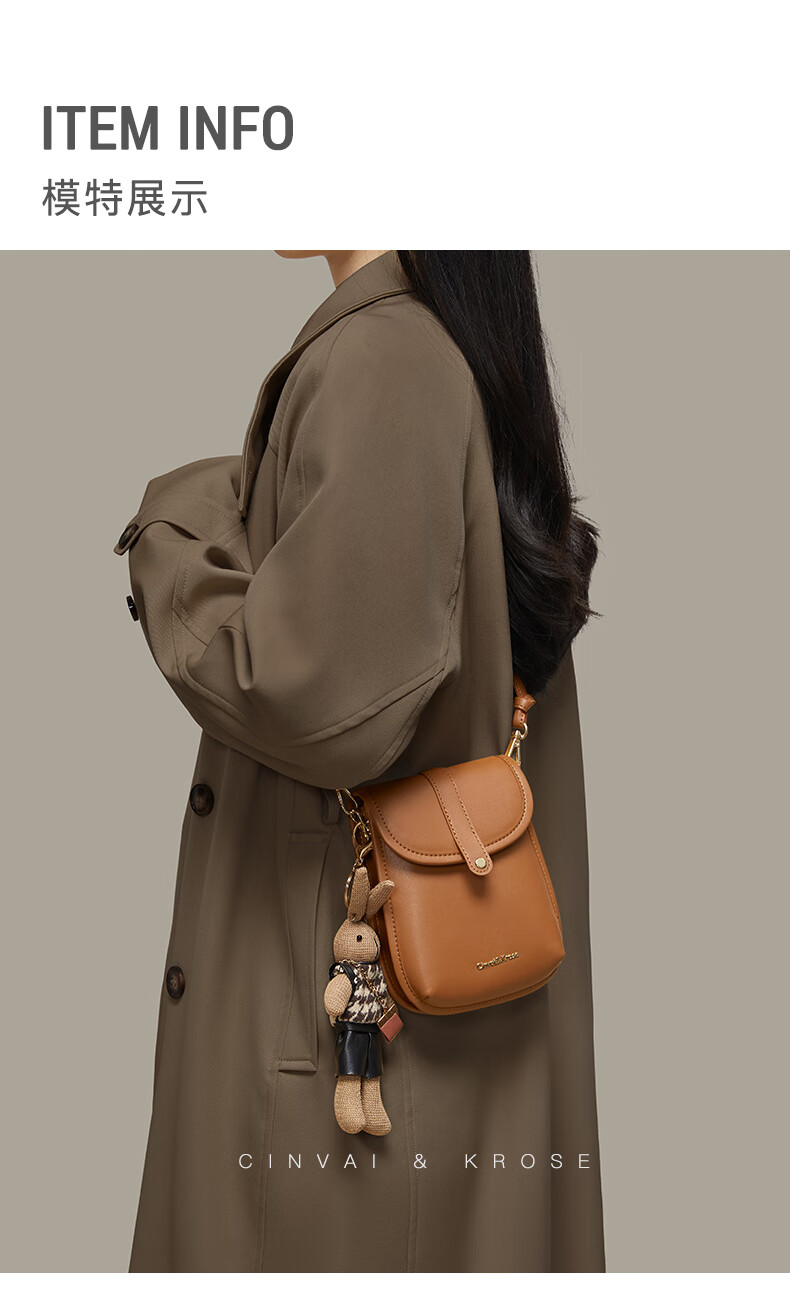CinvaiKrose bag women's bag mobile phone bag mini bag women 2025 new crossbody bag shoulder bag birthday gift for girlfriend brown