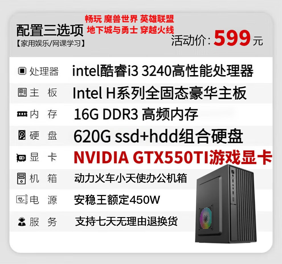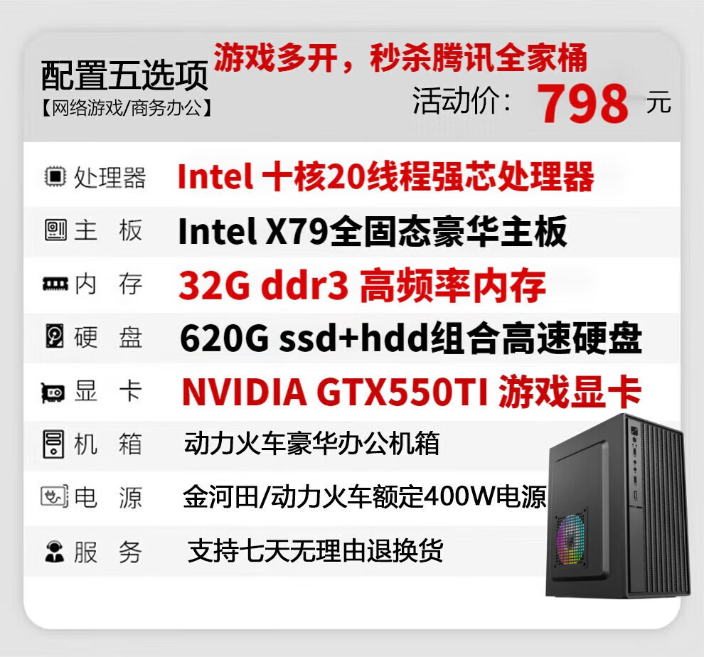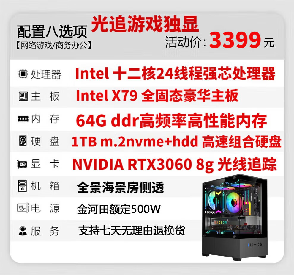I5 Core i7 liter twelve core/3060 desktop computer host DIY assembly computer complete machine enterprise office commercial configuration four 8 core 16 lines/16G/620G/gtX display single host