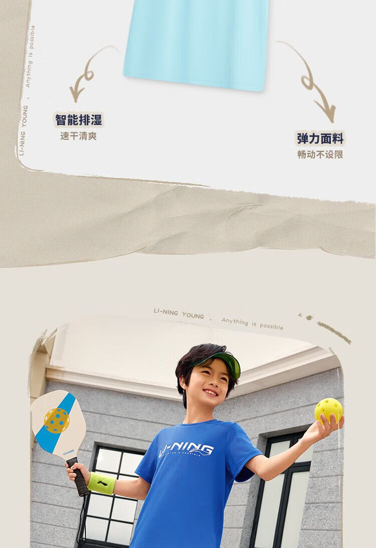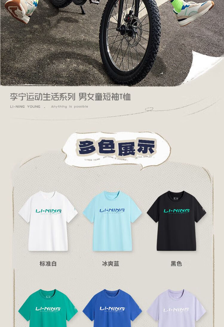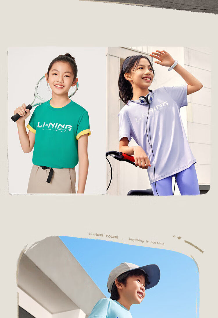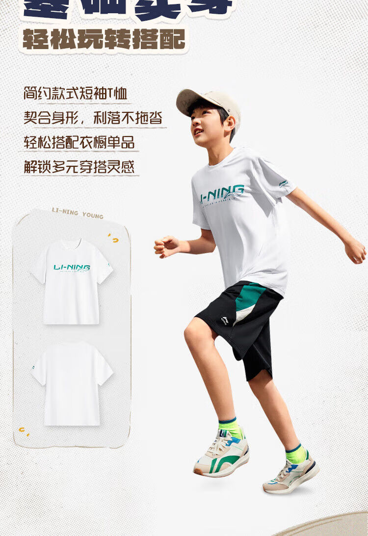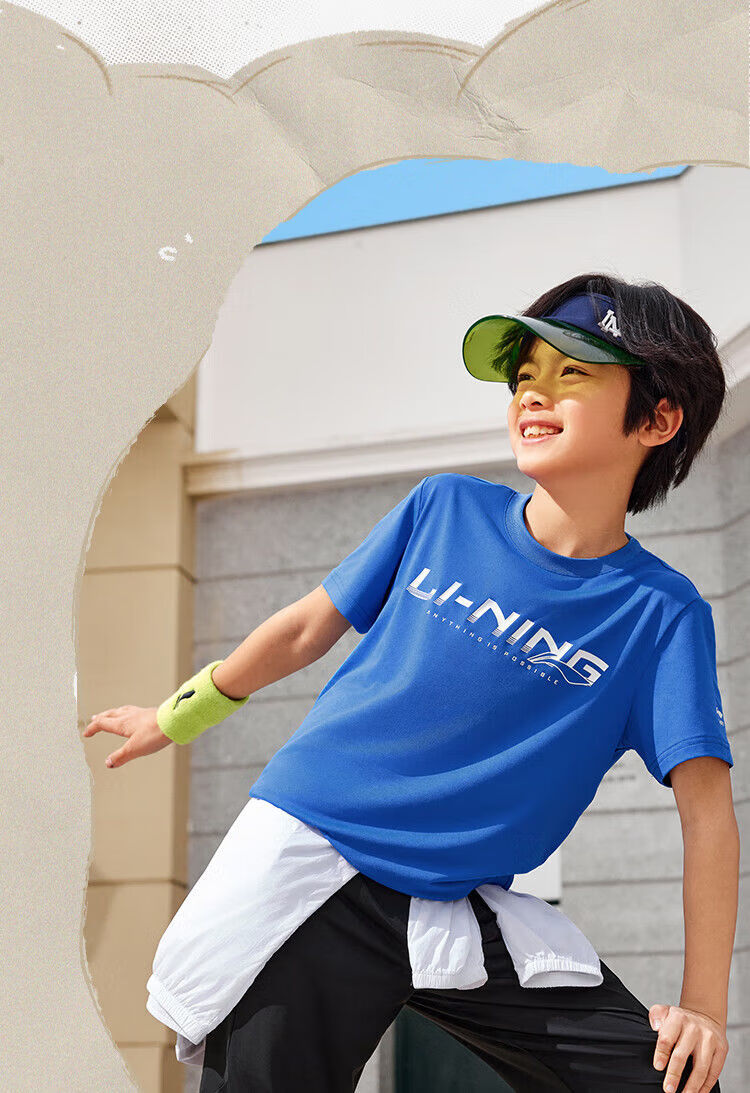 Li Ning children's T-shirt quick-drying boys and girls 25 years new summer bottoming shirt top loose half-sleeved short-sleeved quick-drying T+ sunscreen quick-drying pants 140