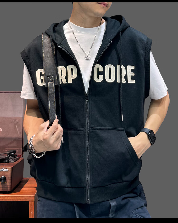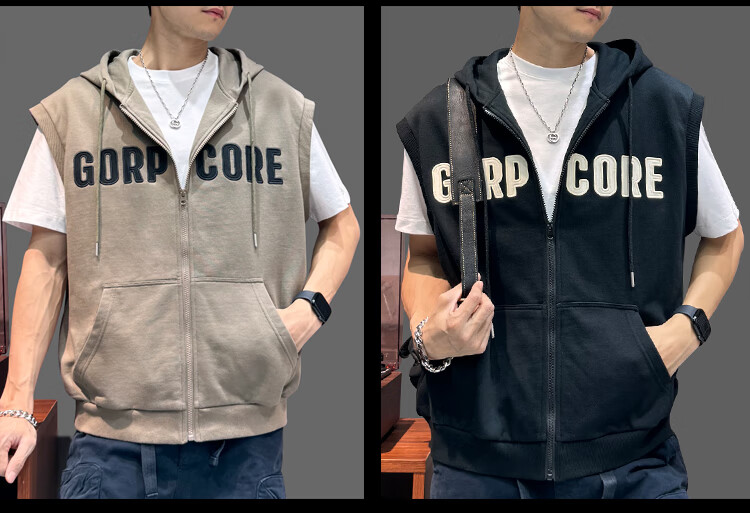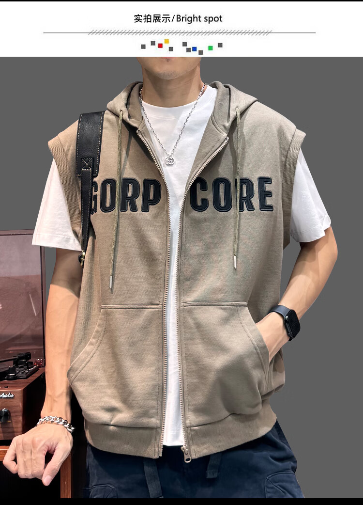 Дятел (TUCANO) High Street с капюшоном, мужской спортивный жилет 2025 года, весенне-летний жилет нового стиля, американский повседневный свободный свитер без рукавов, жилет-карта, зеленый M, рекомендация 110Jin Jin равен 0,5 кг -135Jin Jin равен 0,5 кг