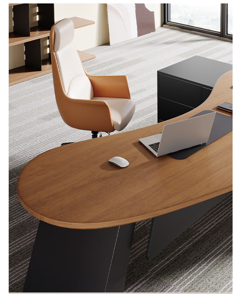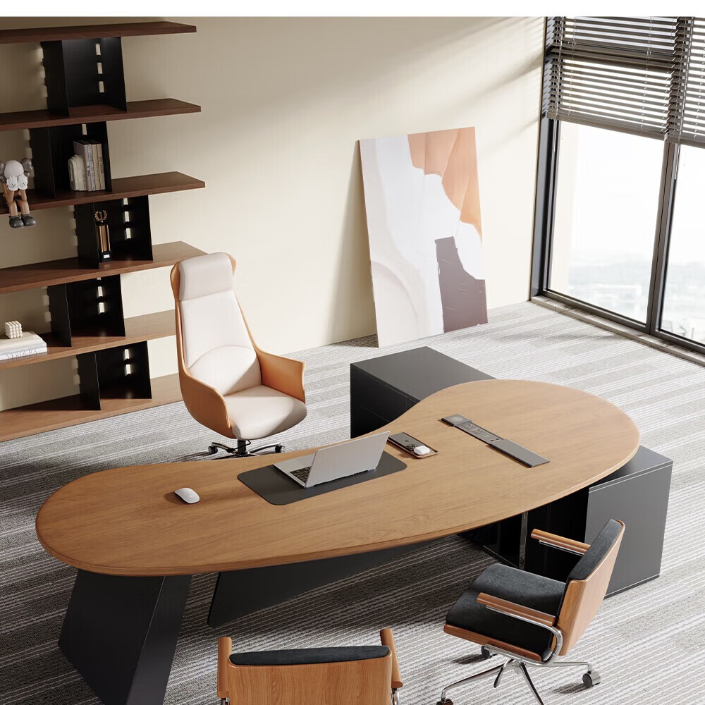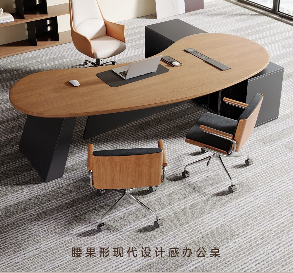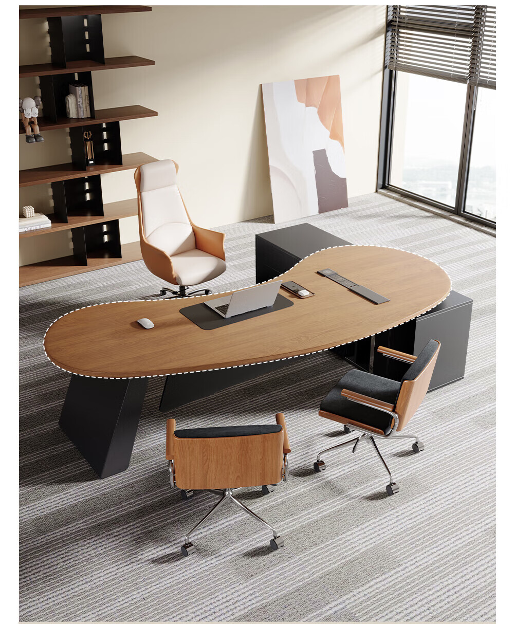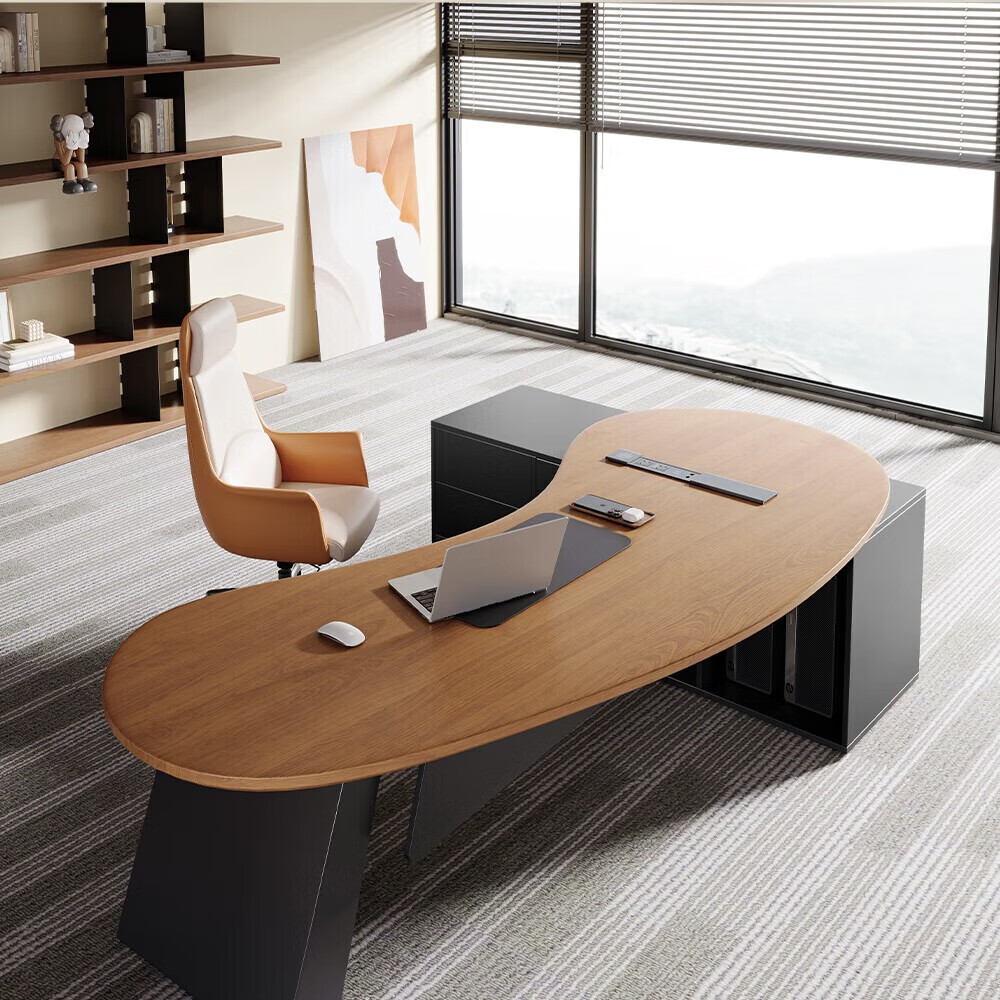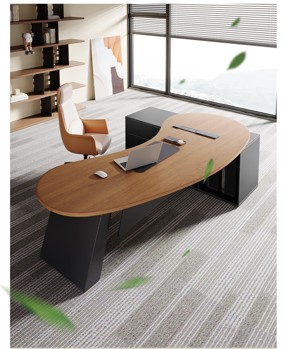FEILUOKE solid wood modern simple cashew nut-shaped computer office boss manager desk and chair combination new creative design desk 2.0m big leaf pine desktop + Xipi office chair