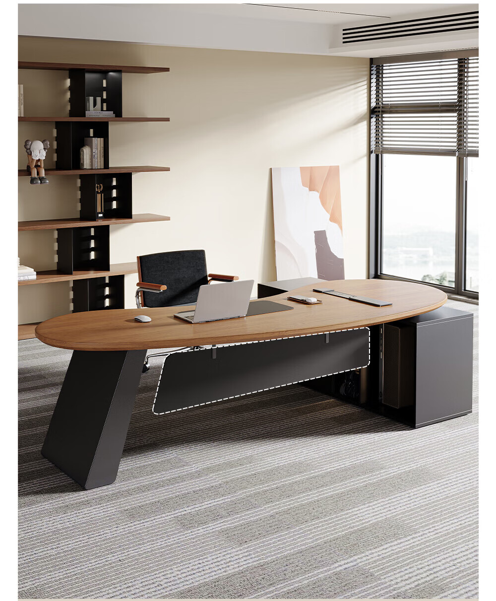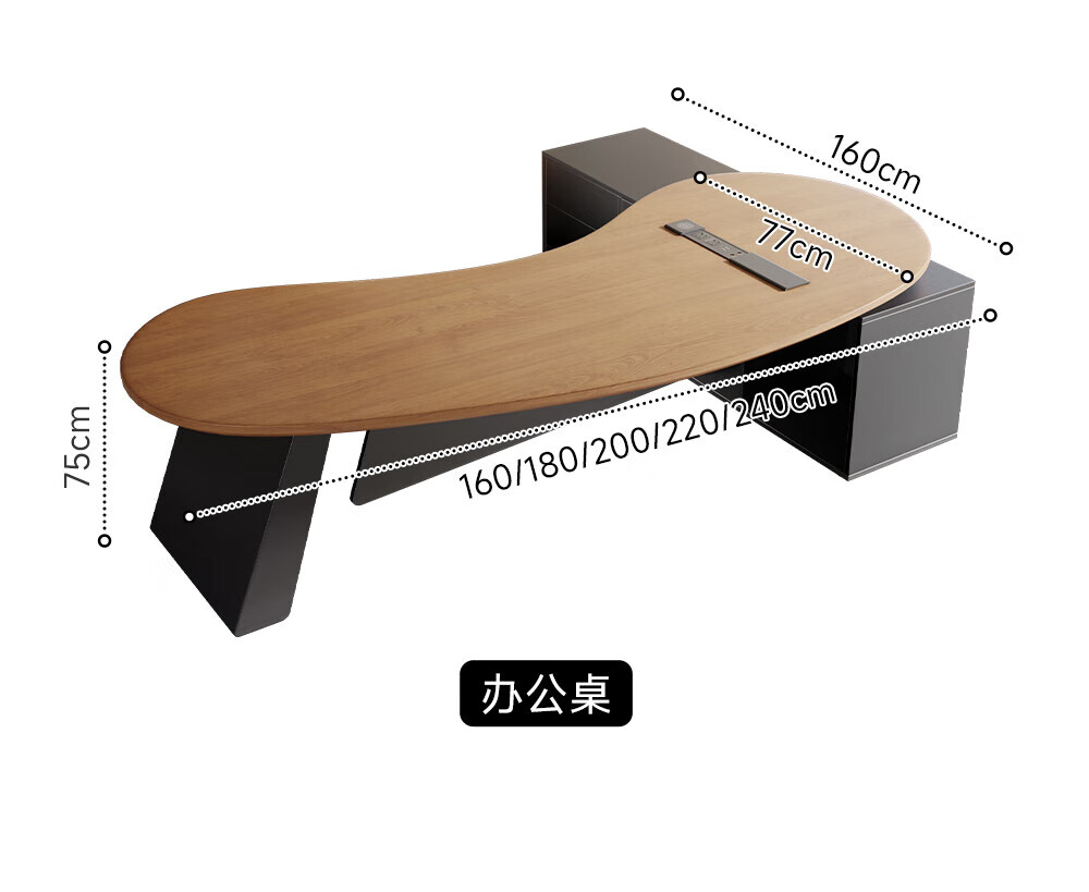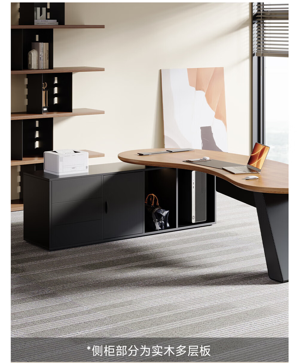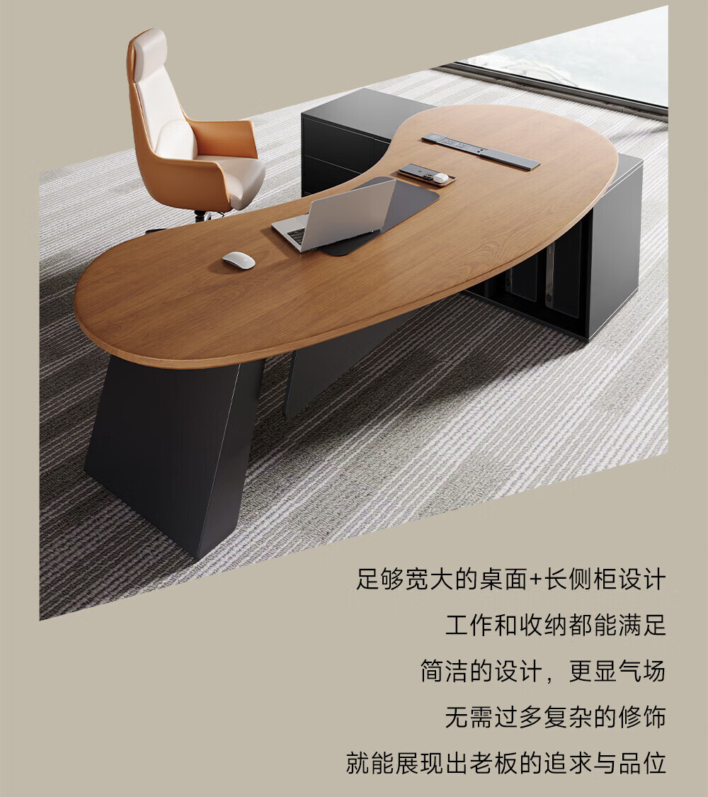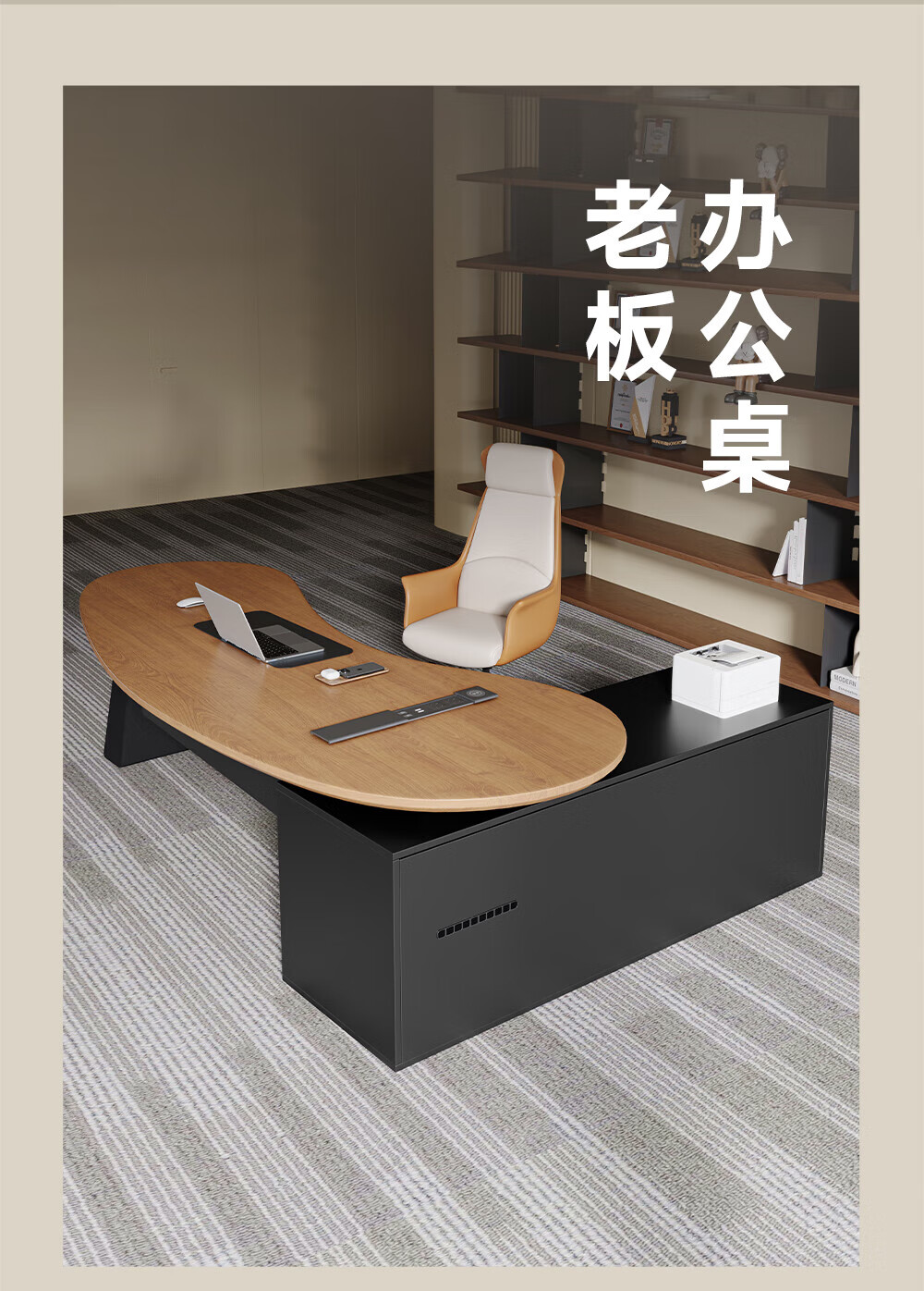 FEILUOKE solid wood modern simple cashew nut-shaped computer office boss manager desk and chair combination new creative design desk 2.0m big leaf pine desktop + Xipi office chair