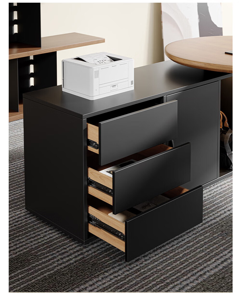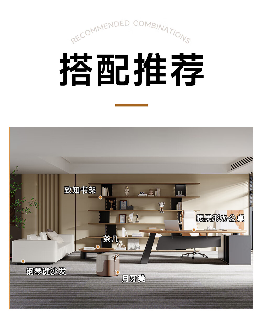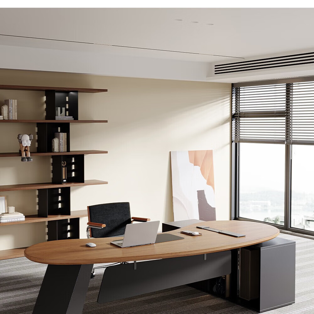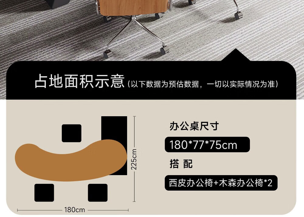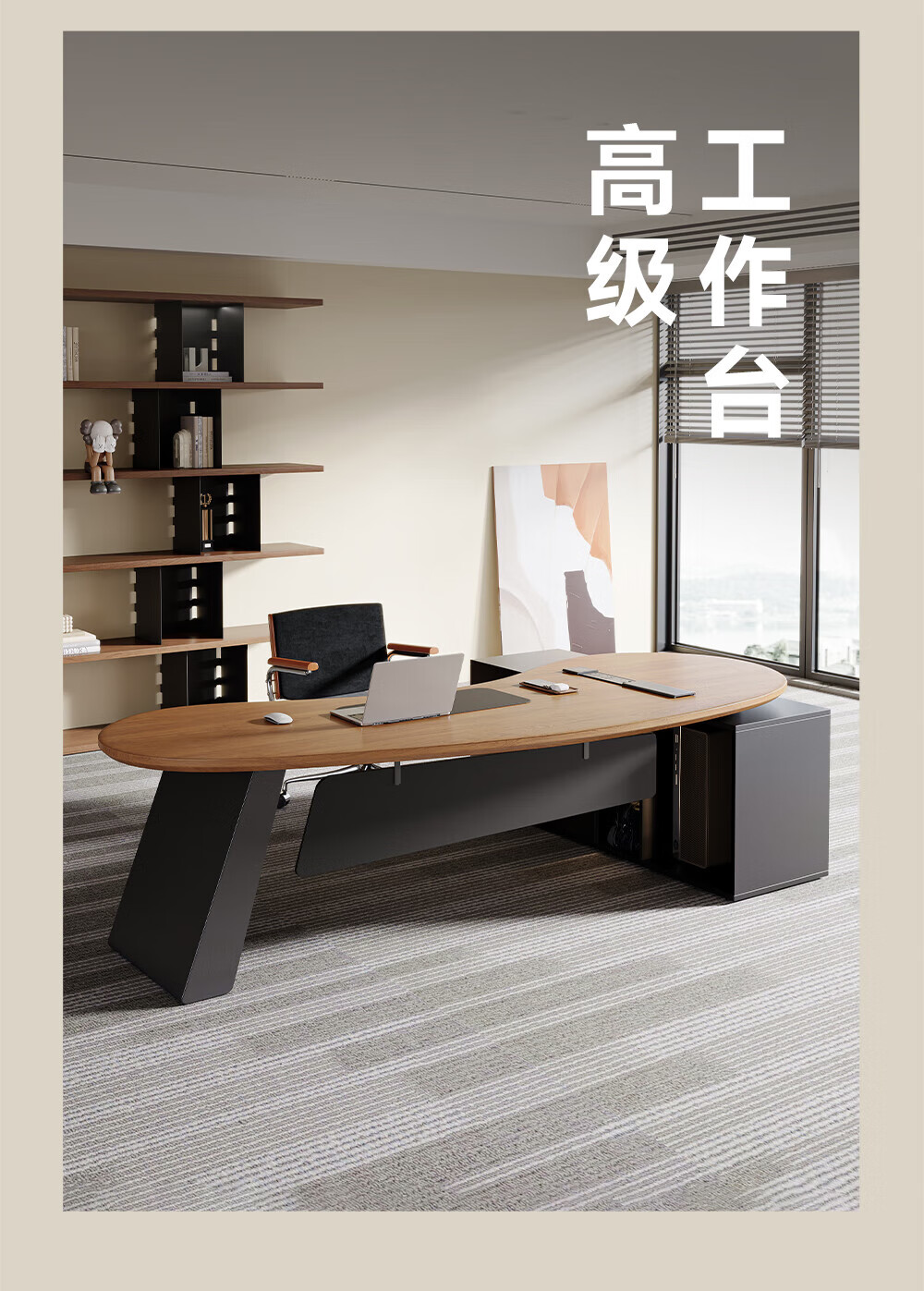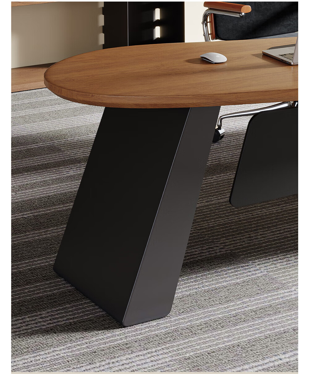FEILUOKE solid wood modern simple cashew nut-shaped computer office boss manager desk and chair combination new creative design desk 2.0m big leaf pine desktop + Xipi office chair