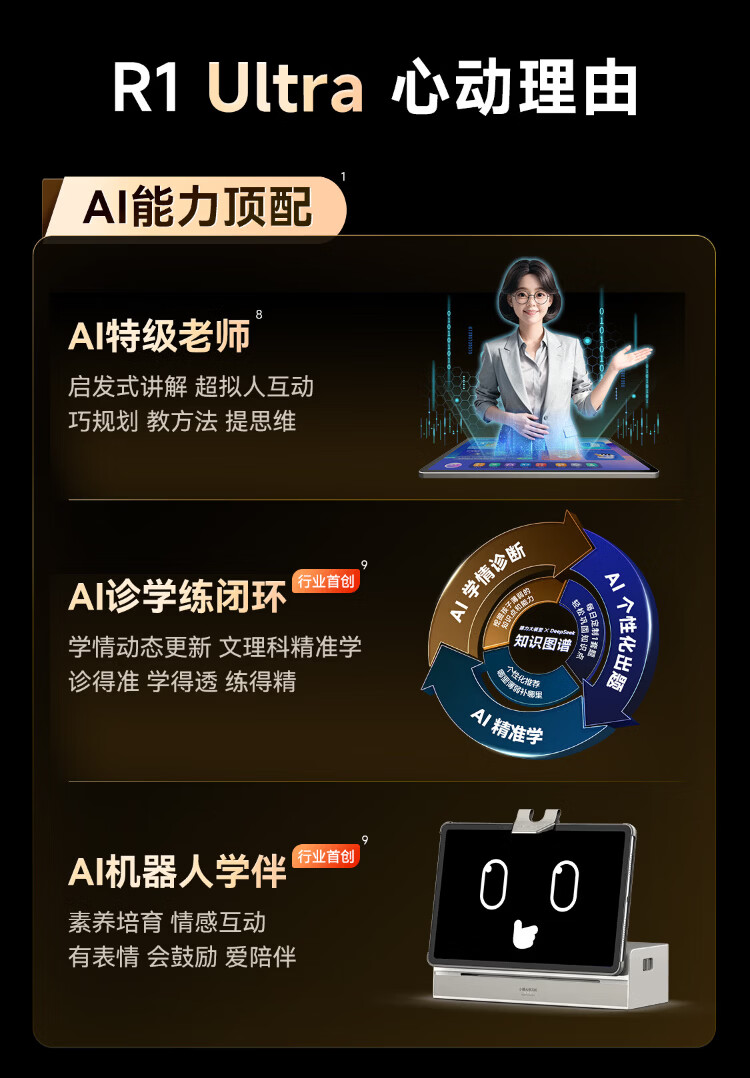 Xiaoyuan AI learning machine R1 Yuanfudao 13-inch eye-protecting screen Full-scenario diagnosis and training Learning and training machine student tablet computer teaching material synchronization AI companion learning for primary school general tutoring All-round flagship-AI intelligent learning machine R1