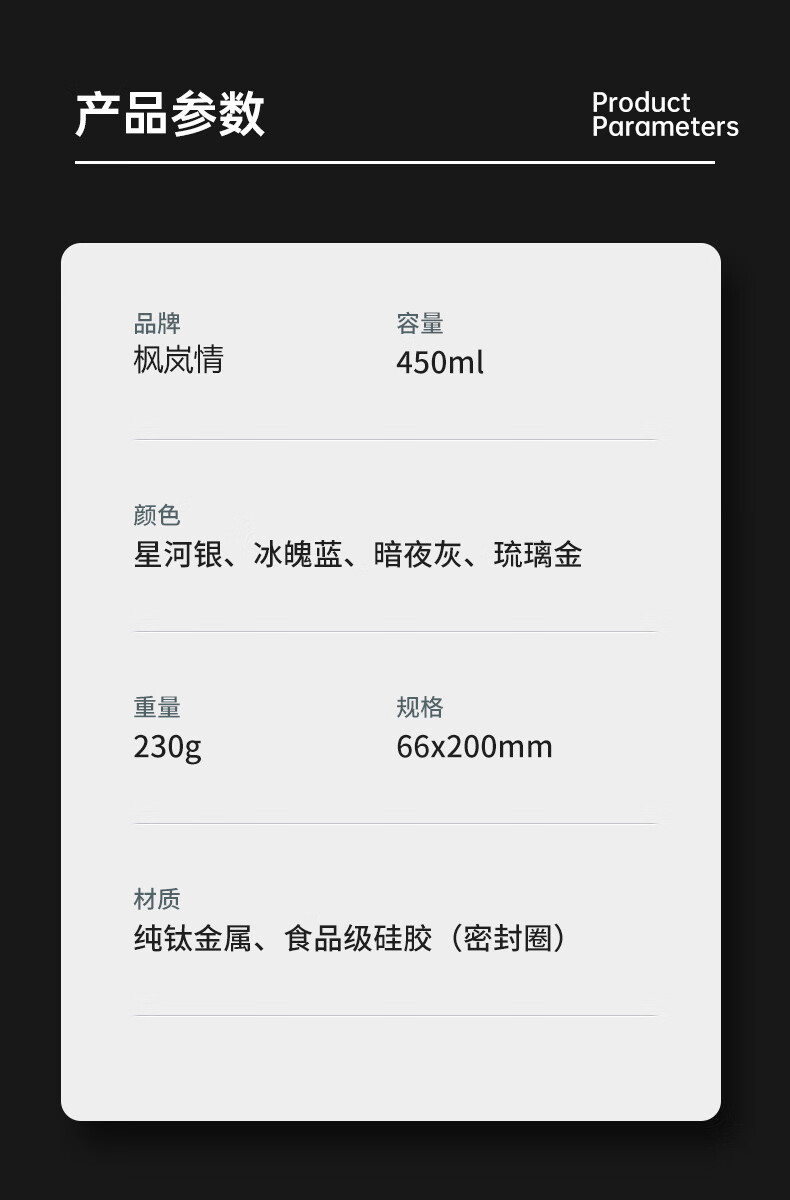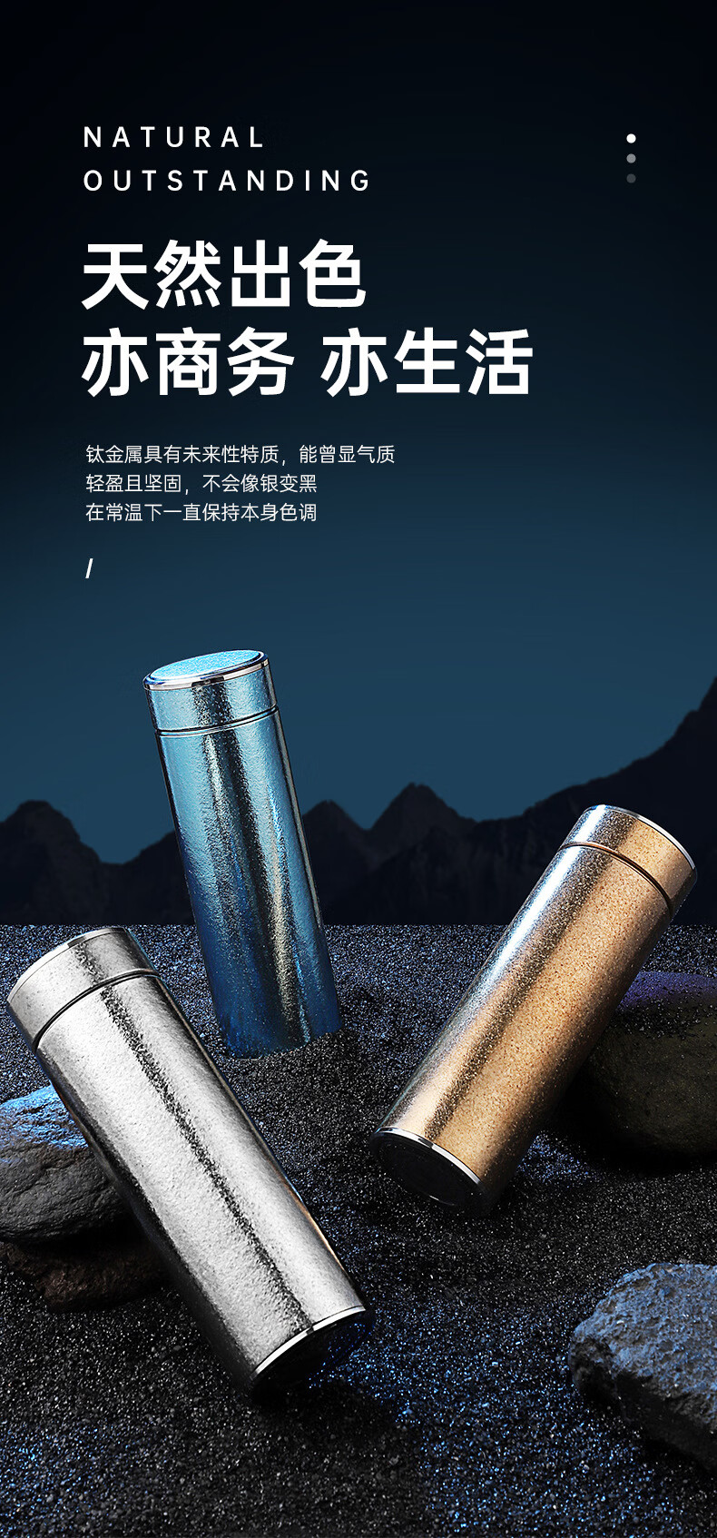 Fenglanqing titanium cup pure titanium thermos cup for men and women high-end business office tea cup portable home car gift box dark night gray 300ml