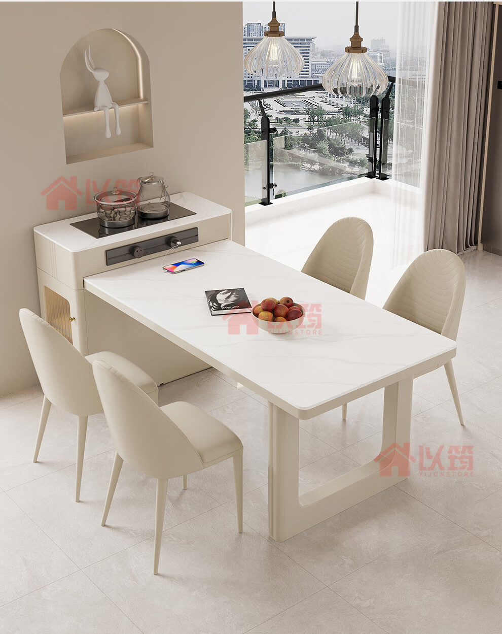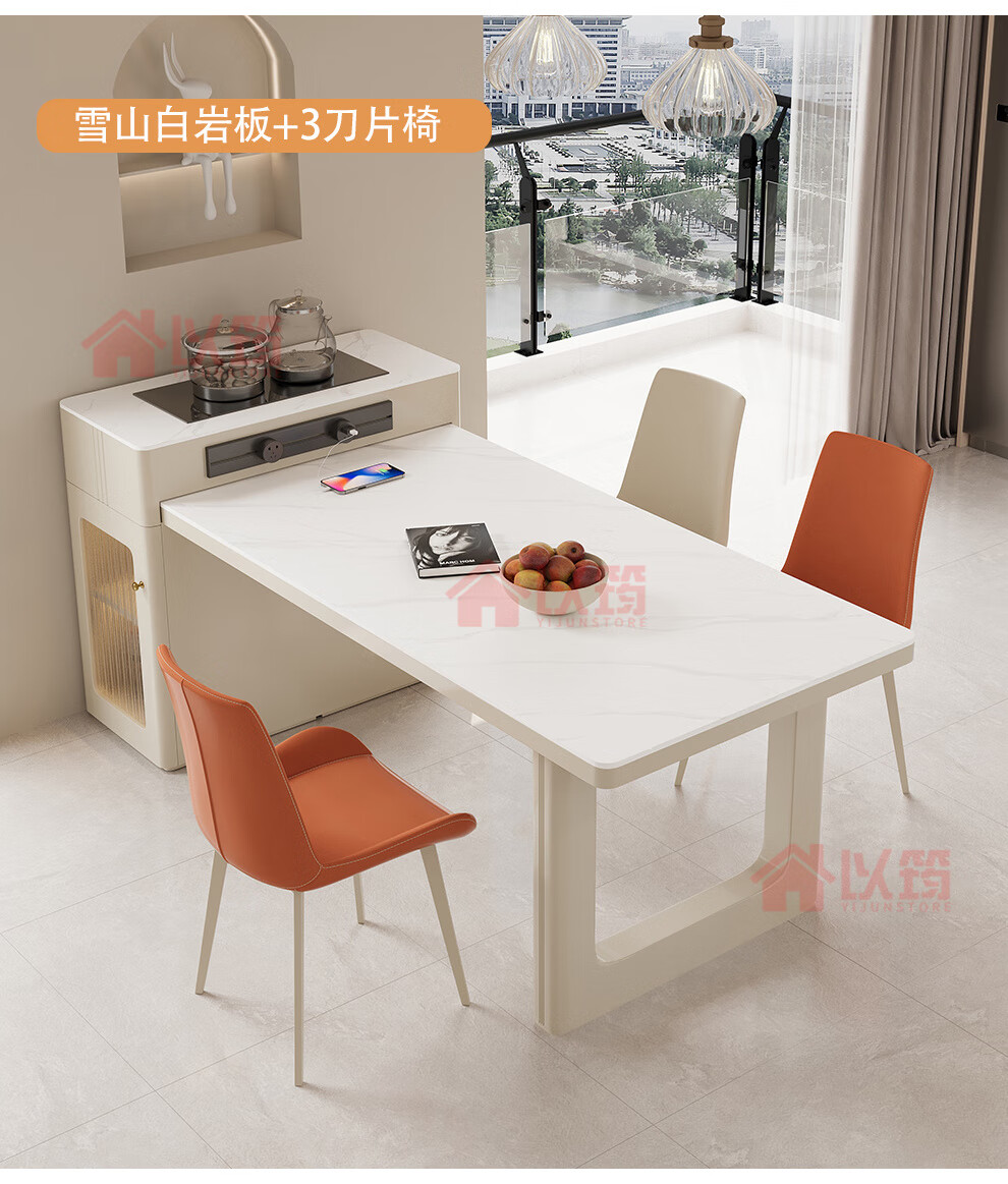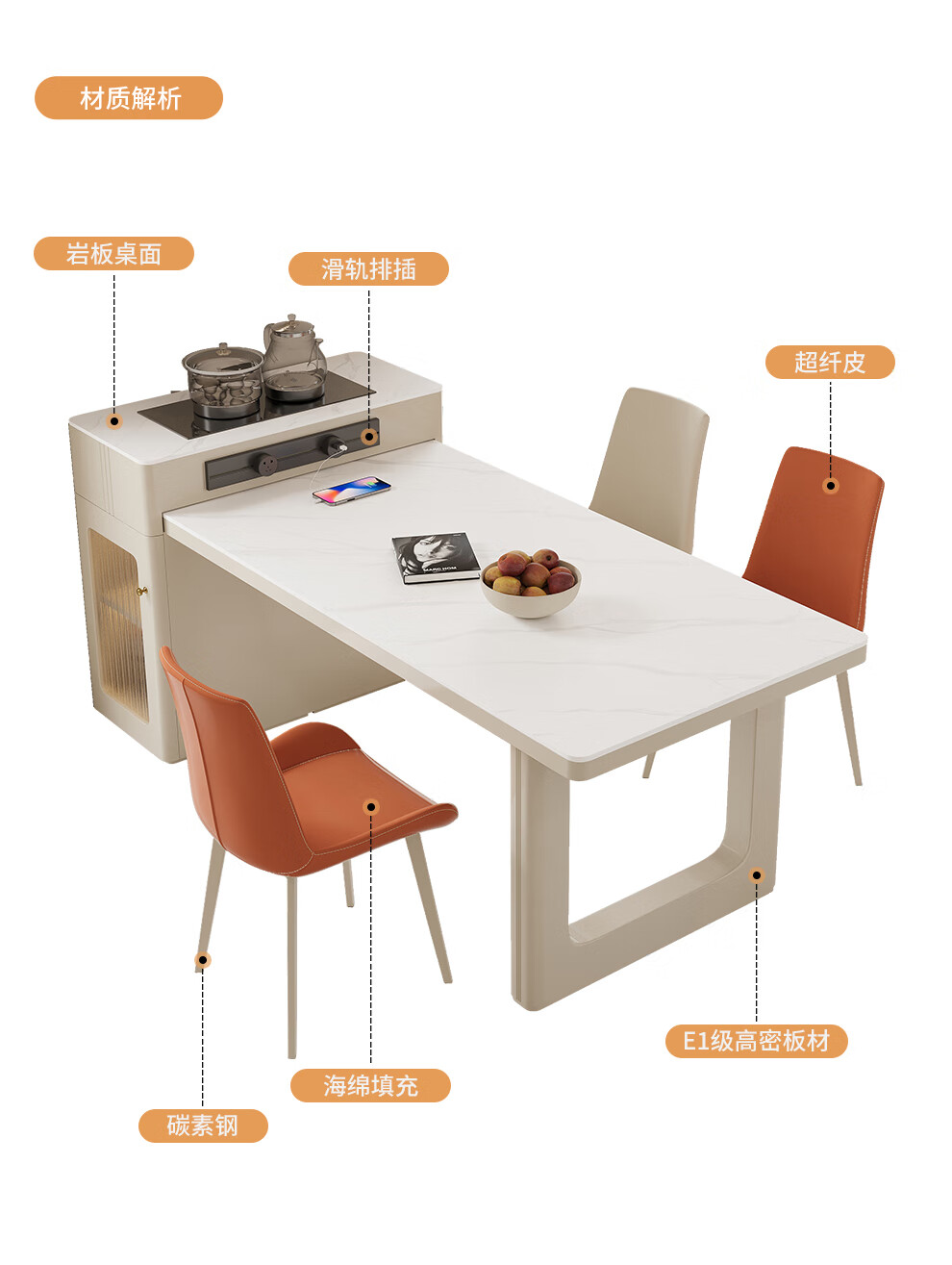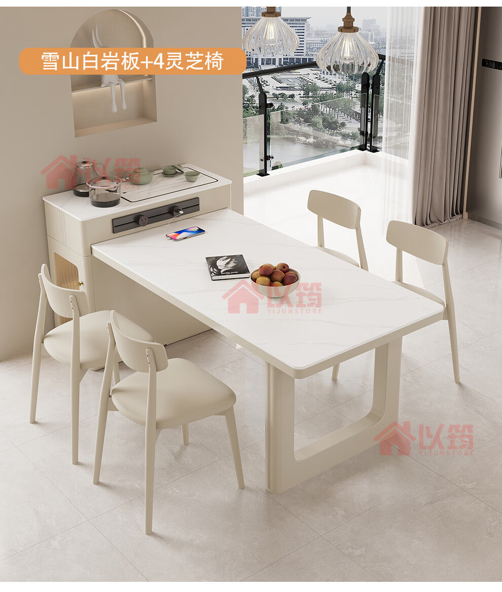 Jun cream-style slate island dining table integrated retractable small-sized dining table high-end home light luxury restaurant center table two-hole electric tea stove + tea tray type - fixed socket 1.4 meters one table 4 chairs caterpillar chair